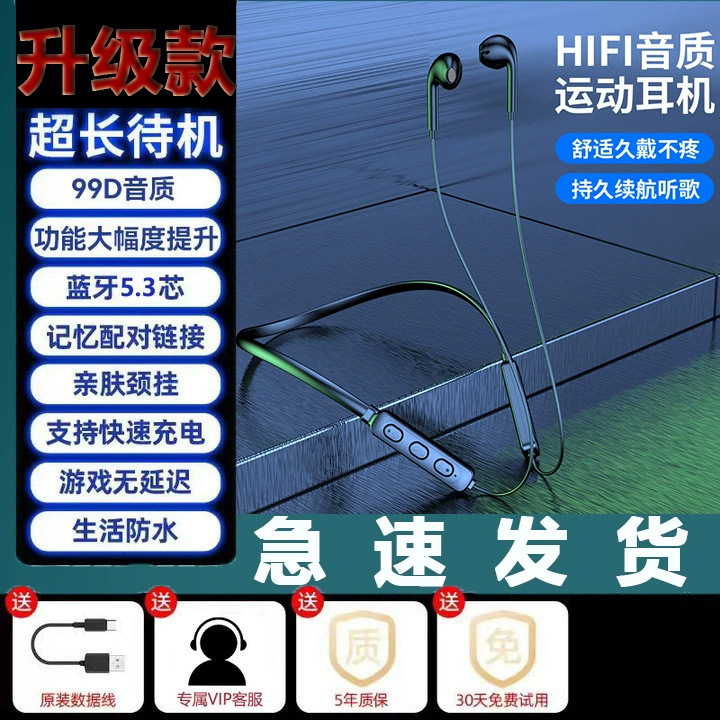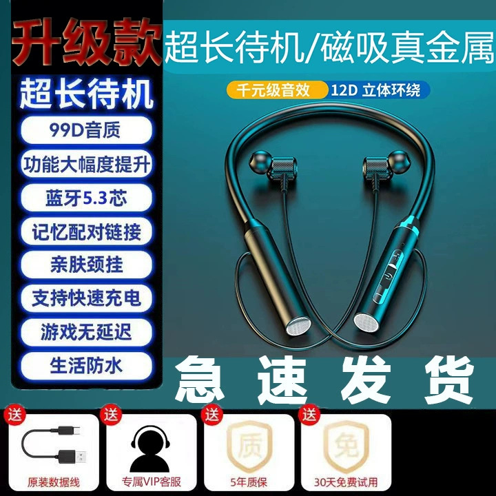 蓝牙无线耳机挂脖运动双耳入耳颈挂式超长待机续航耳机无线音质好