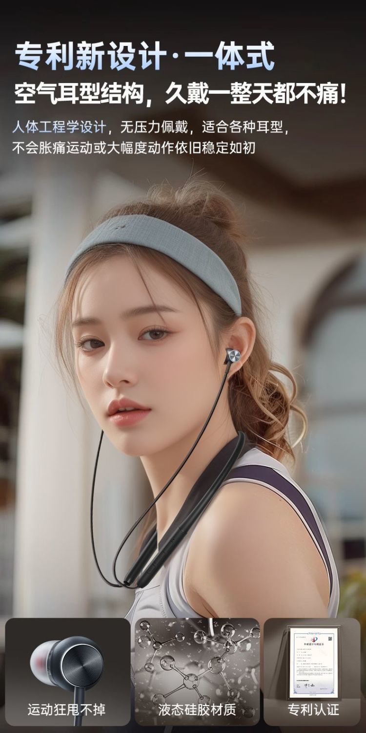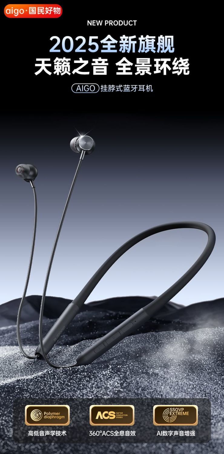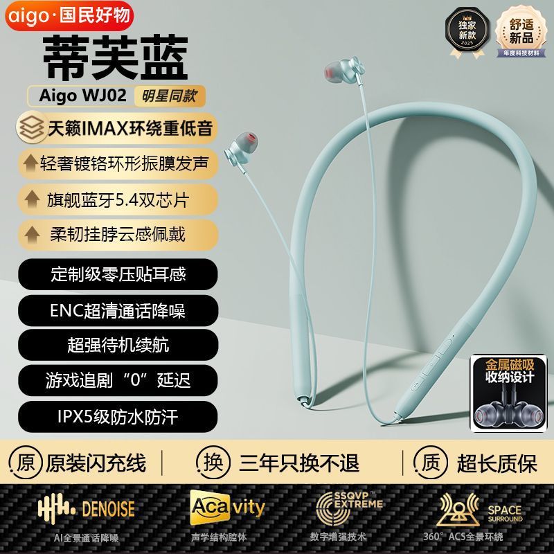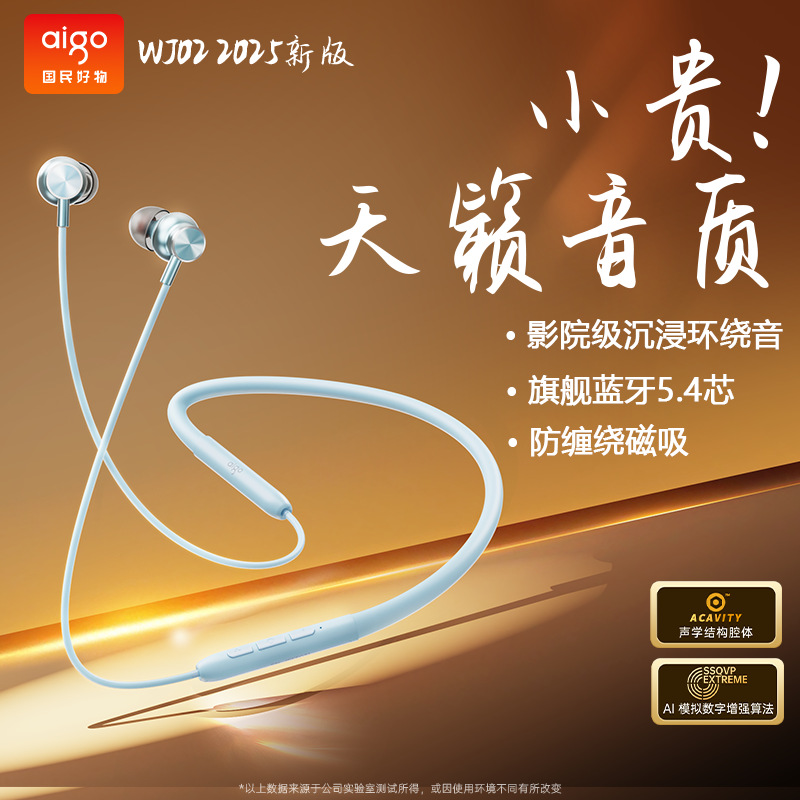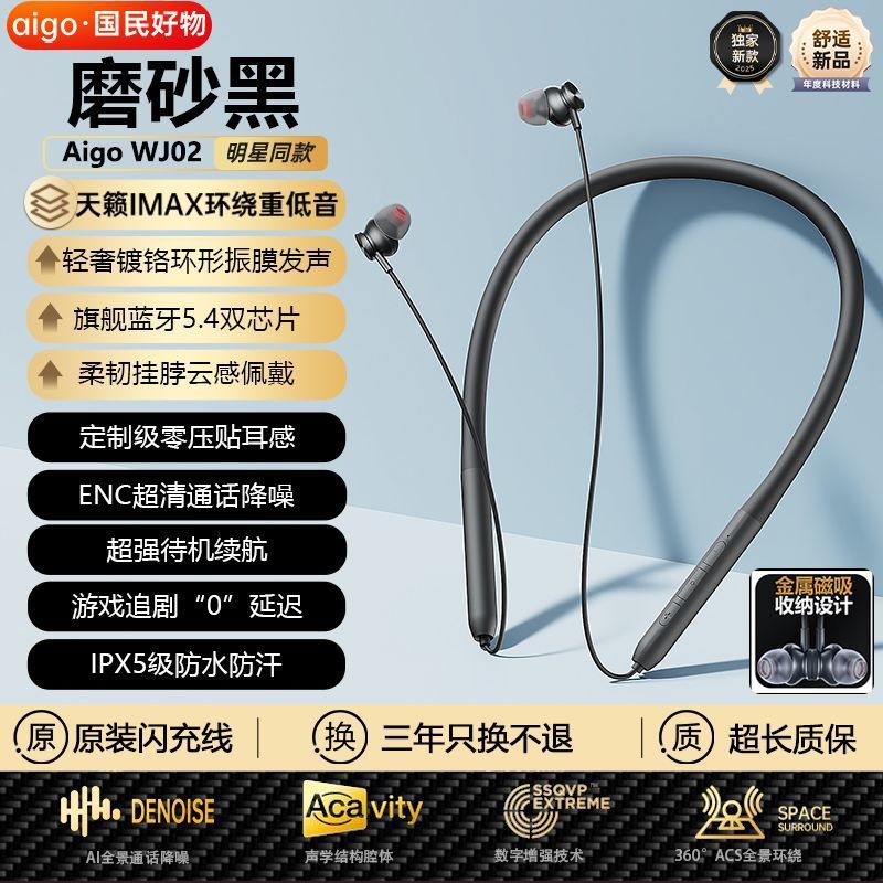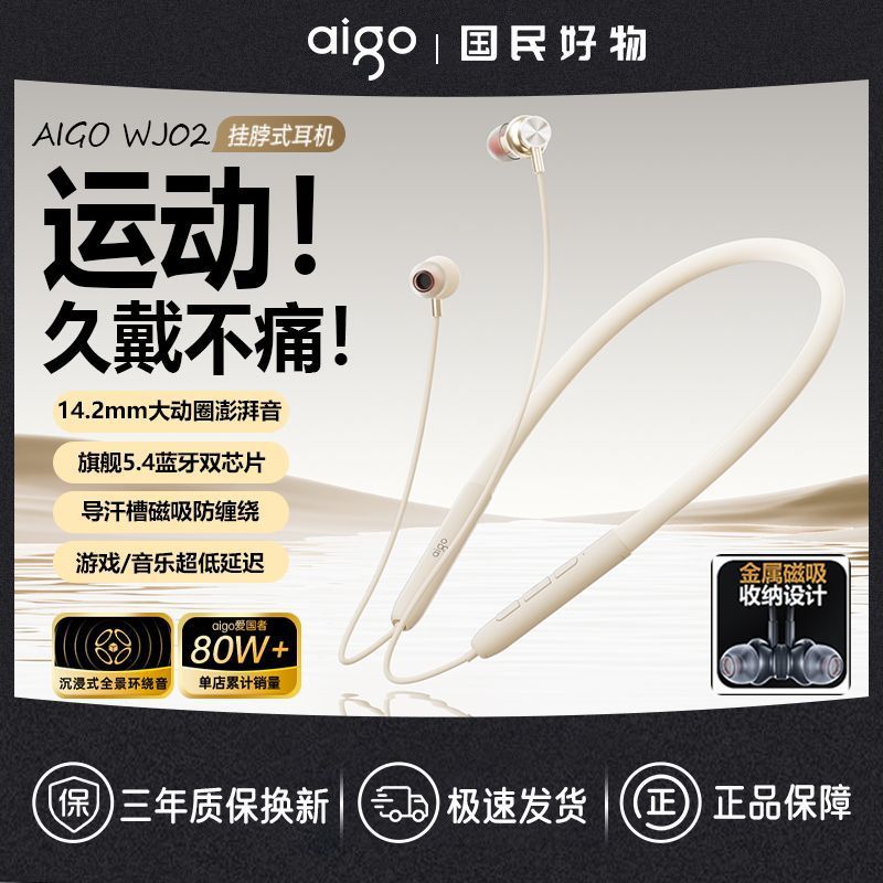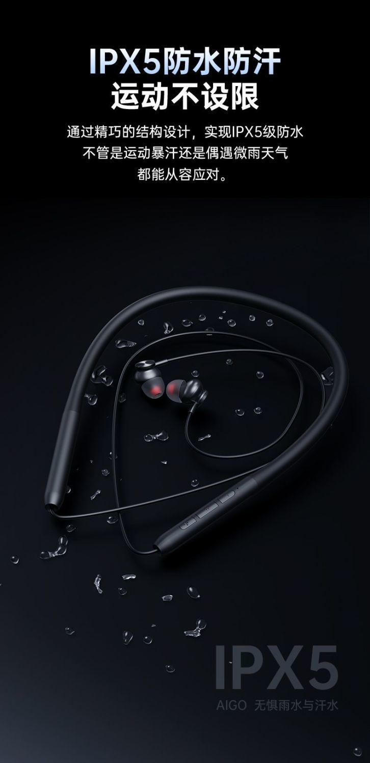 爱国者WJ02新款颈挂式蓝牙耳机挂脖式入耳式运动耳机长续航高音质