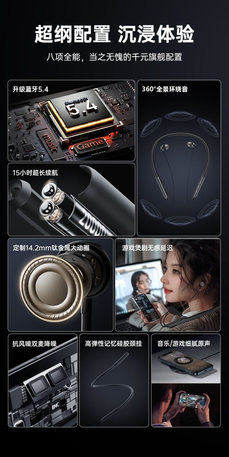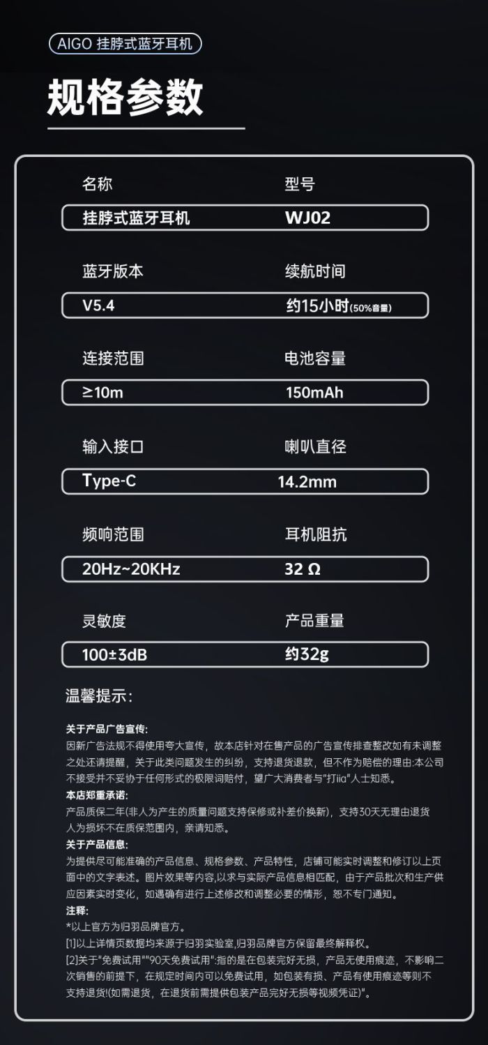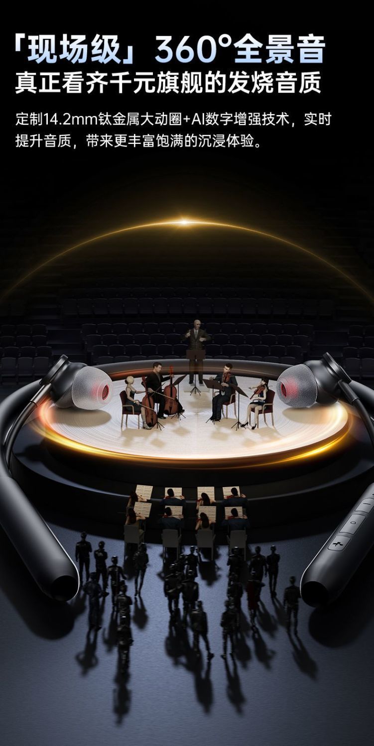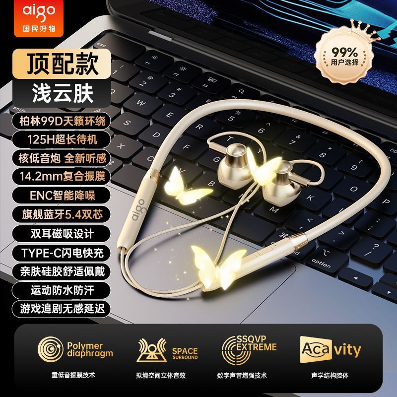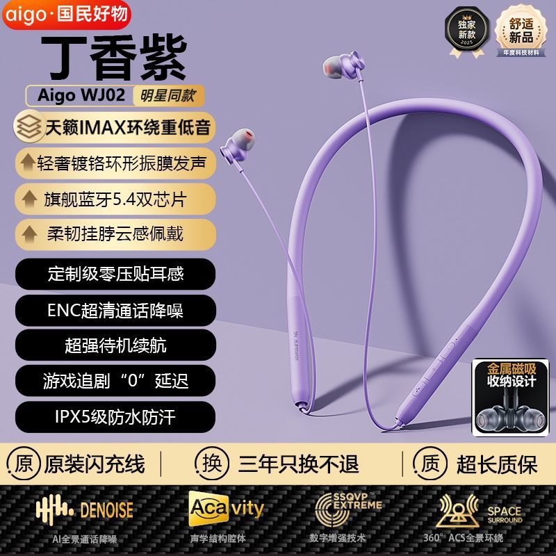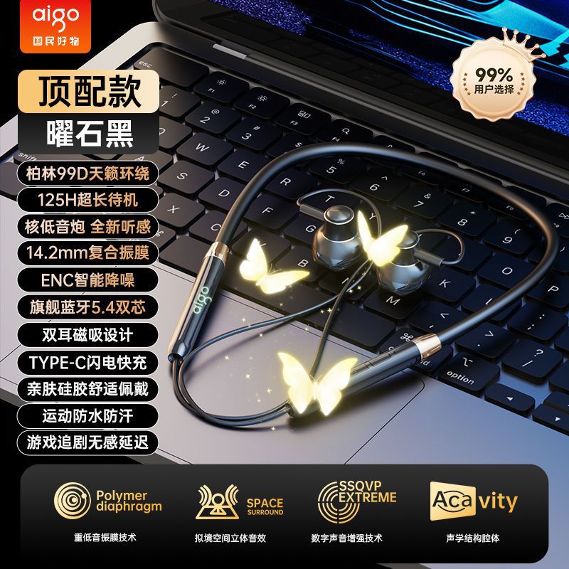 爱国者WJ02新款颈挂式蓝牙耳机挂脖式入耳式运动耳机长续航高音质