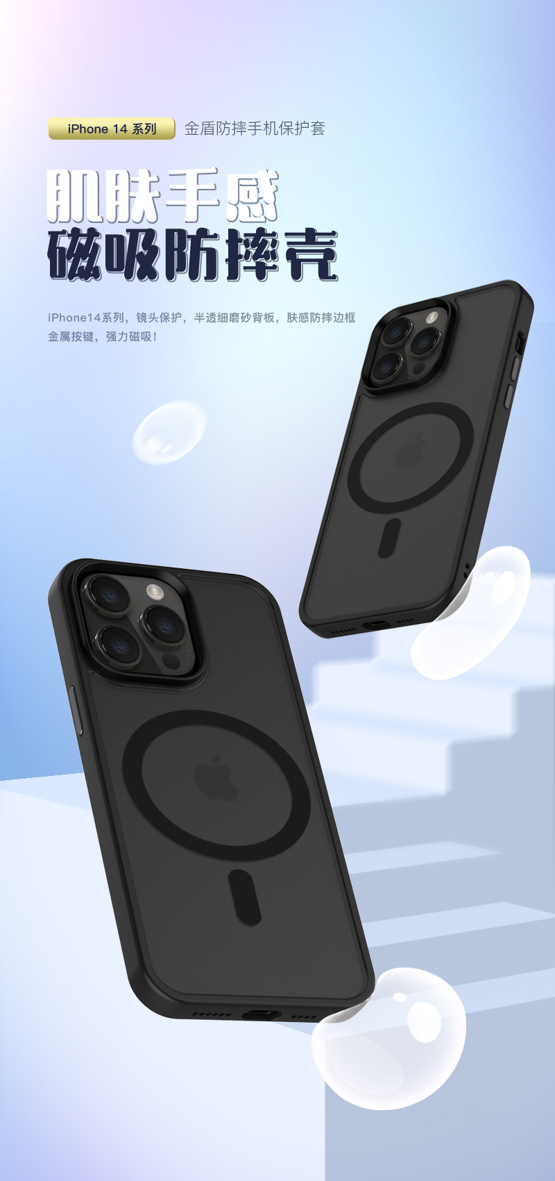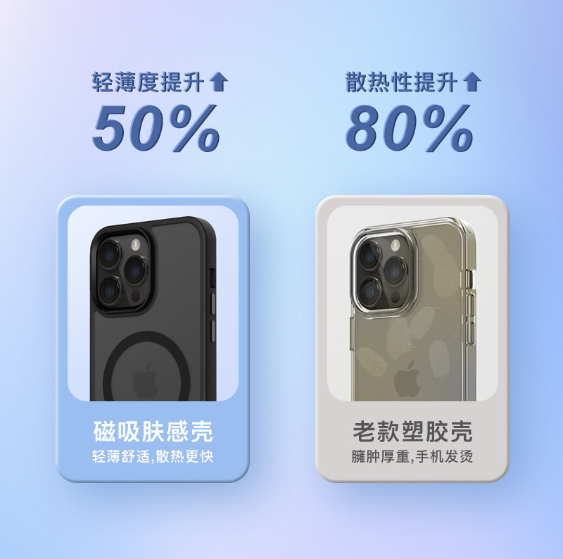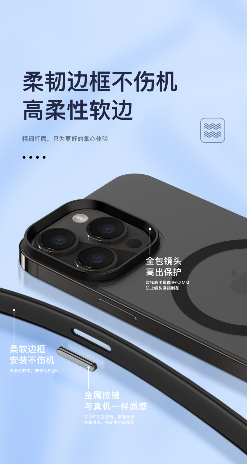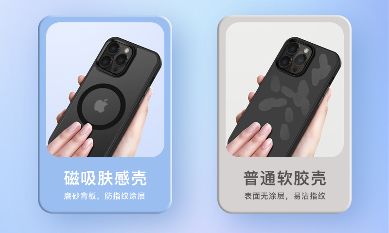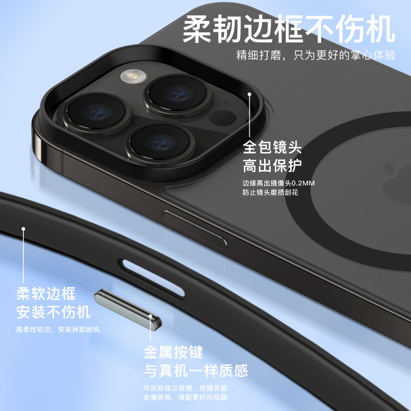 适用苹果15磁吸手机壳iphone 14肤感防摔保护套13pro手机高级感壳