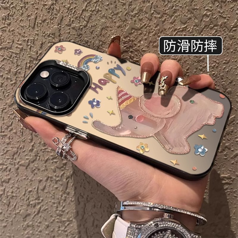 油画大象适用苹果16手机壳15新款14可爱清新13卡通12磨砂11保防摔