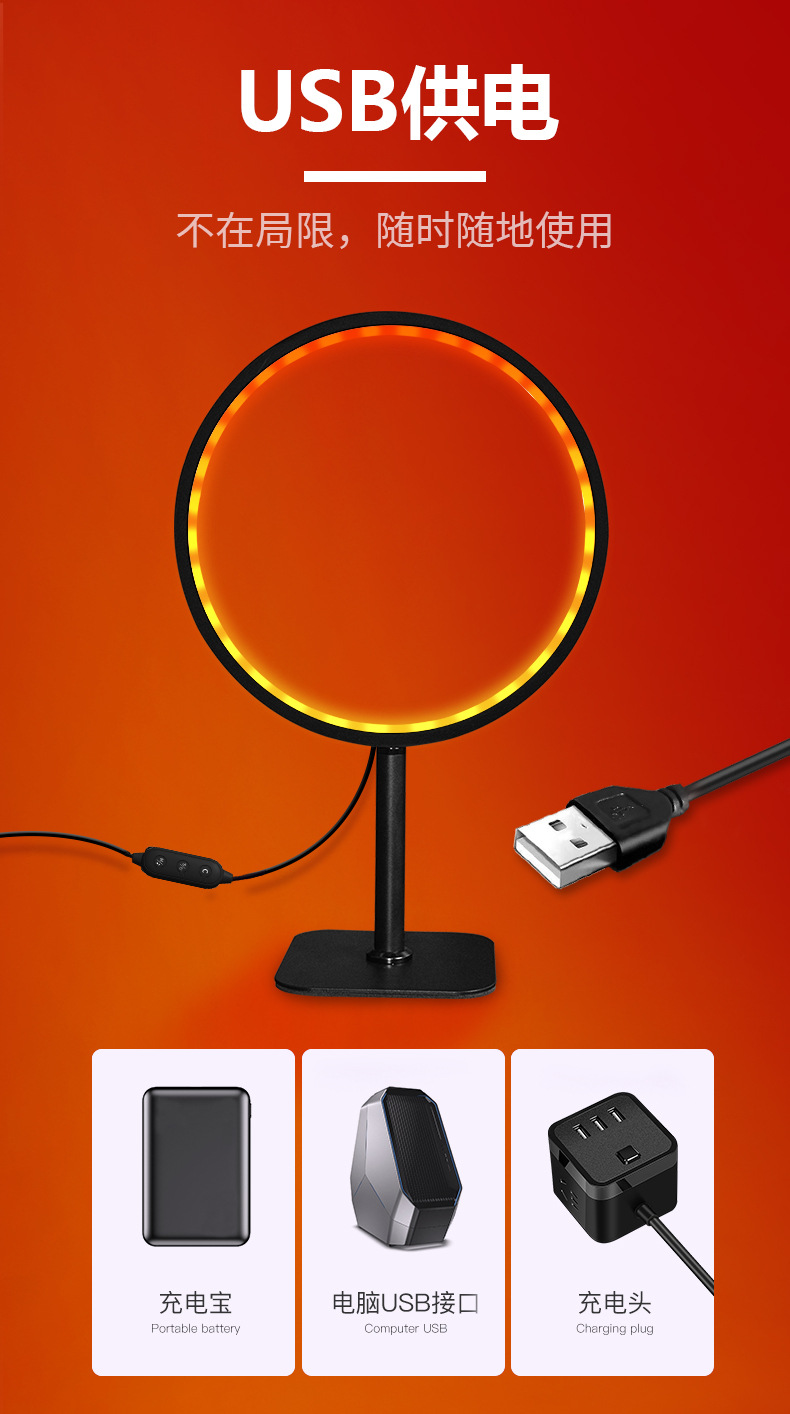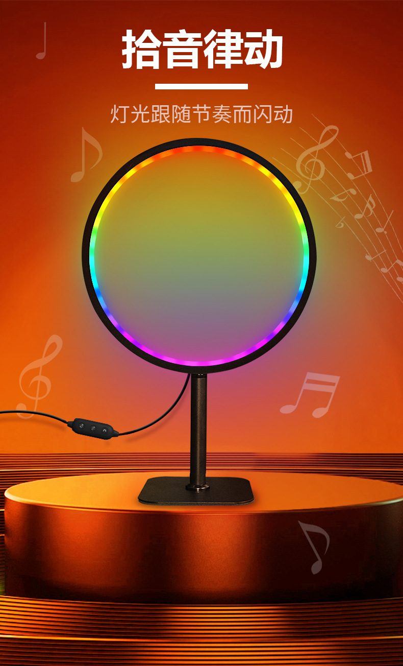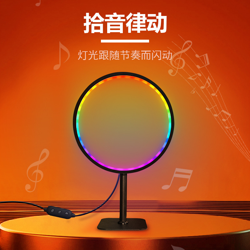 新款app控制遥控音随律动桌面拾音灯网红直播圆形rgb电竞氛围灯