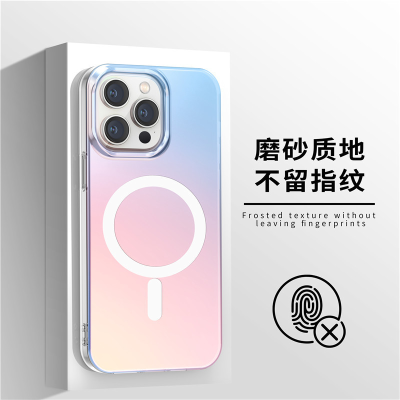 适用苹果15磁吸手机壳Magsafe镭射iphone14磨砂13变色龙16Pro批发