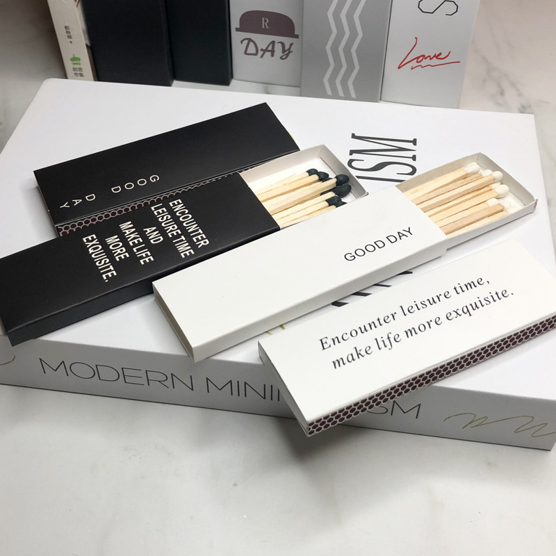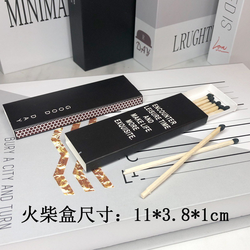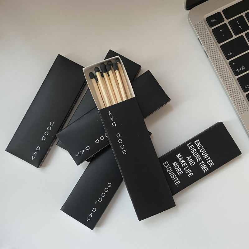 文艺复古火柴加长火烛香薰蜡烛专用木质火柴 黑白纸盒创意简约装