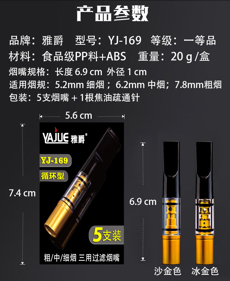 烟嘴过滤器香烟过滤嘴男士循环型可清洗粗中细三用吸烟滤嘴YJ169