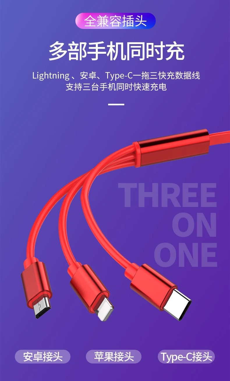 【新人到手0.01元】伸缩数据线快充一拖三手机充电线通用适用安卓