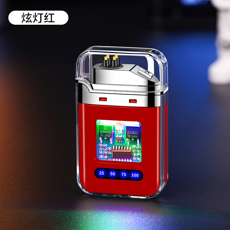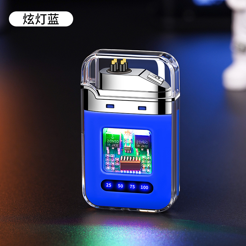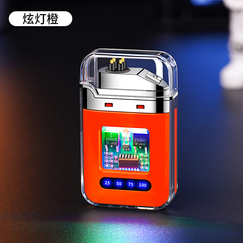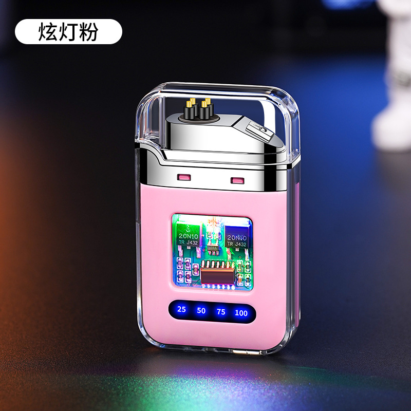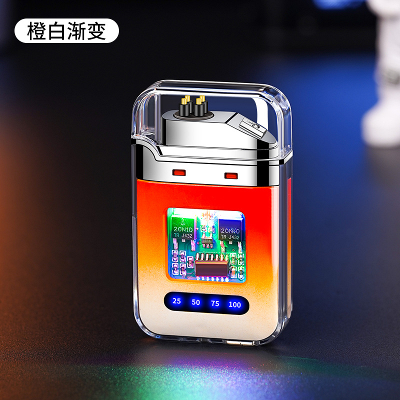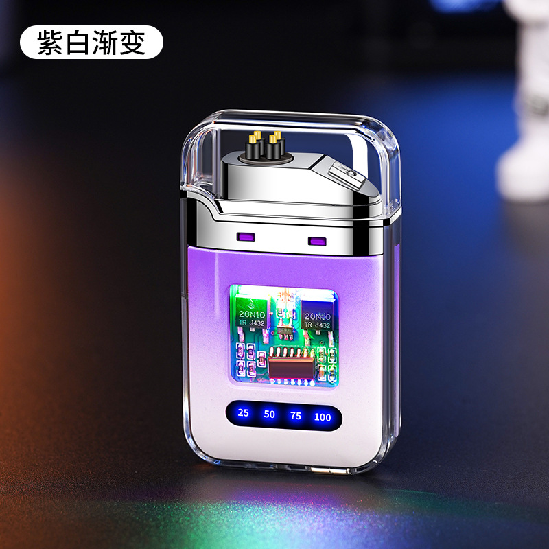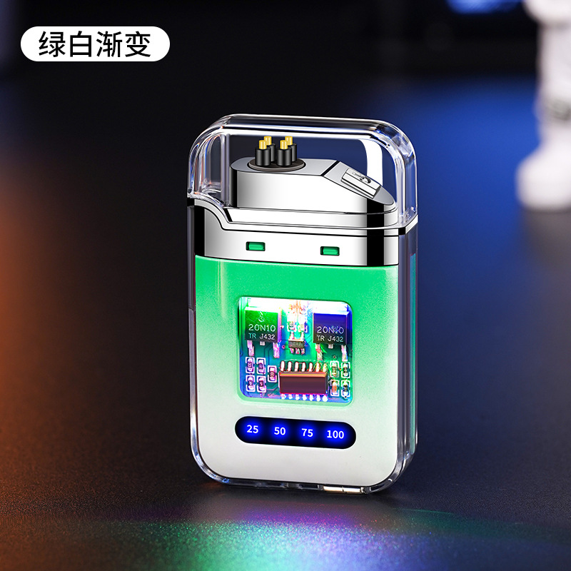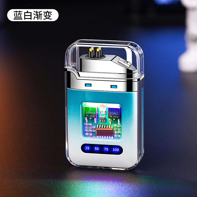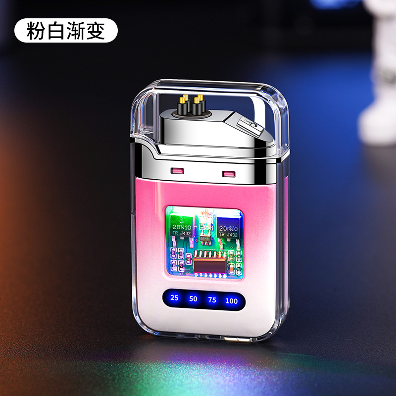 充电打火机透明壳渐变色防水电子脉冲防风双电弧点烟送男友礼物
