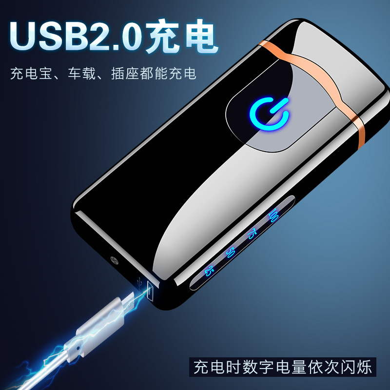 六弧196B双电弧真火焰脉冲打火机金属防风充电火机个性ding制LOOG