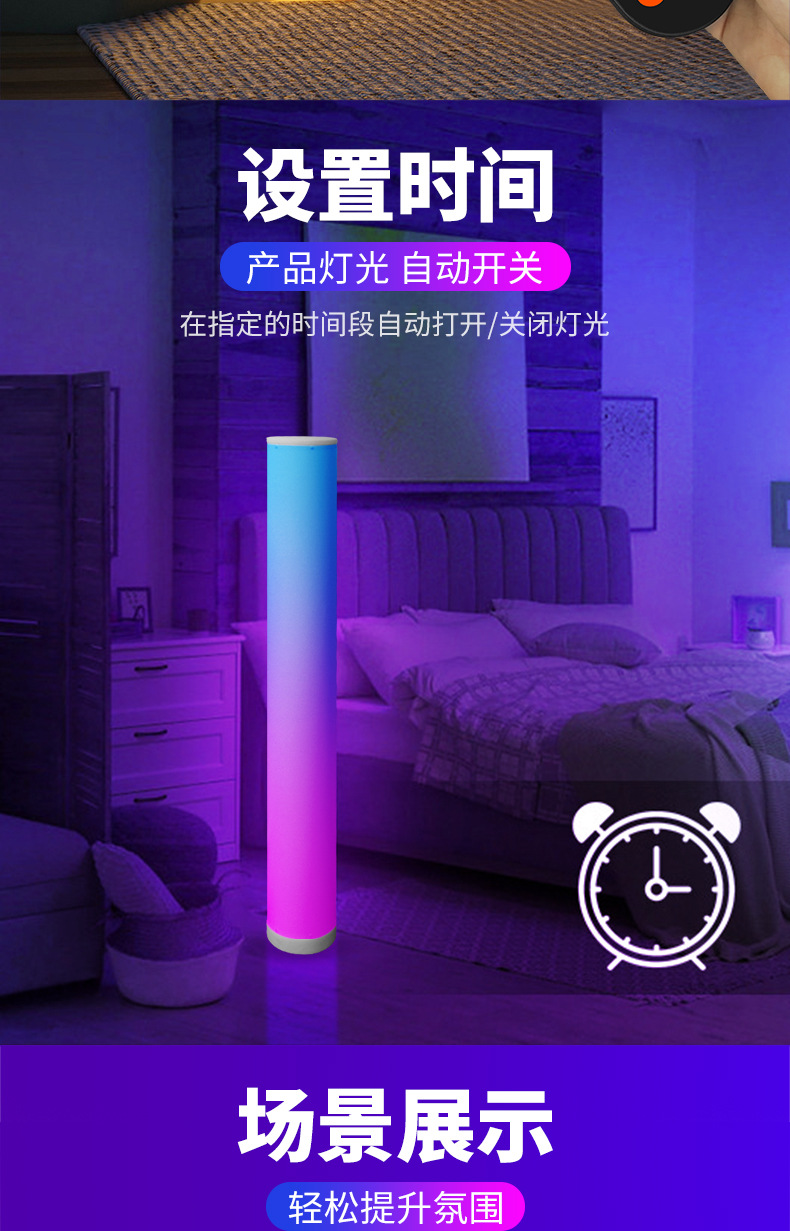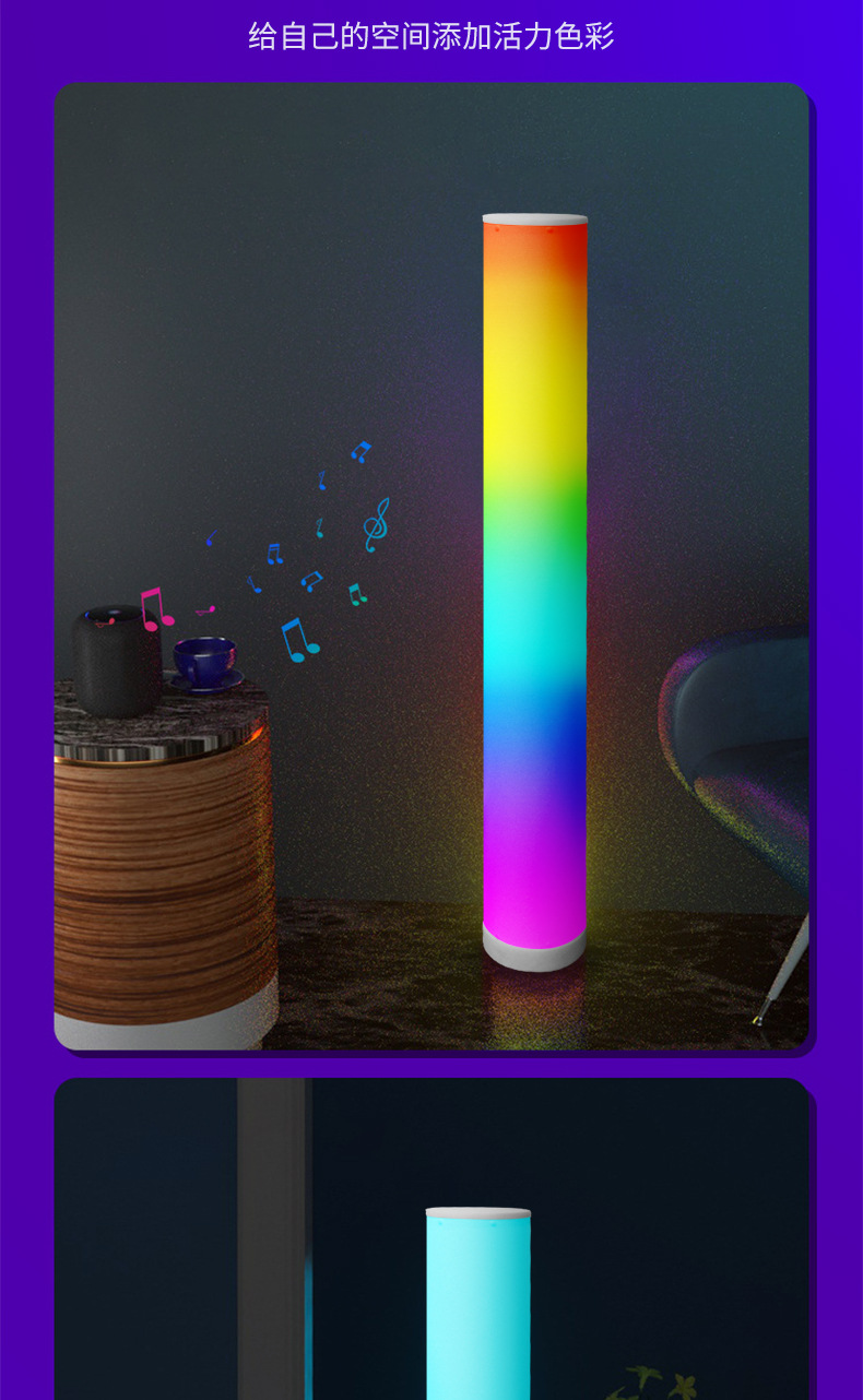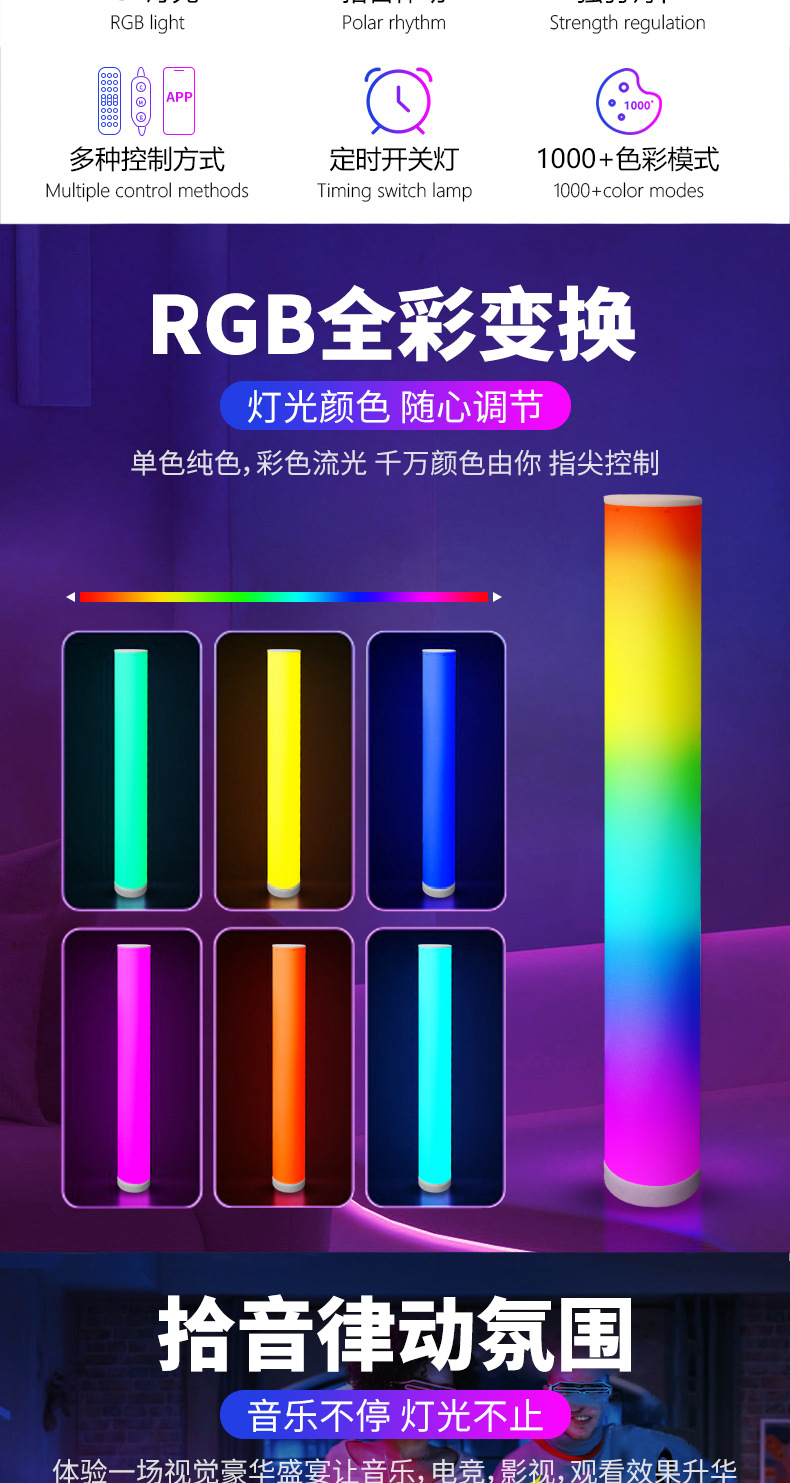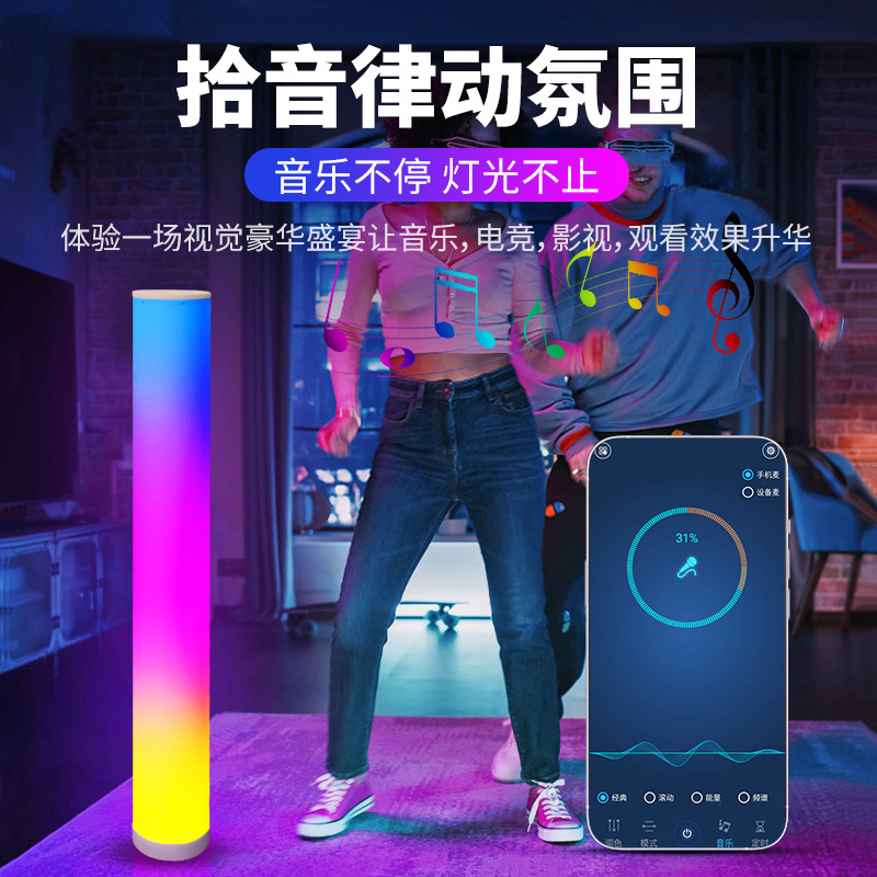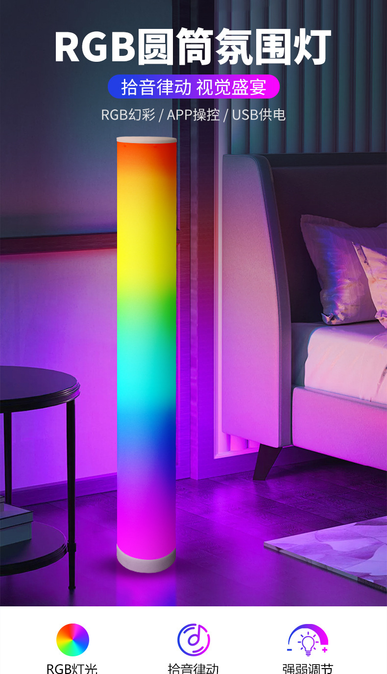 新款RGB全彩遥控APP圆筒落地灯卧室客厅家庭聚会.网红拾音氛围灯