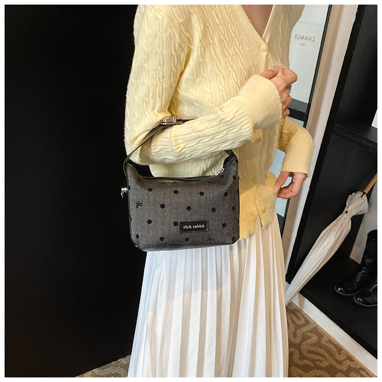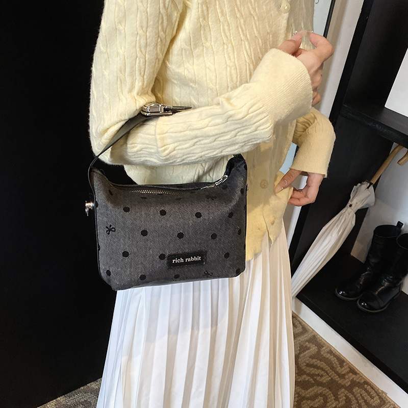 手拎潮流百搭豌豆包女韩版新款时尚撞色蝴蝶结单肩包通勤斜挎包
