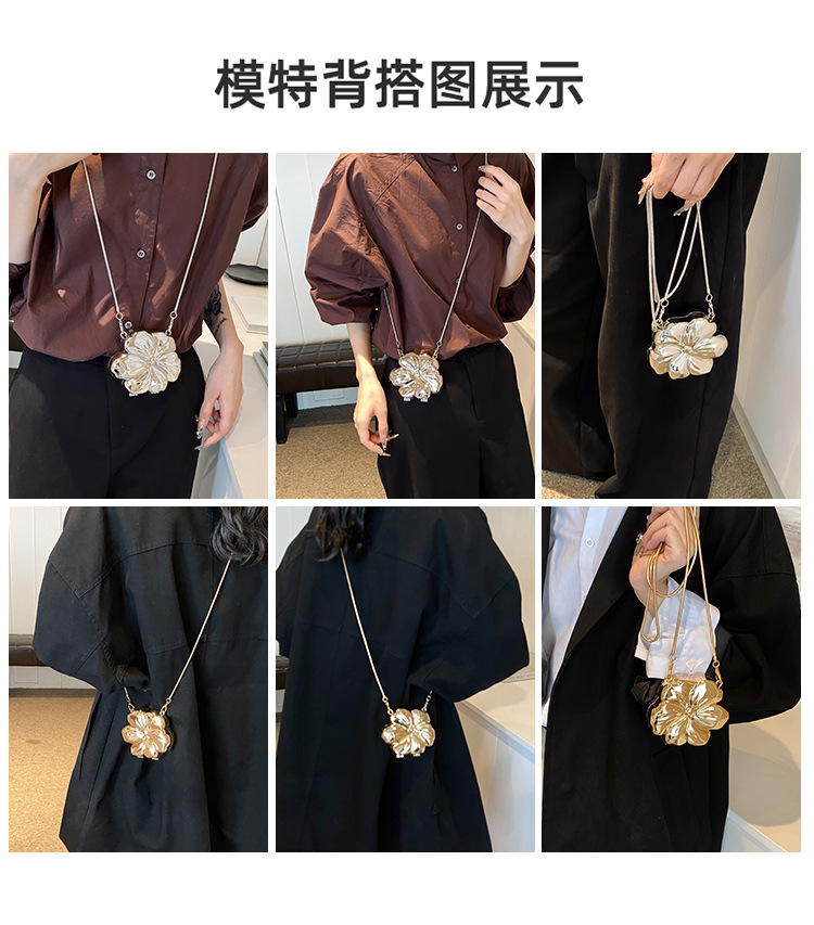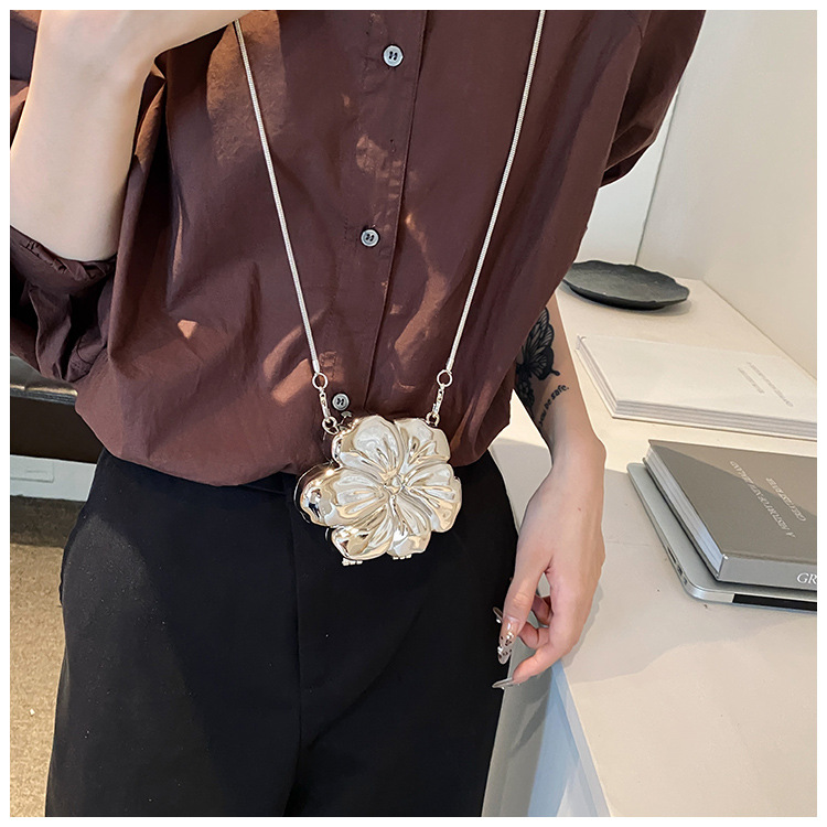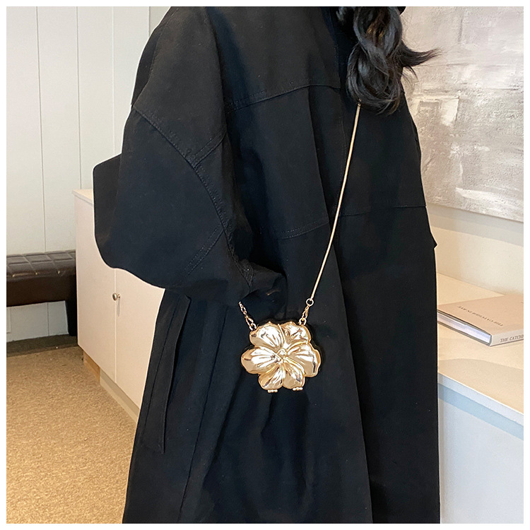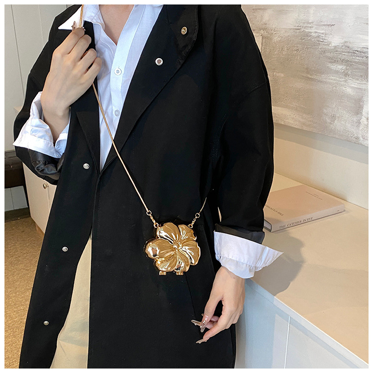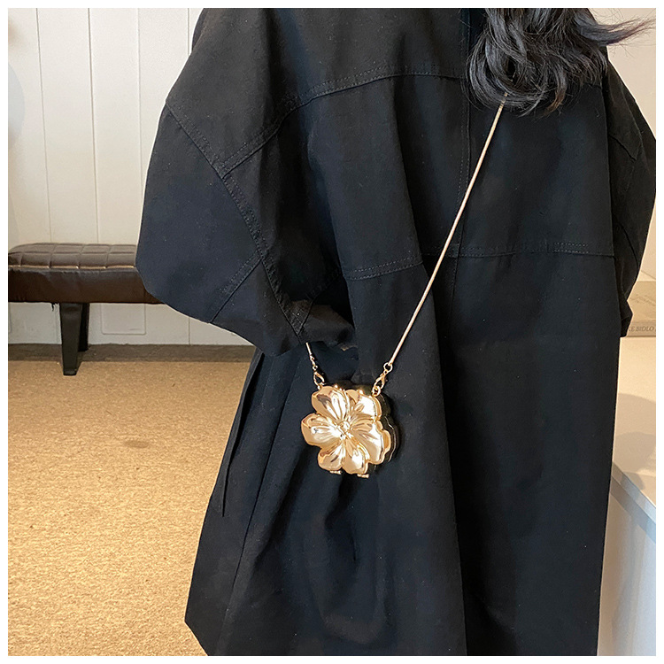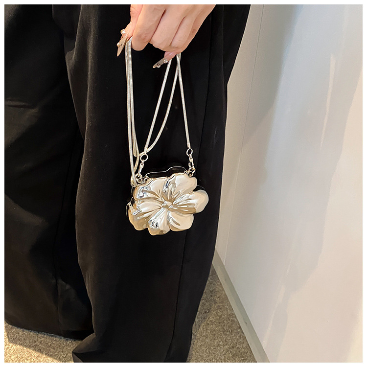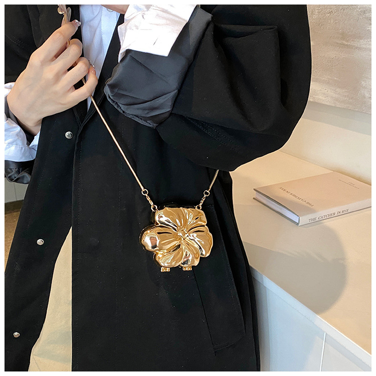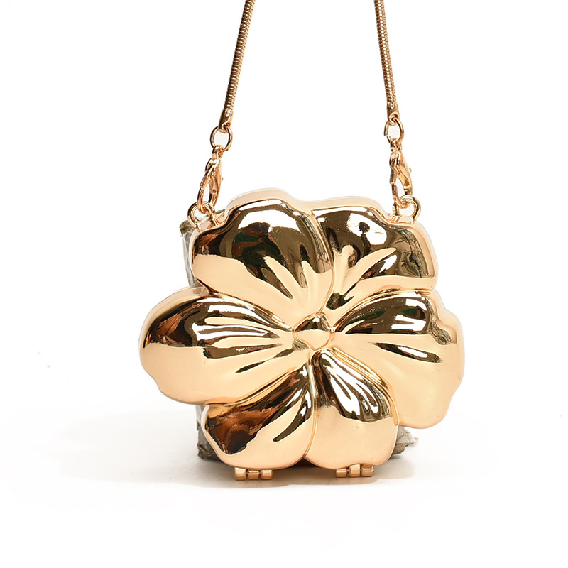 跨境新款镀金亚克力晚宴包时尚小清新花朵形状链条单肩斜挎女包包