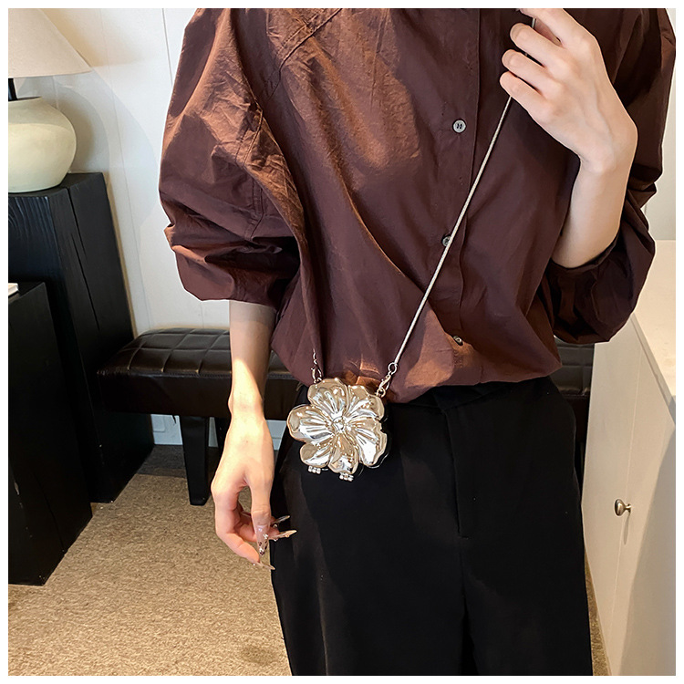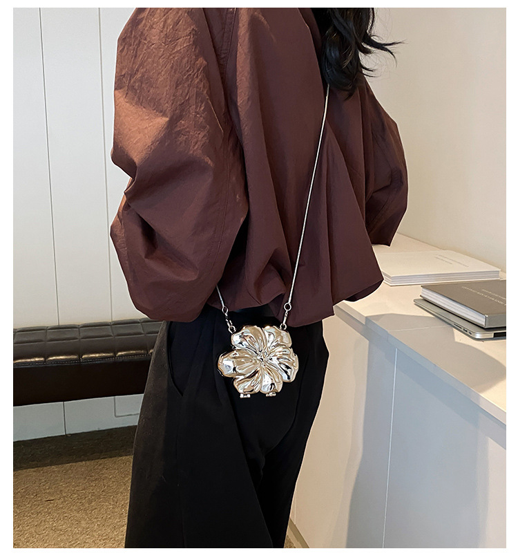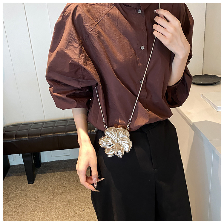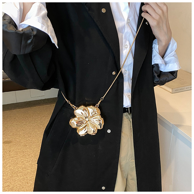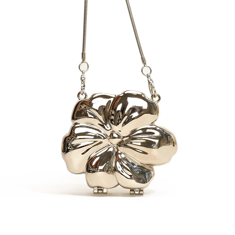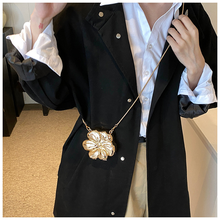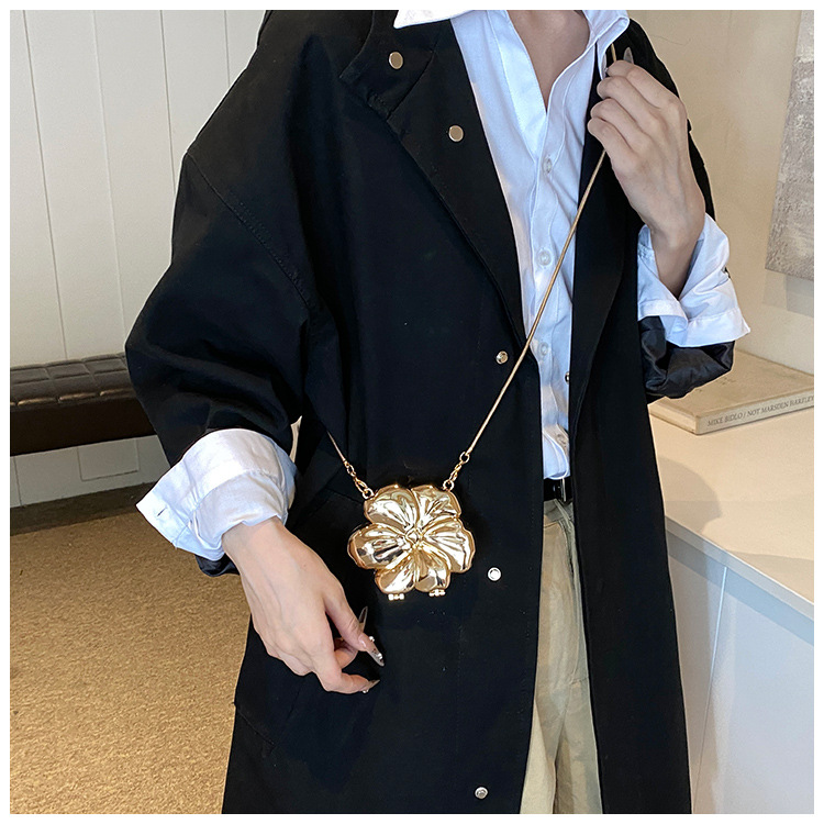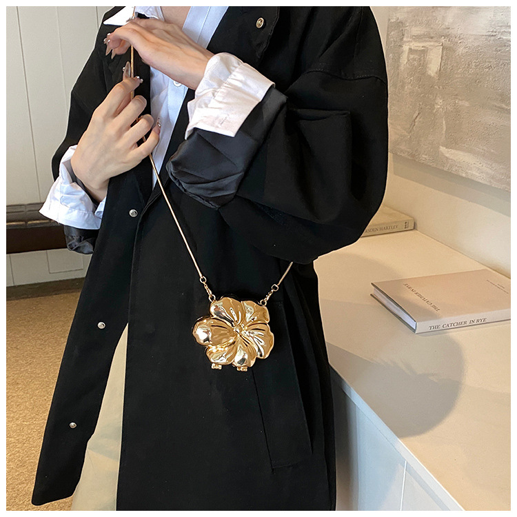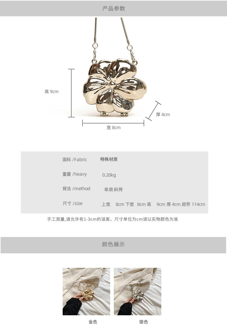 跨境新款镀金亚克力晚宴包时尚小清新花朵形状链条单肩斜挎女包包