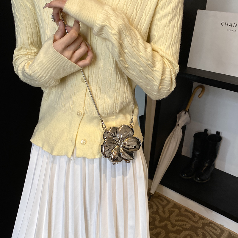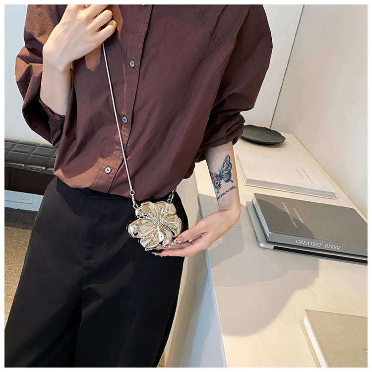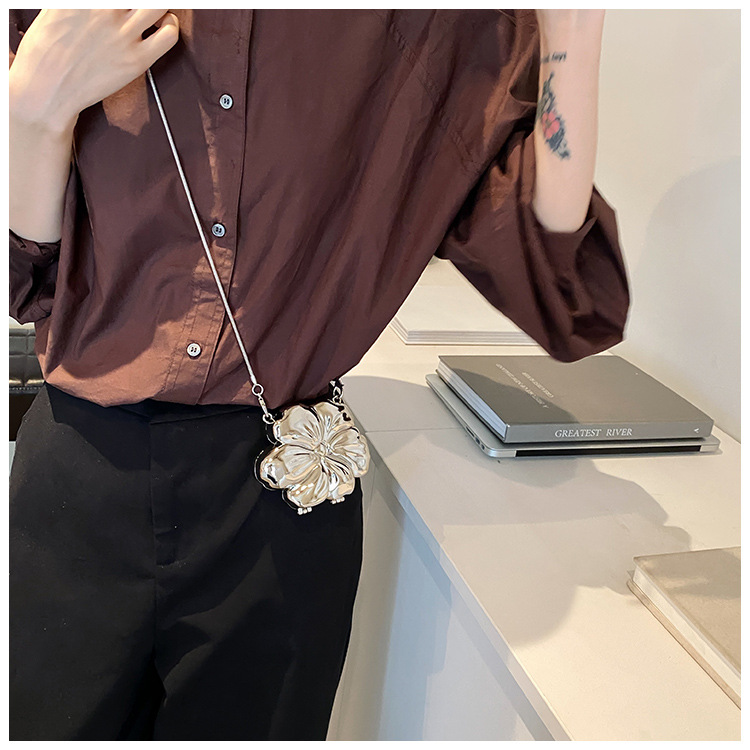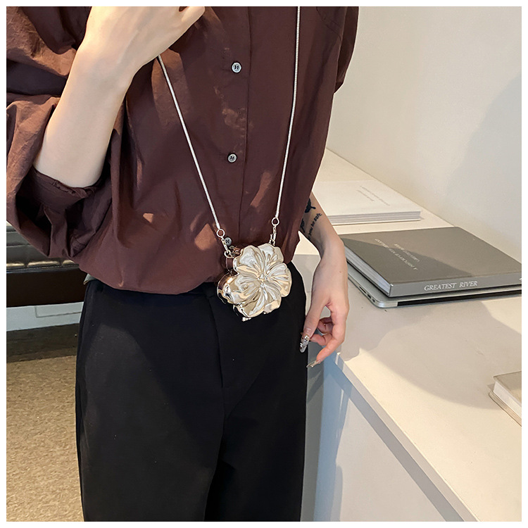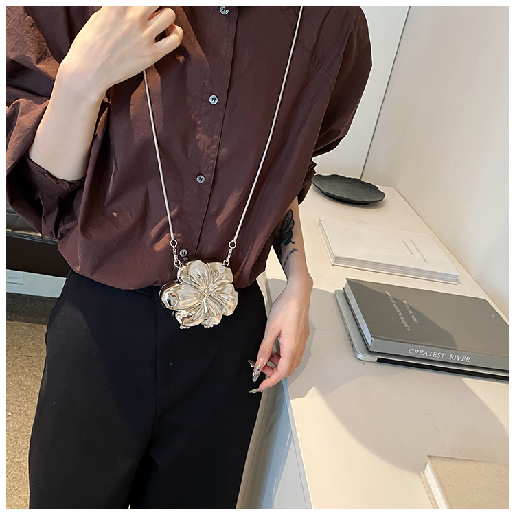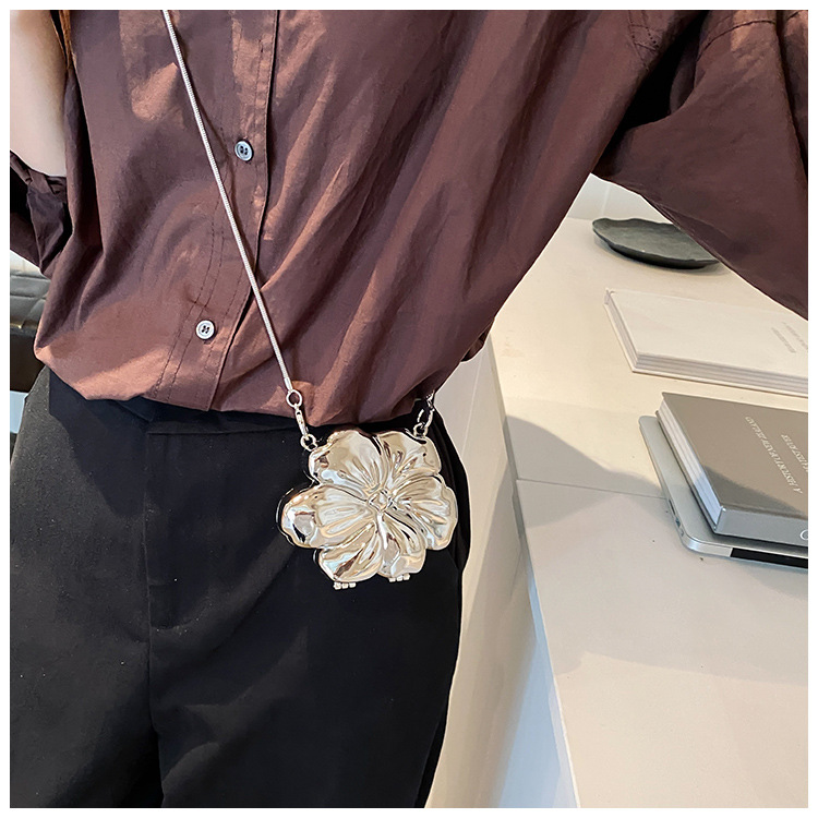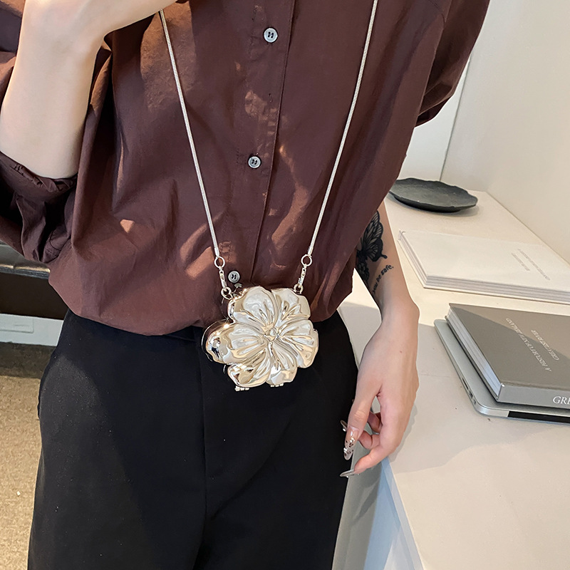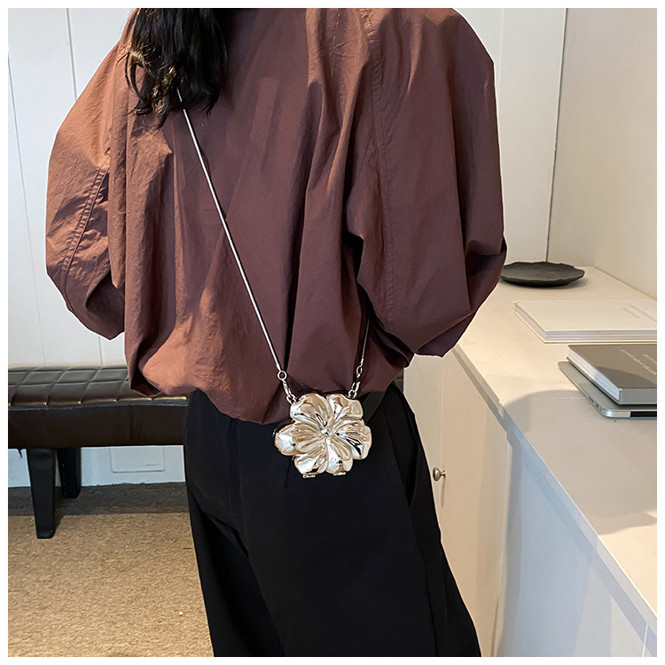 跨境新款镀金亚克力晚宴包时尚小清新花朵形状链条单肩斜挎女包包