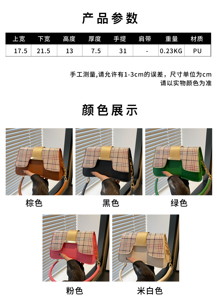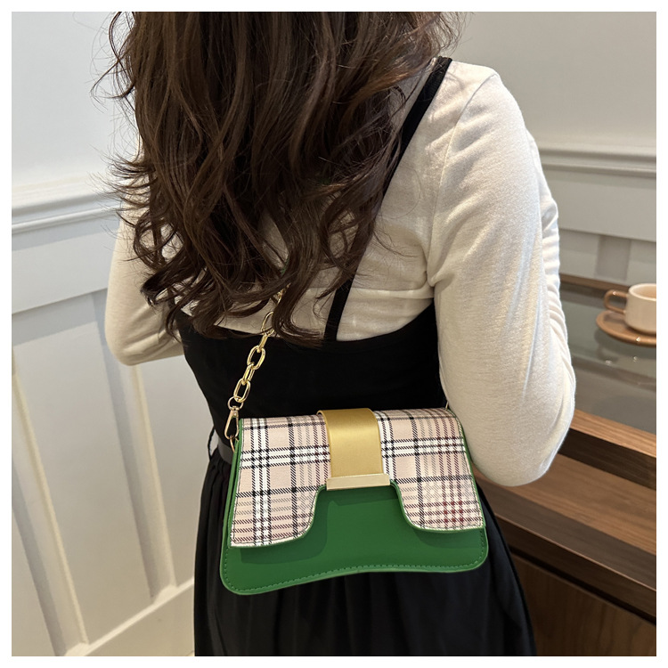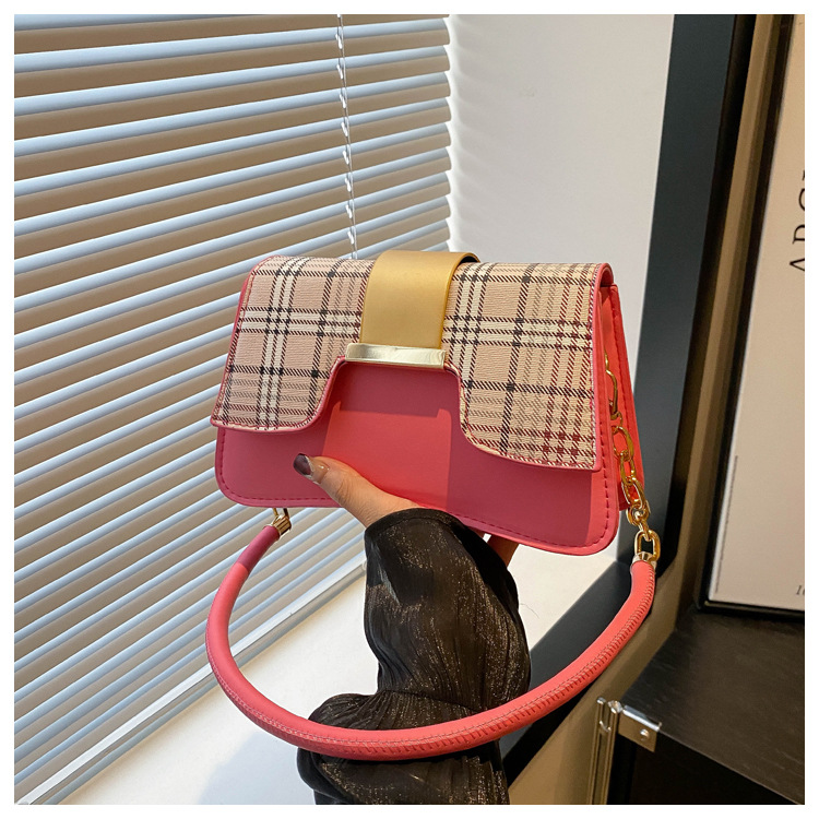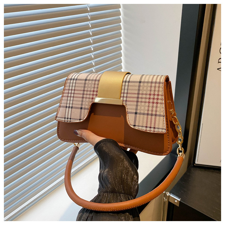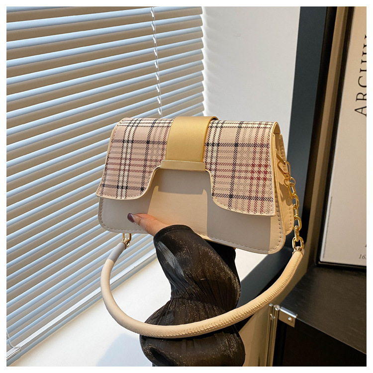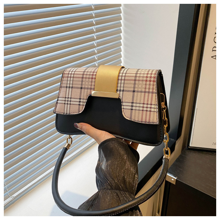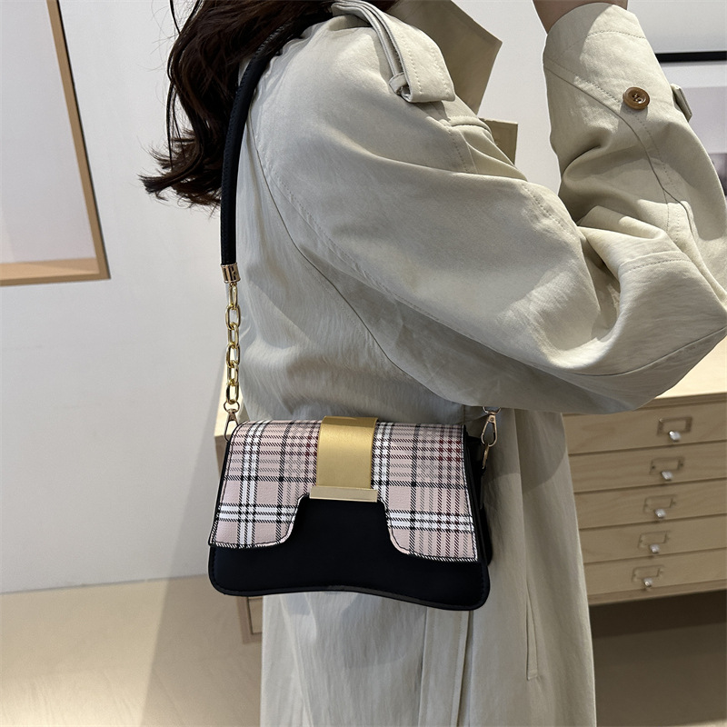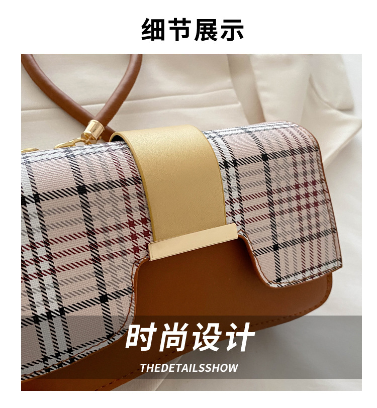 跨境风潮时尚格纹拼接手提包小众韩版单肩斜挎包秋款小方包