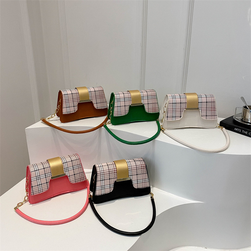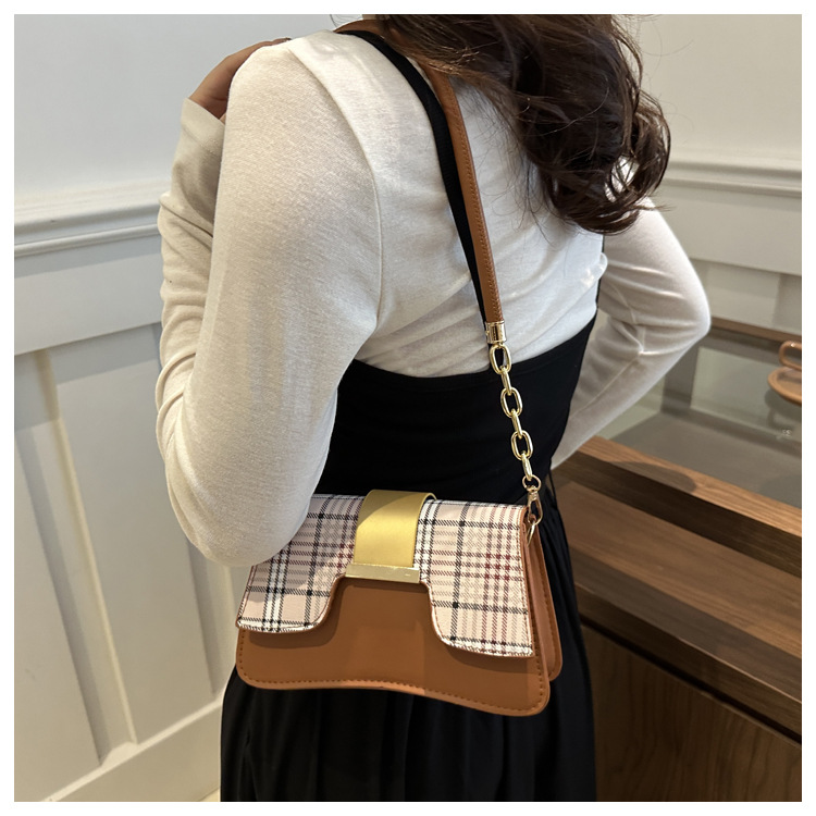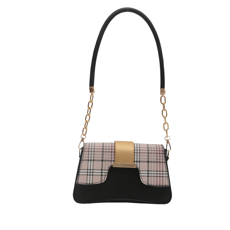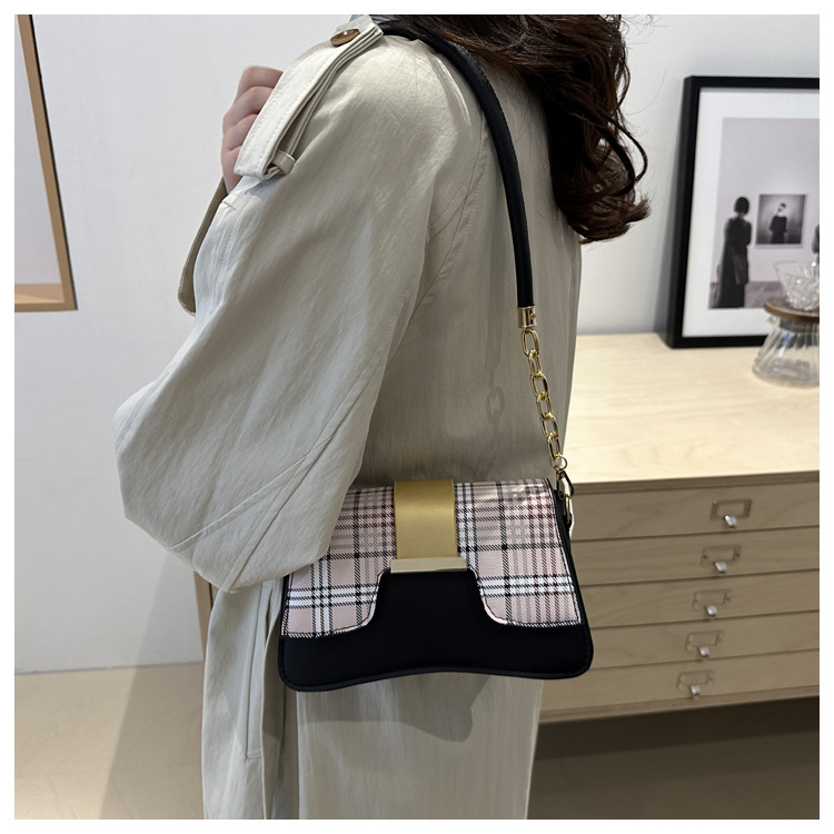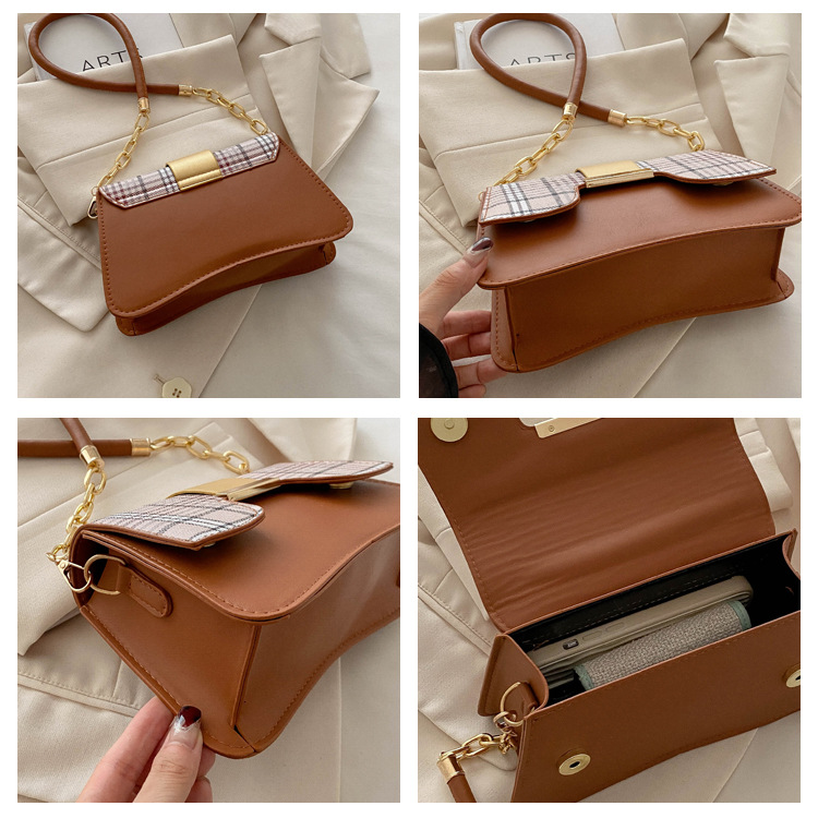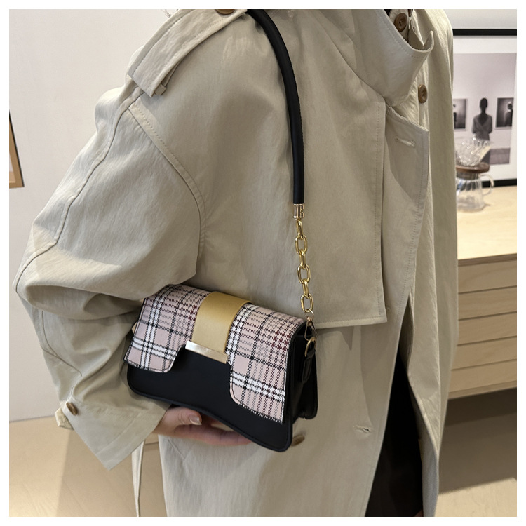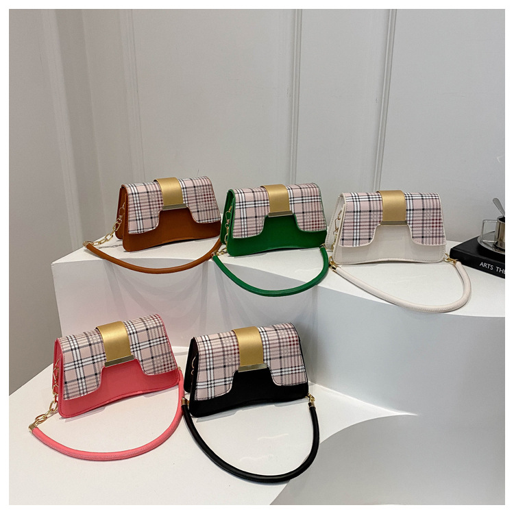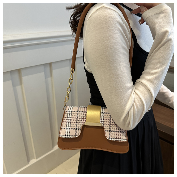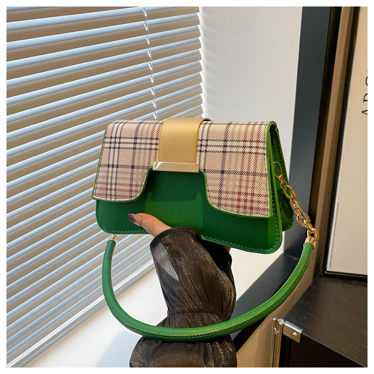 跨境风潮时尚格纹拼接手提包小众韩版单肩斜挎包秋款小方包