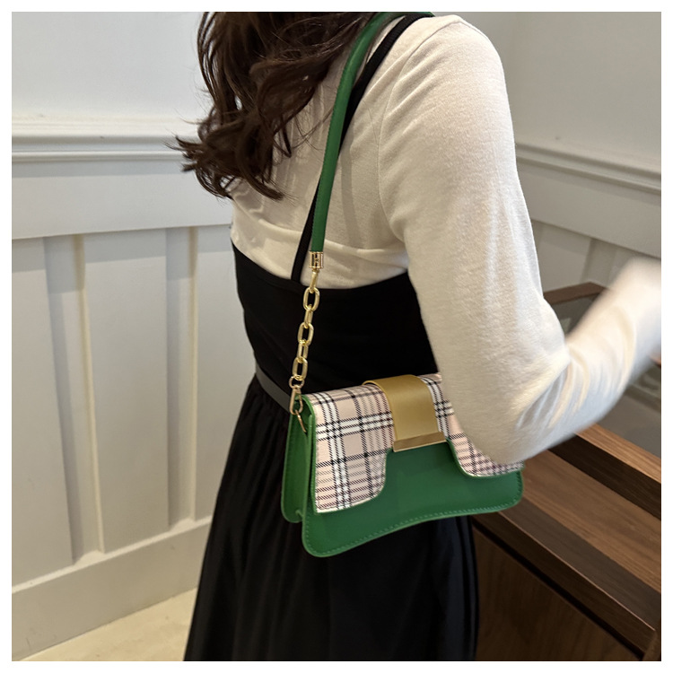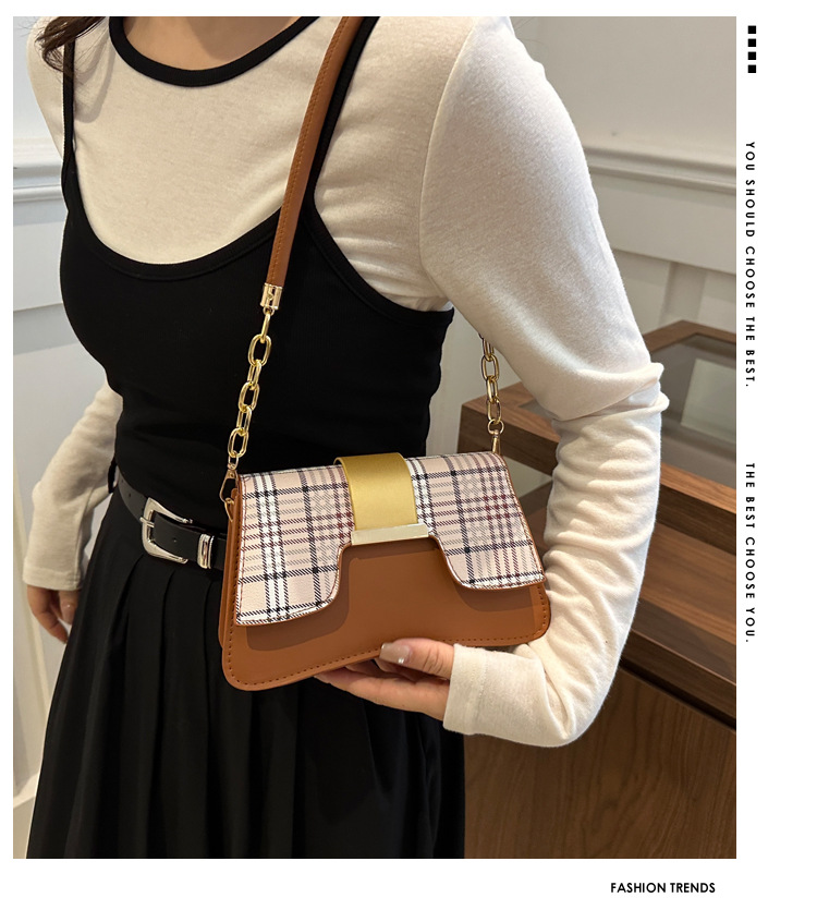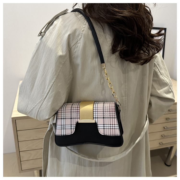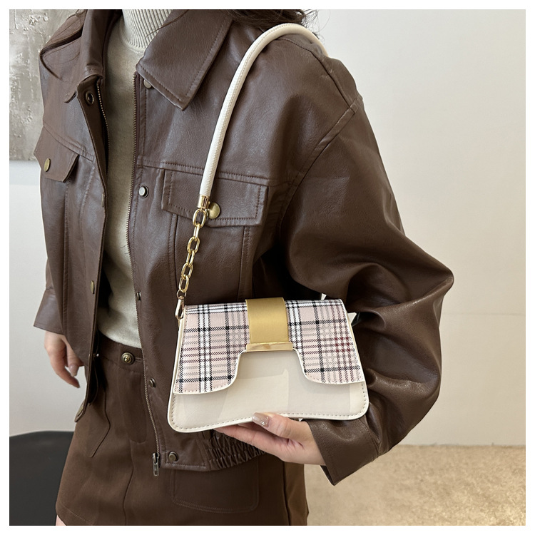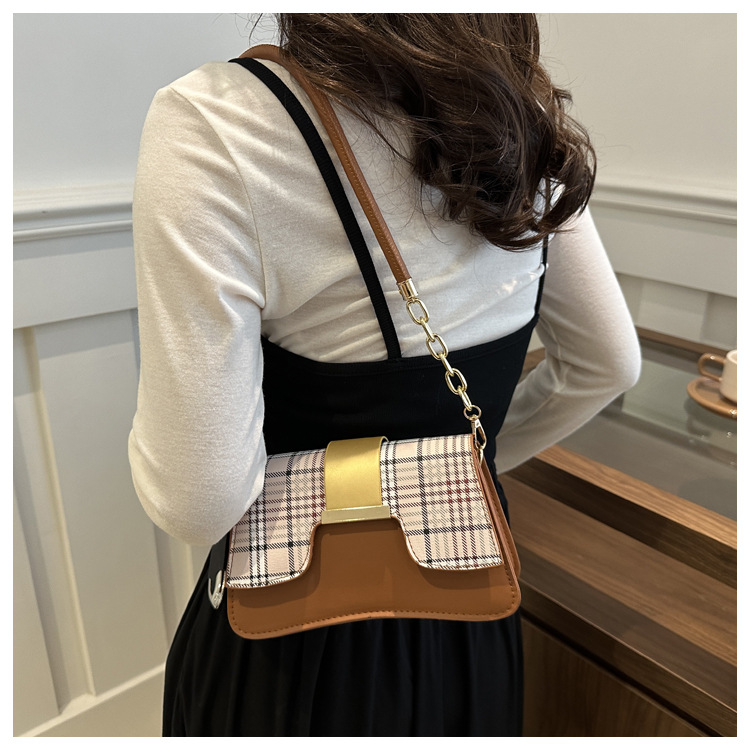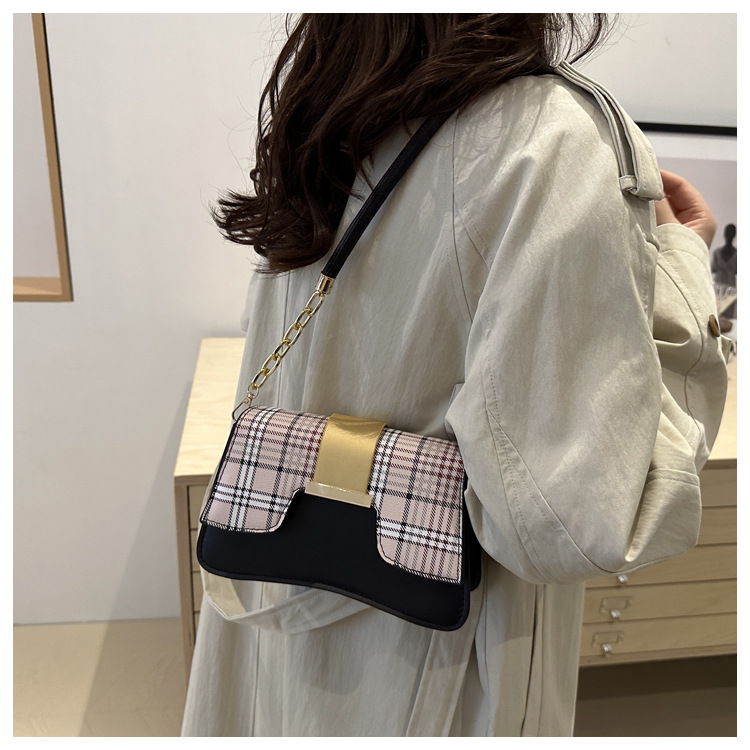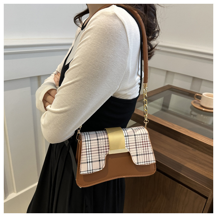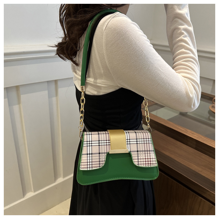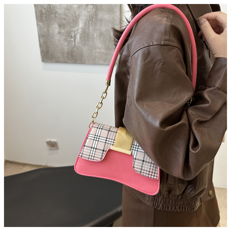 跨境风潮时尚格纹拼接手提包小众韩版单肩斜挎包秋款小方包