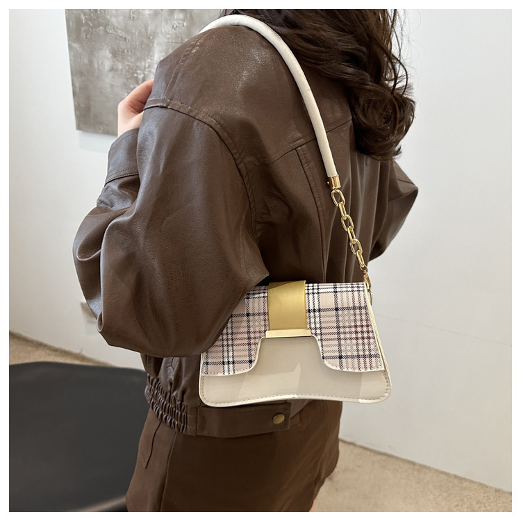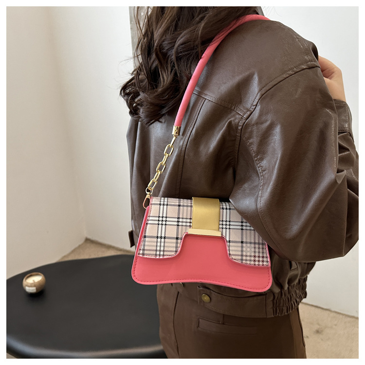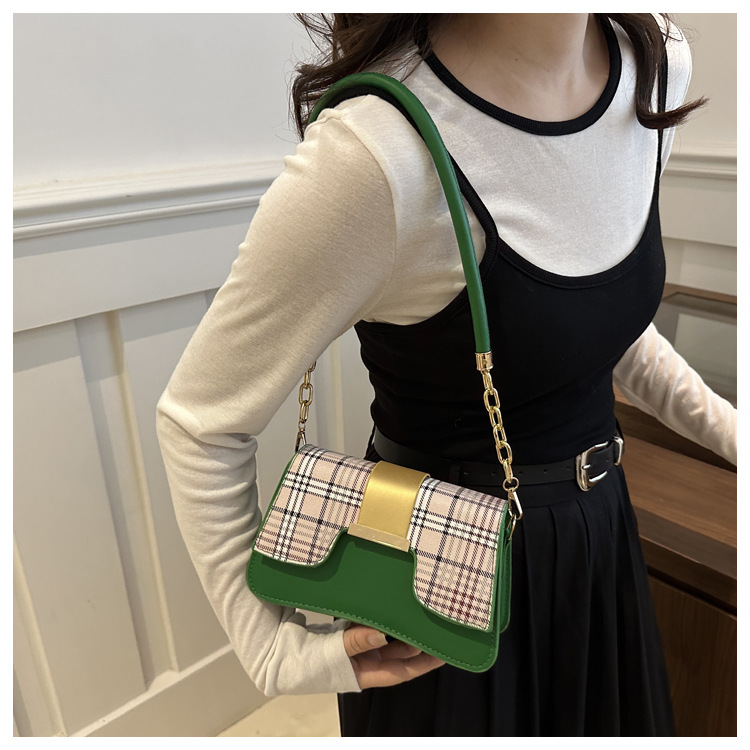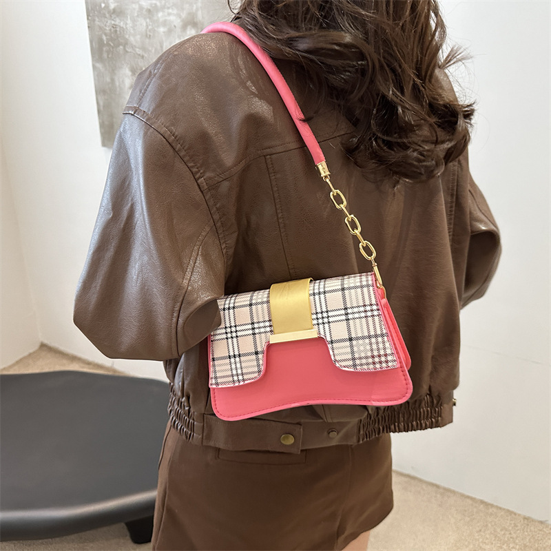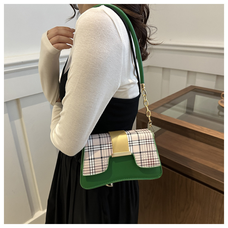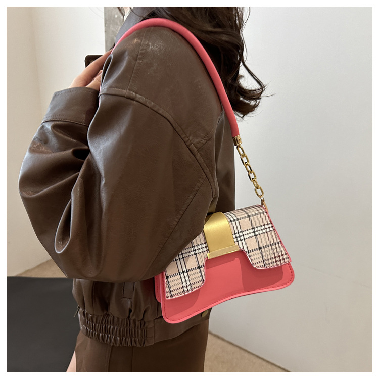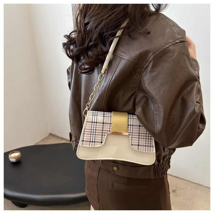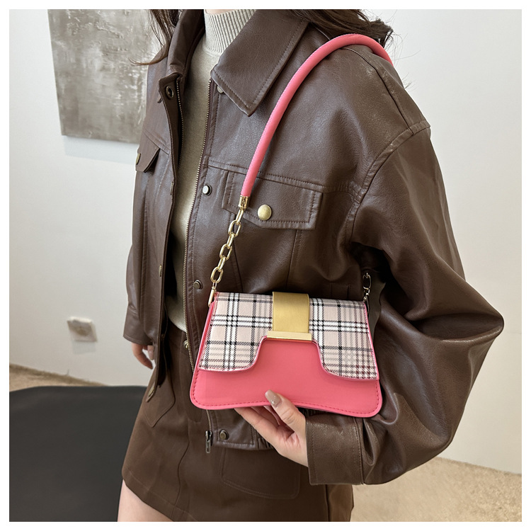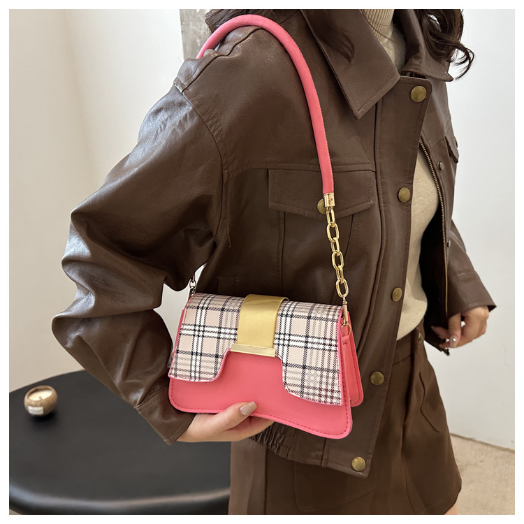 跨境风潮时尚格纹拼接手提包小众韩版单肩斜挎包秋款小方包