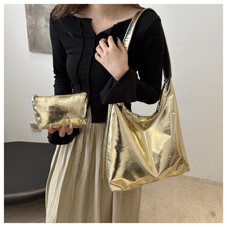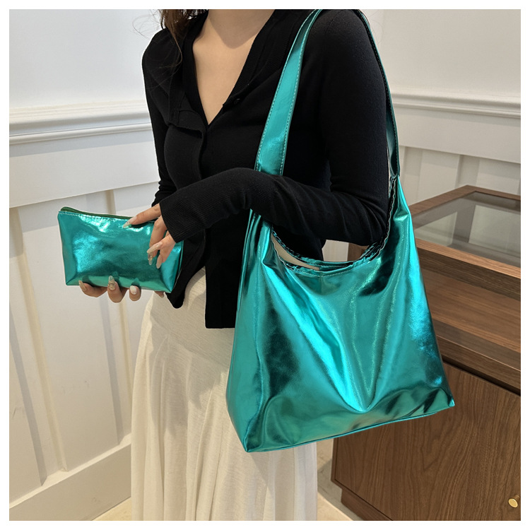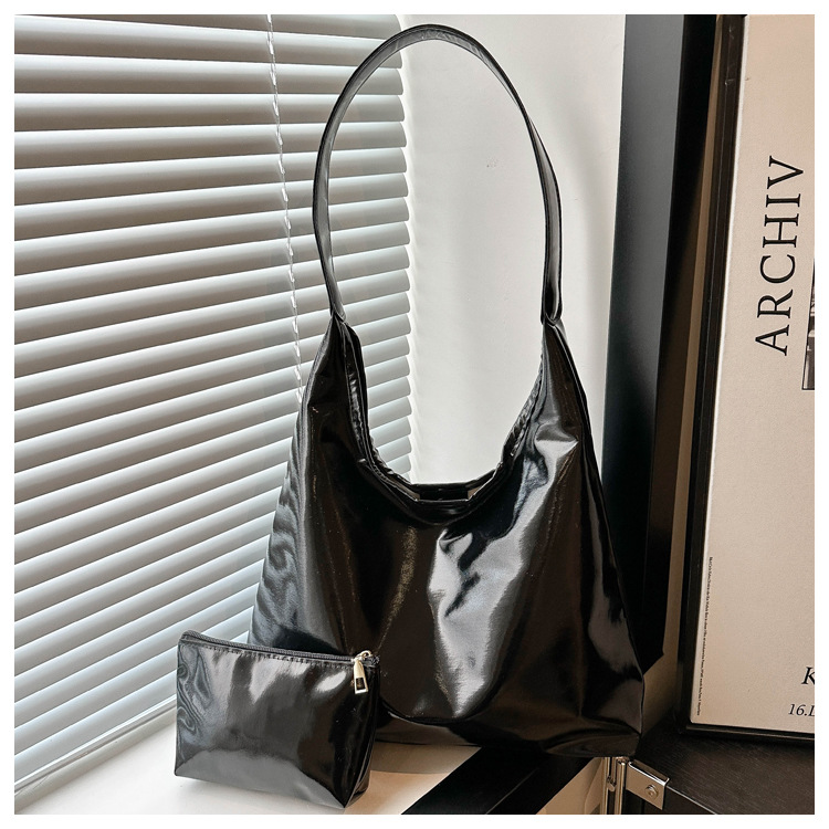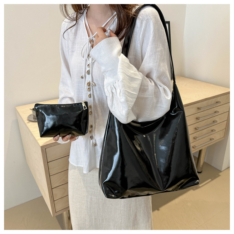 亮面两件套腋下女包2024秋季新款时尚简约大容量洋气单肩托特包