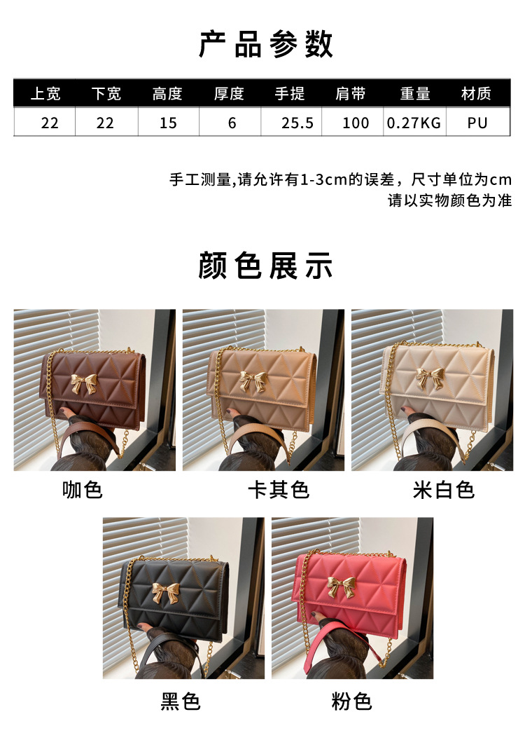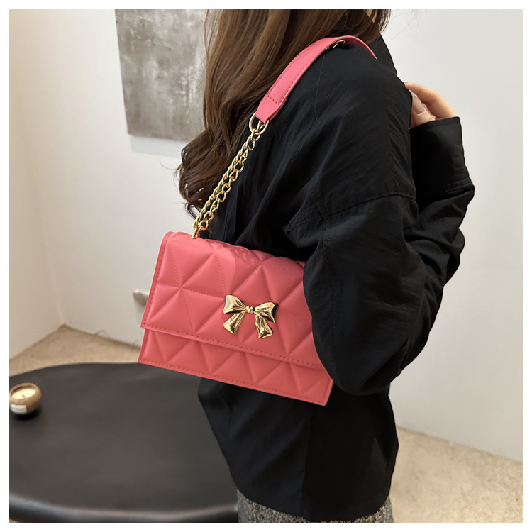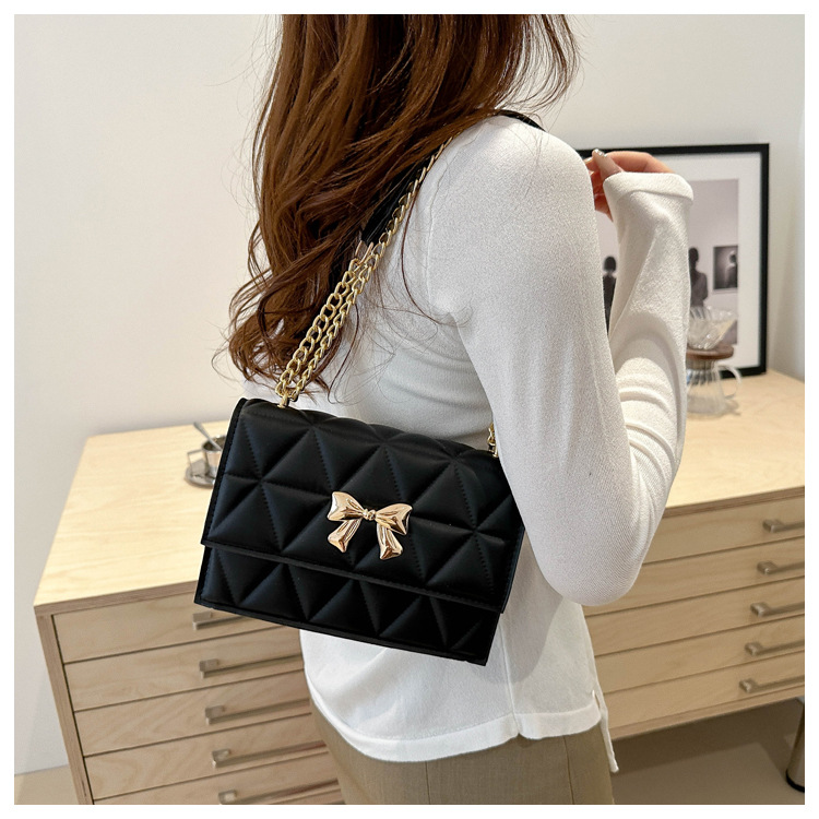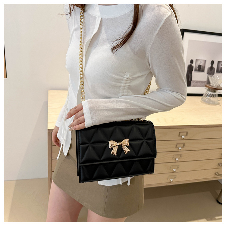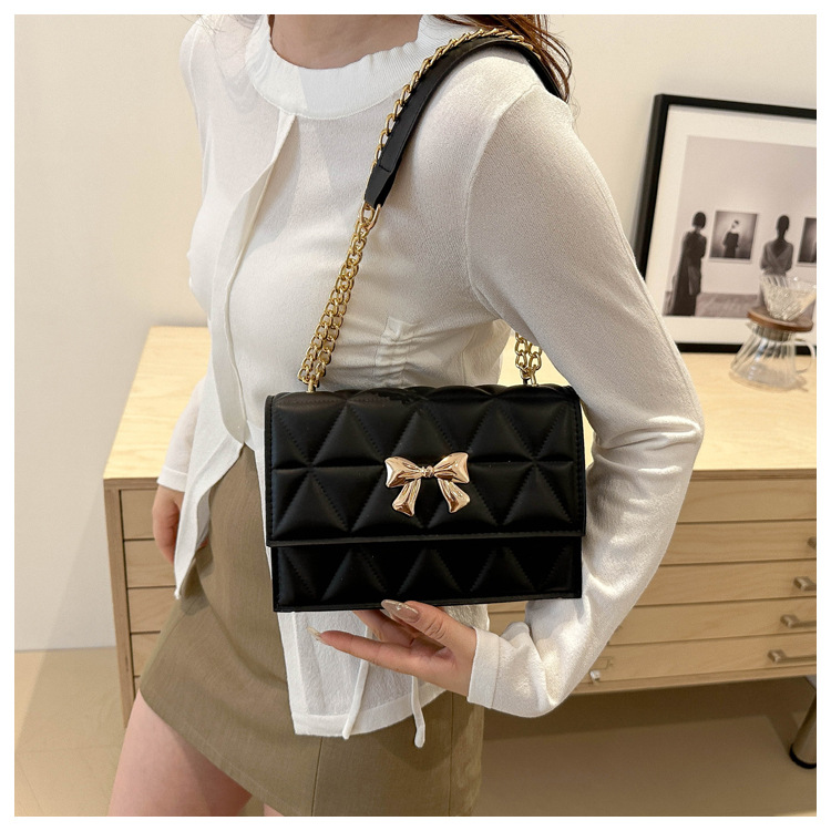 今年流行女包2024新款时尚蝴蝶结小方包菱格链条包洋气单肩斜挎包