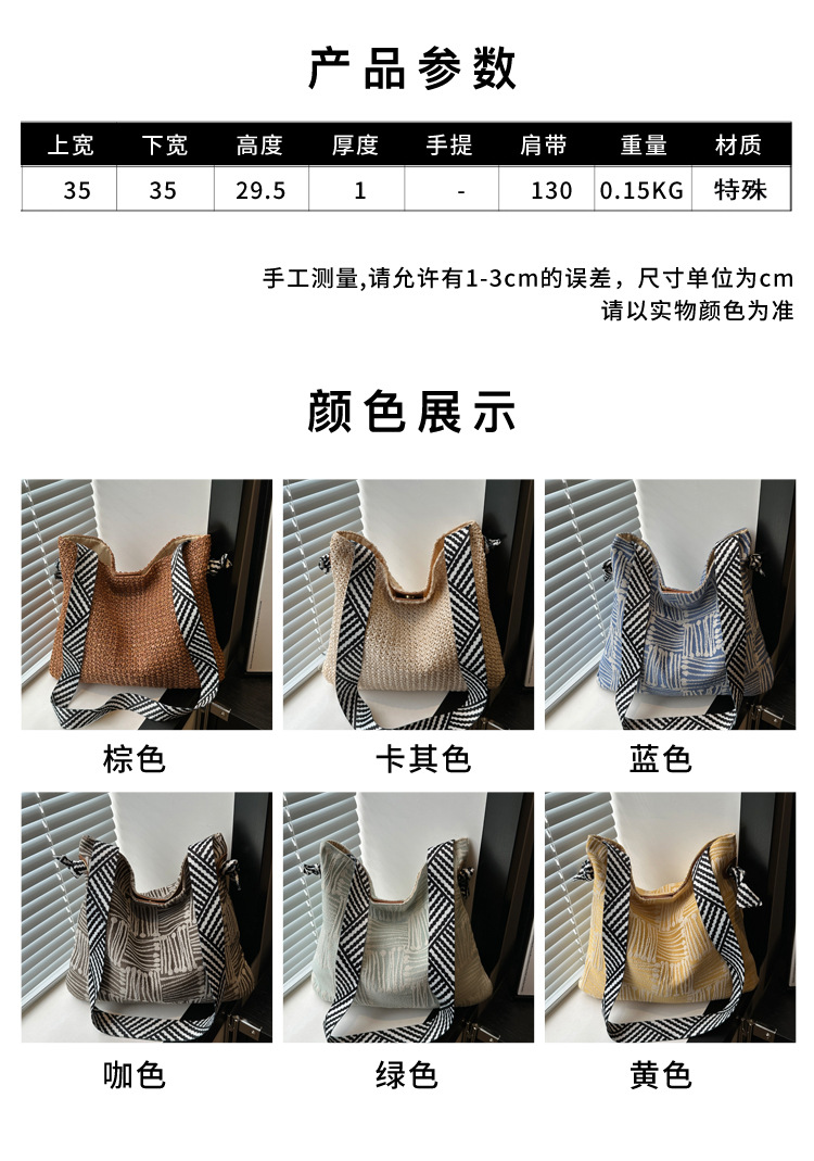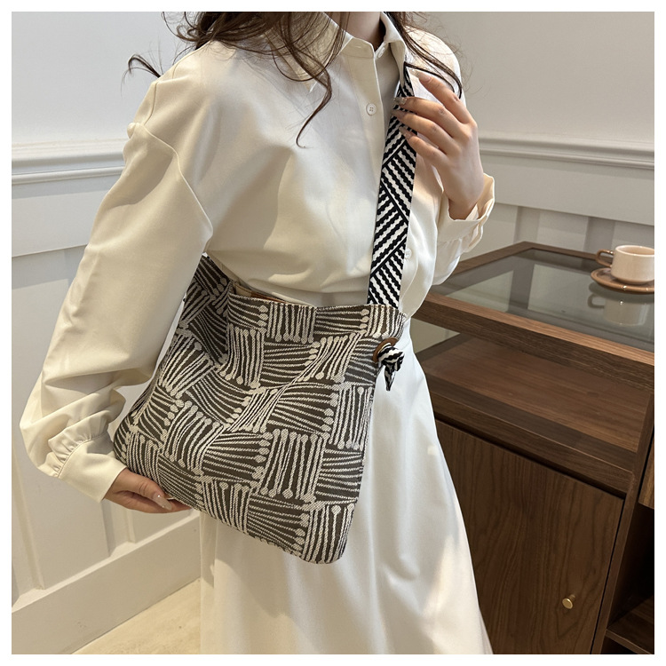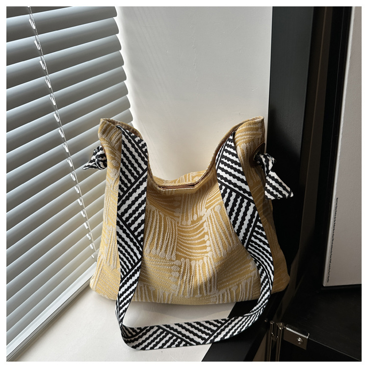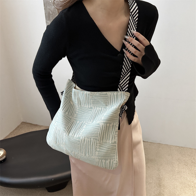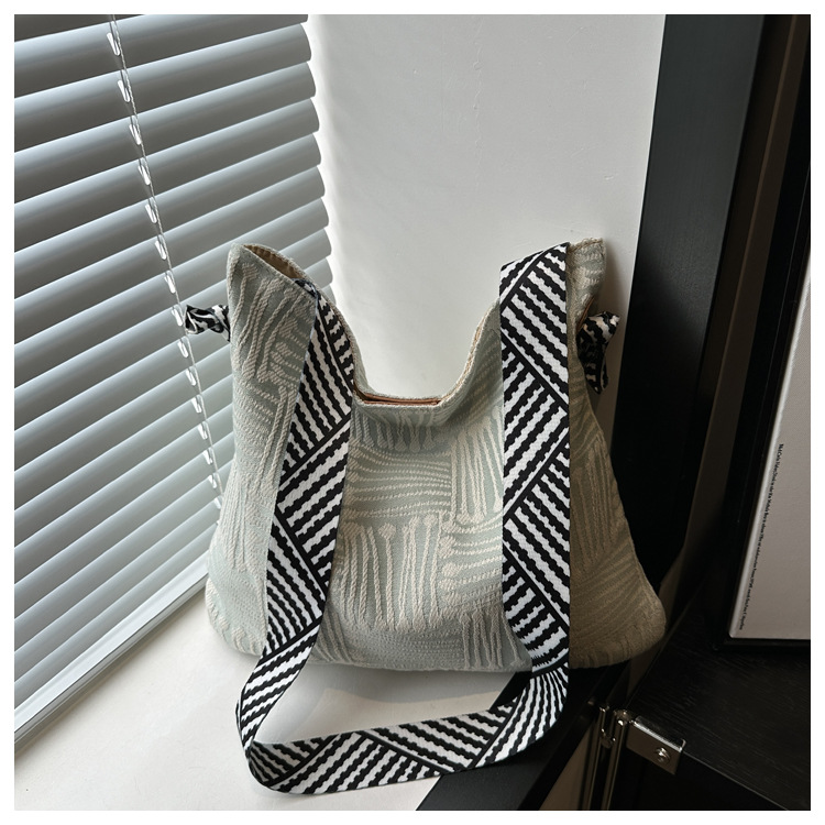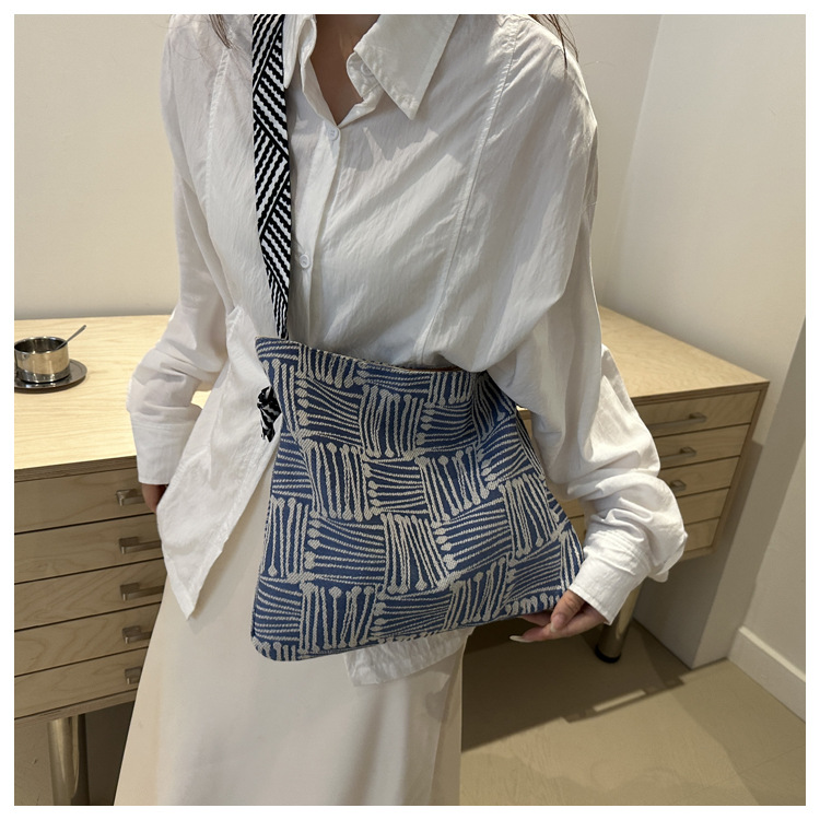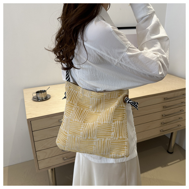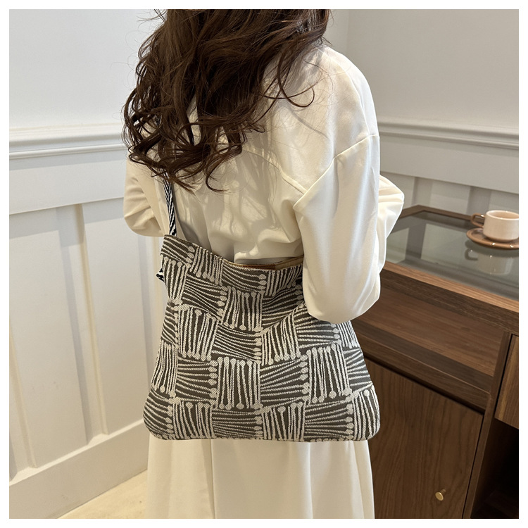 慵懒风宽肩带格子大容量斜挎帆布包2024新款潮时尚百搭托特包女