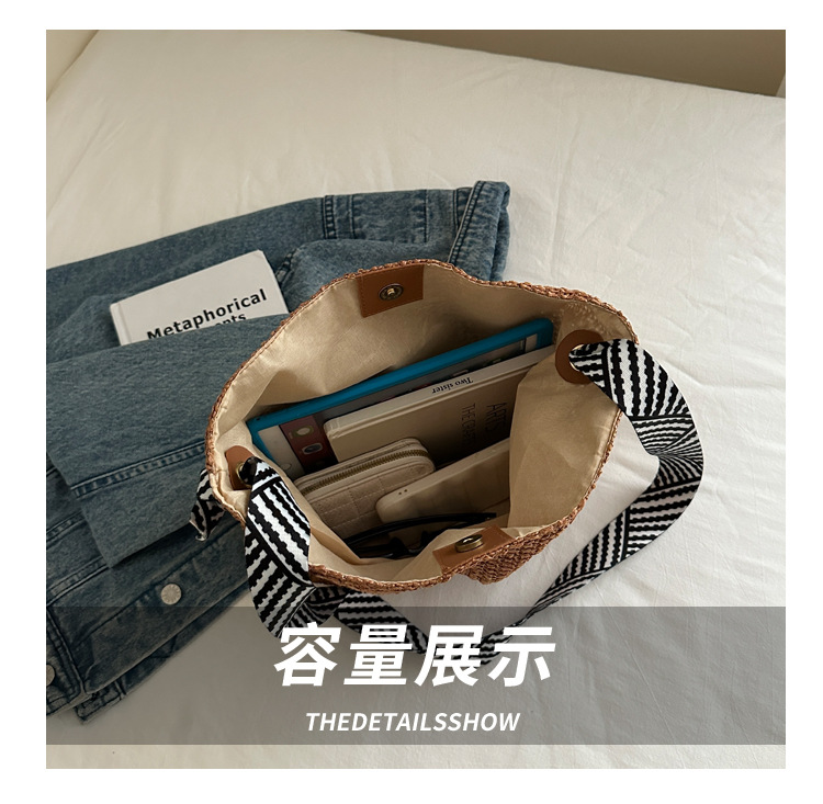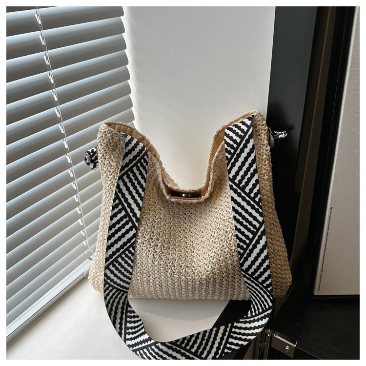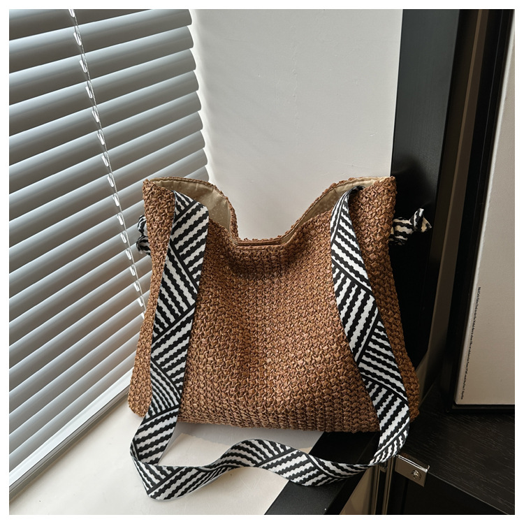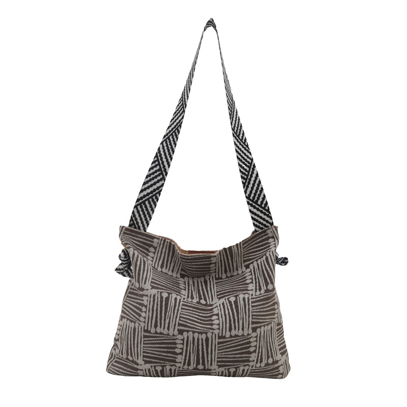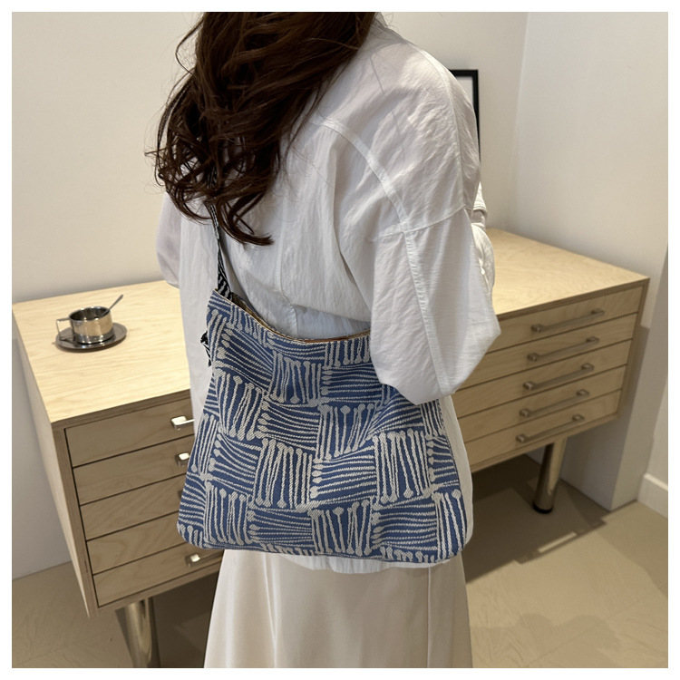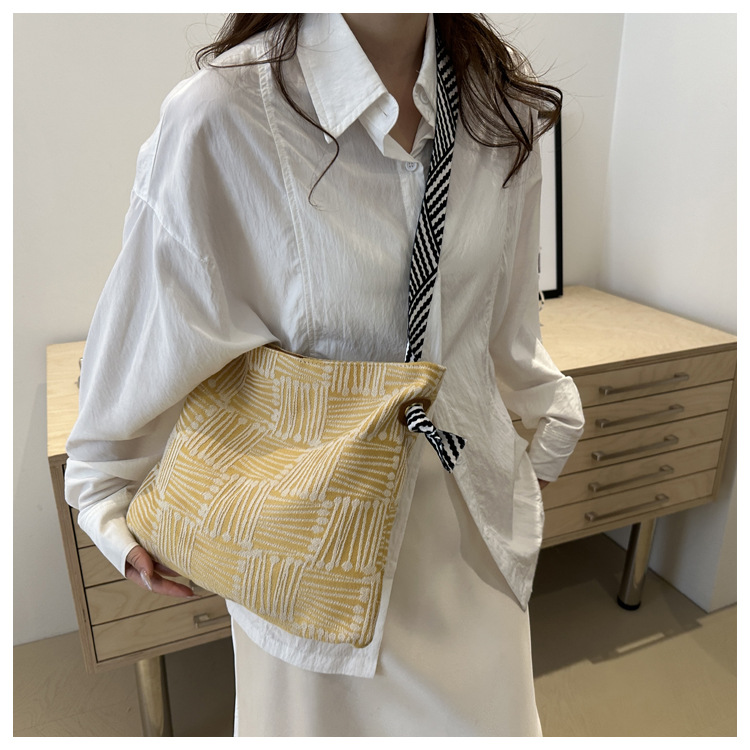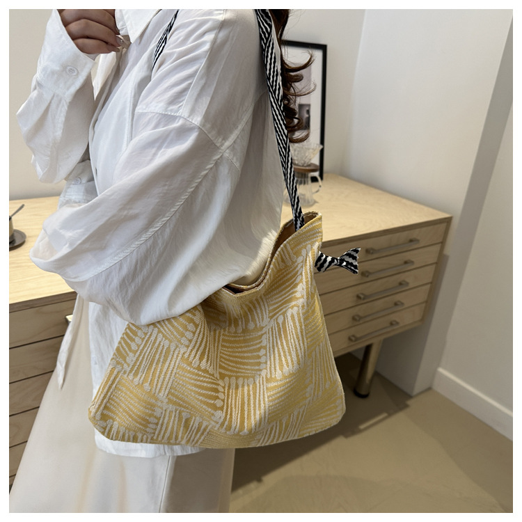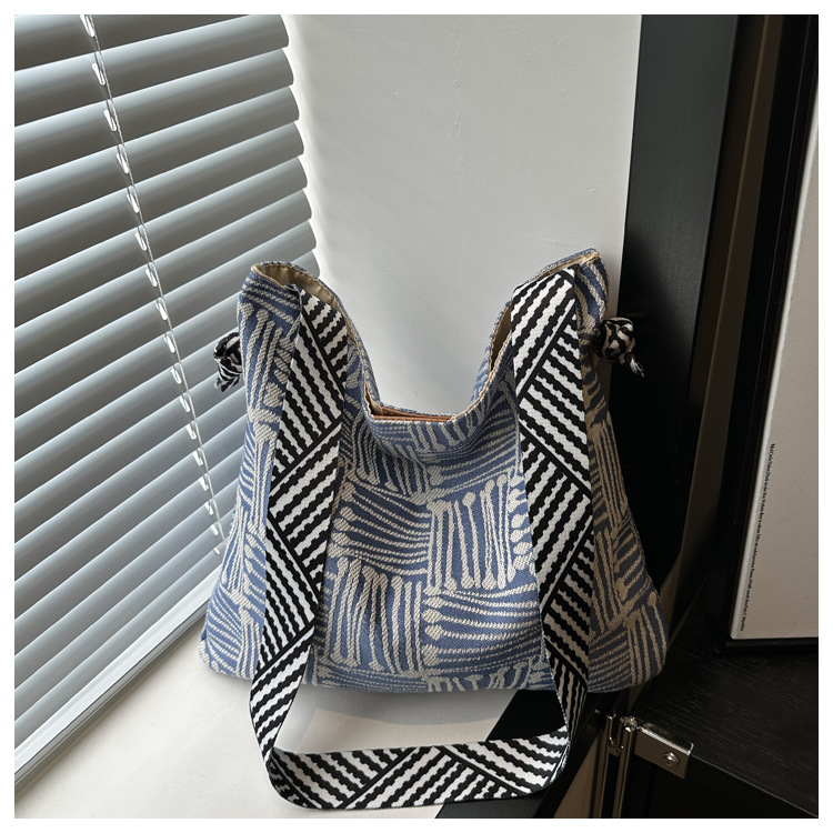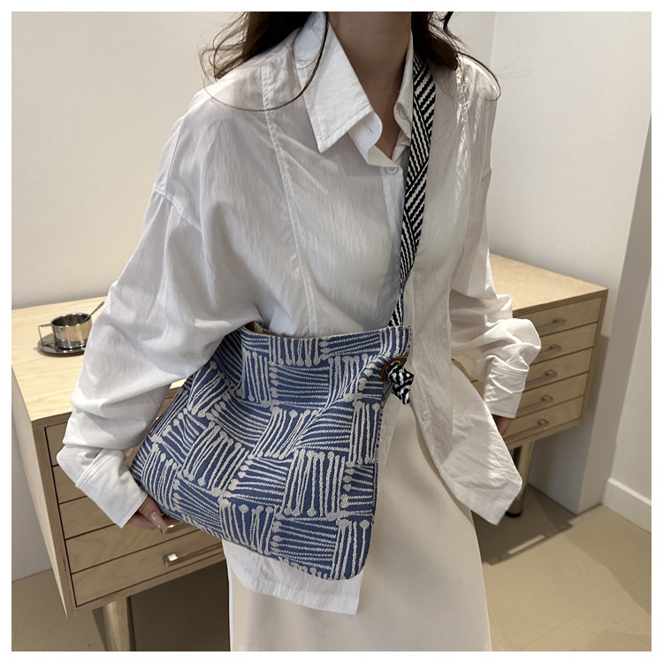 慵懒风宽肩带格子大容量斜挎帆布包2024新款潮时尚百搭托特包女