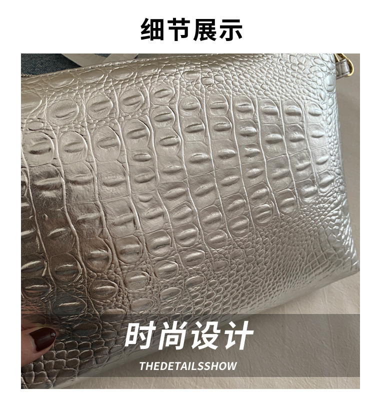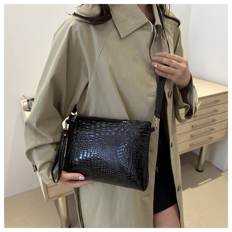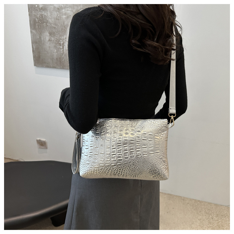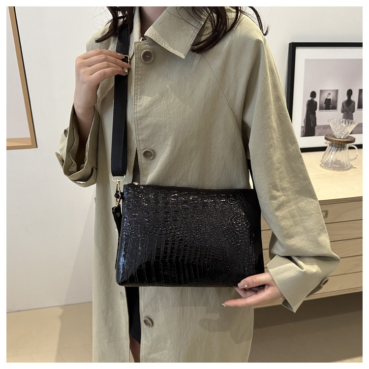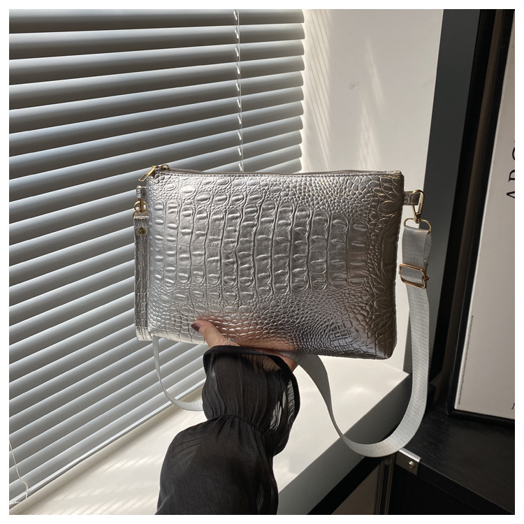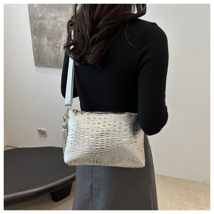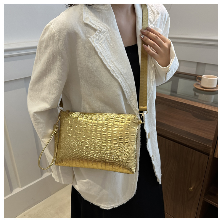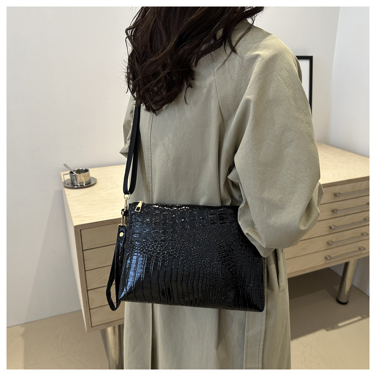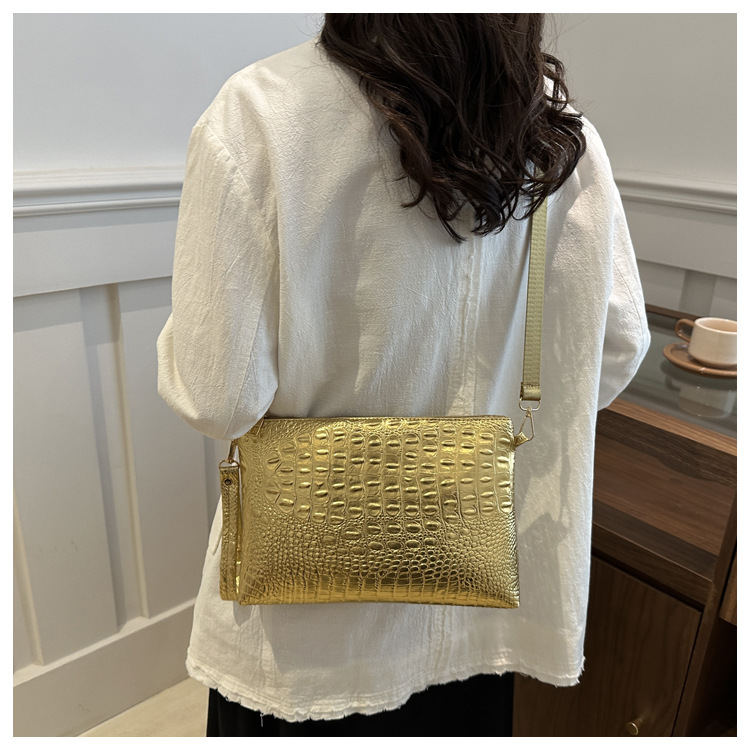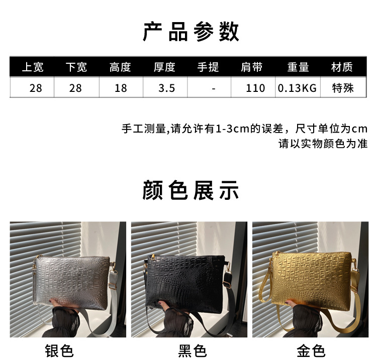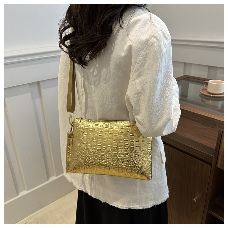 休闲大容量鳄鱼纹信封包2024新款时尚纯色压痕单肩斜挎手拿小方包