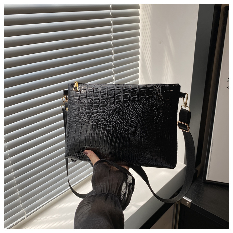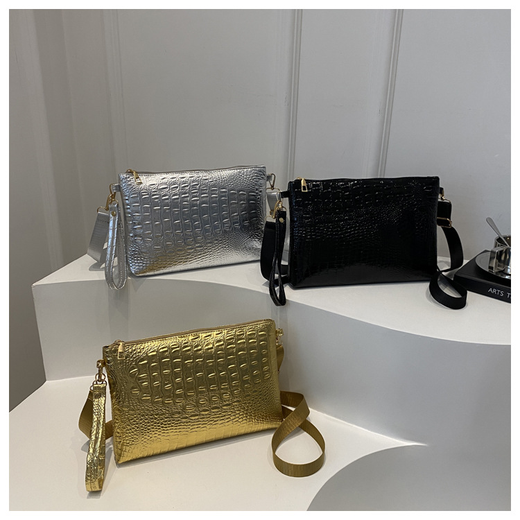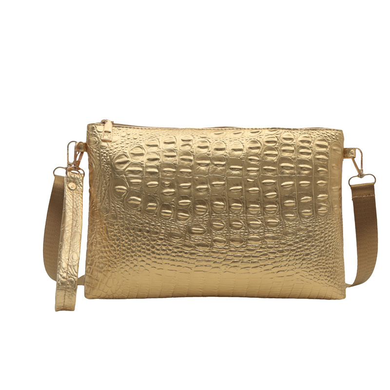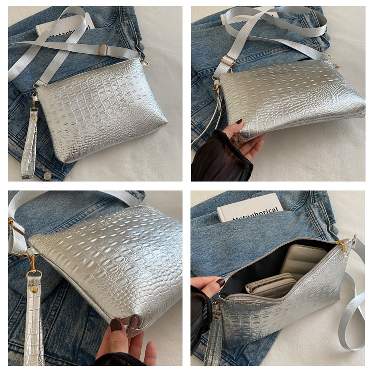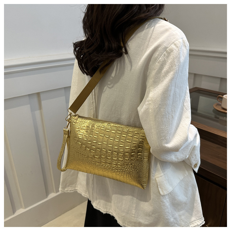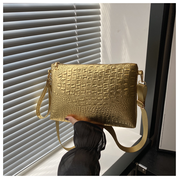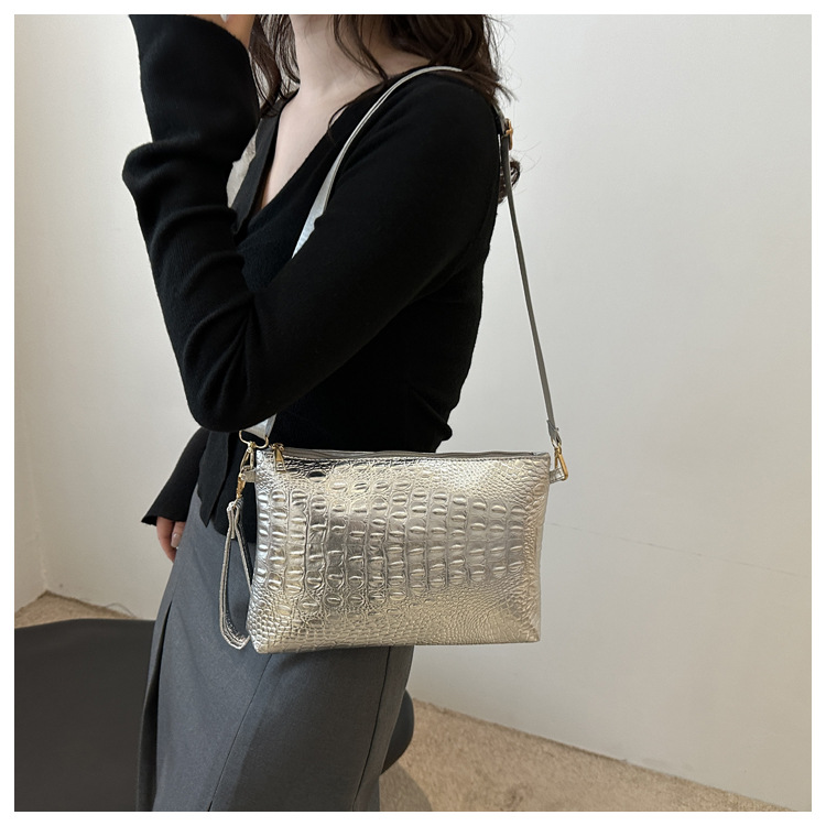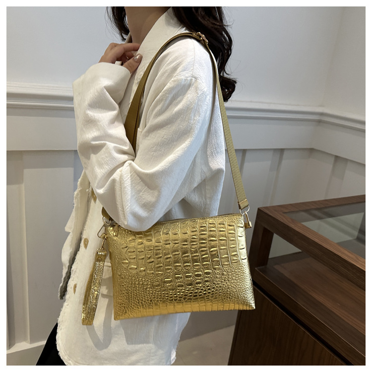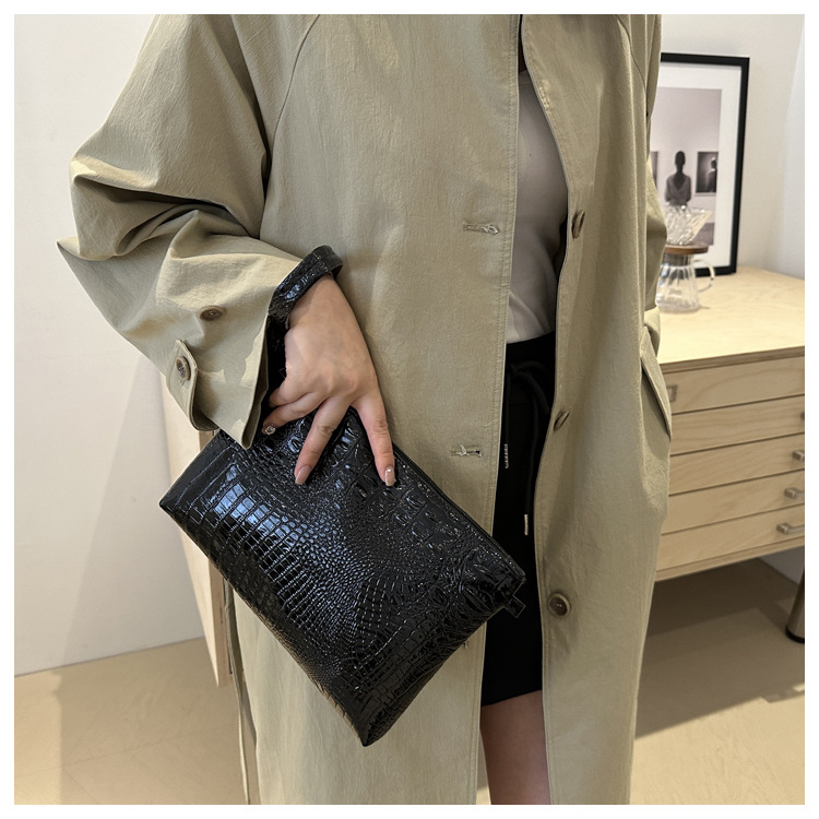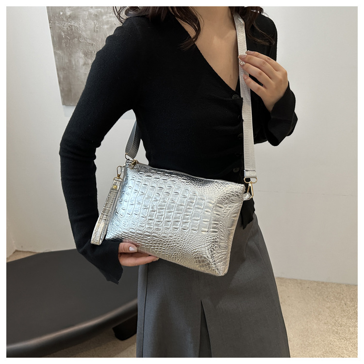 休闲大容量鳄鱼纹信封包2024新款时尚纯色压痕单肩斜挎手拿小方包