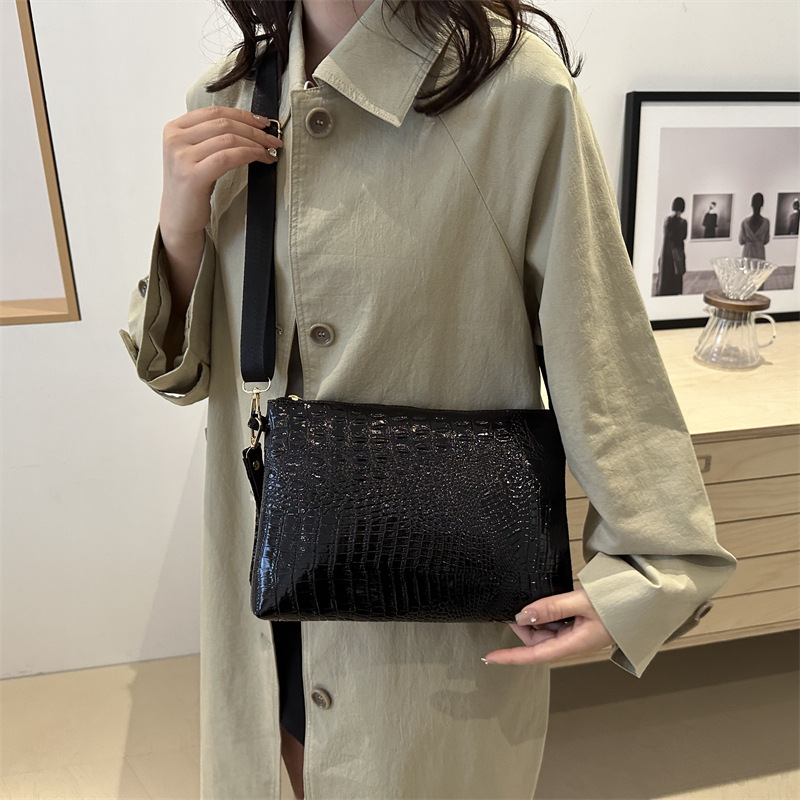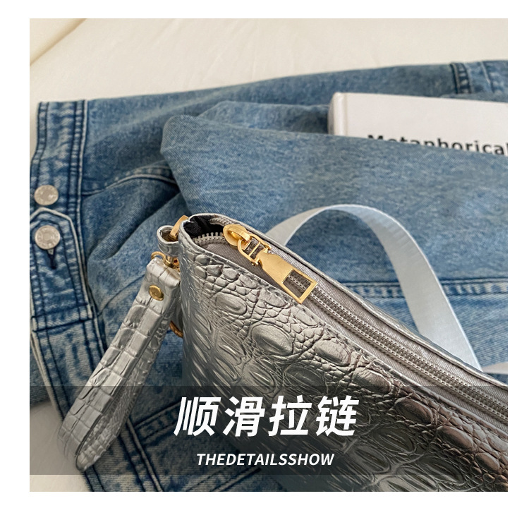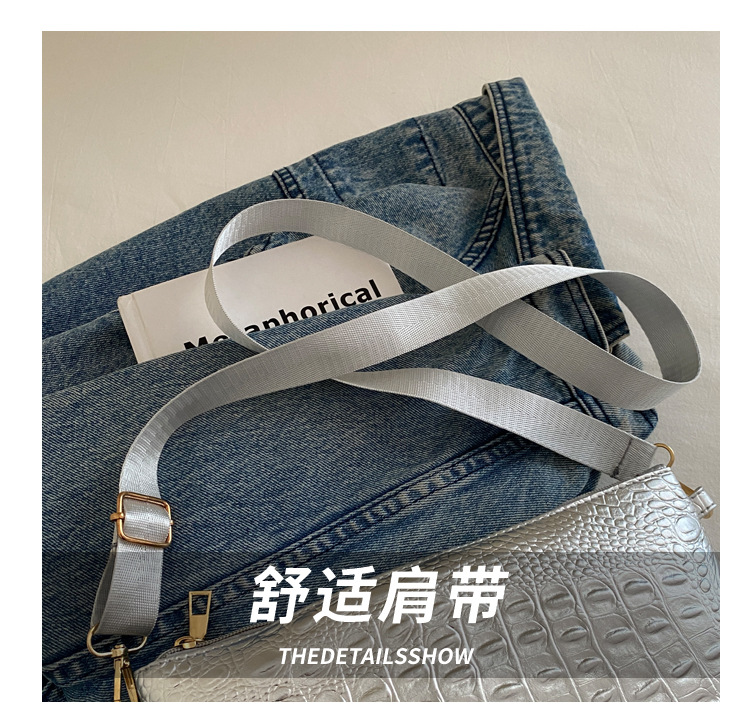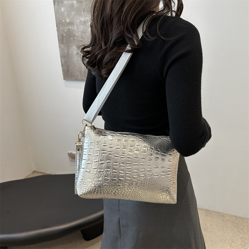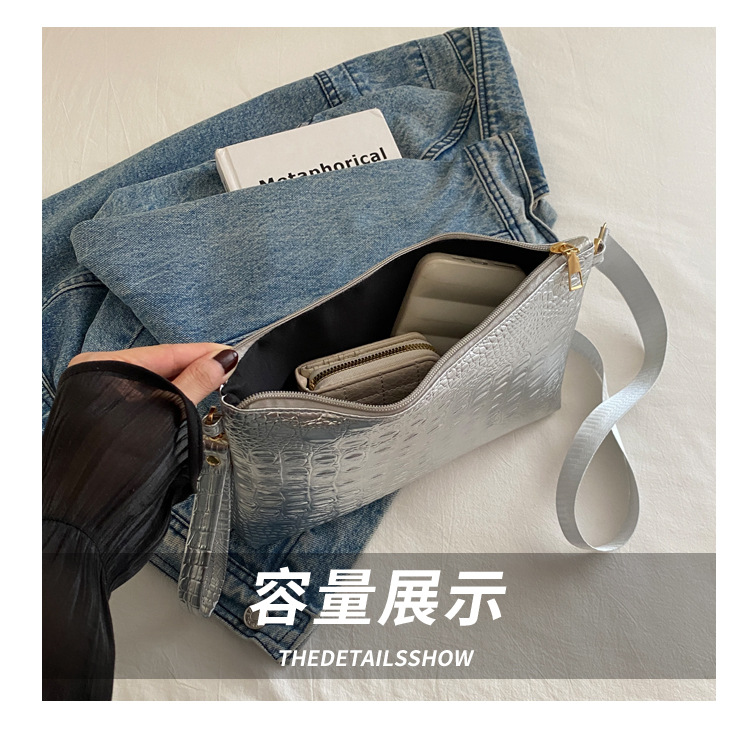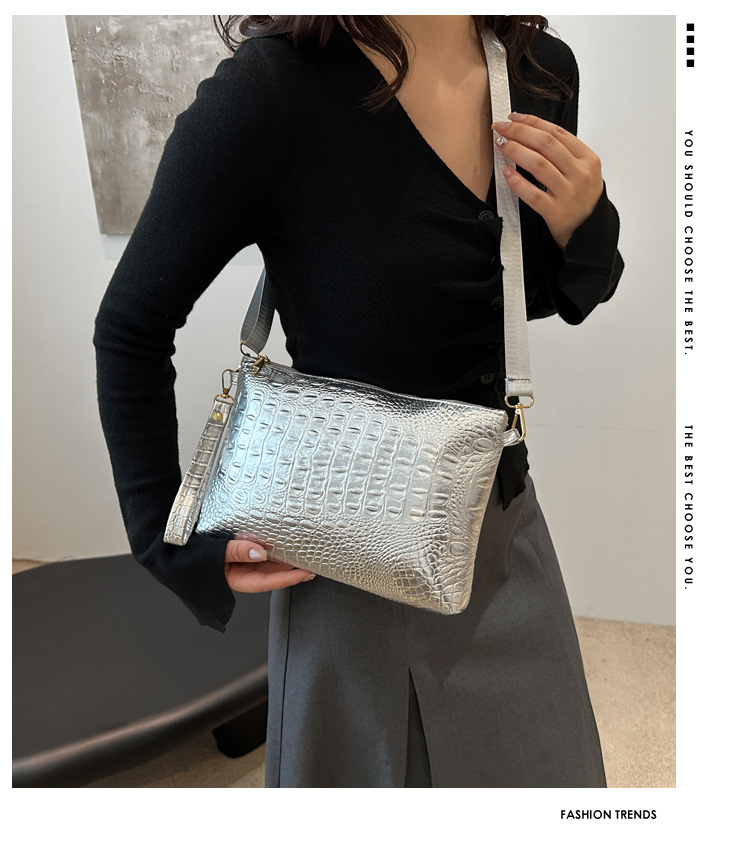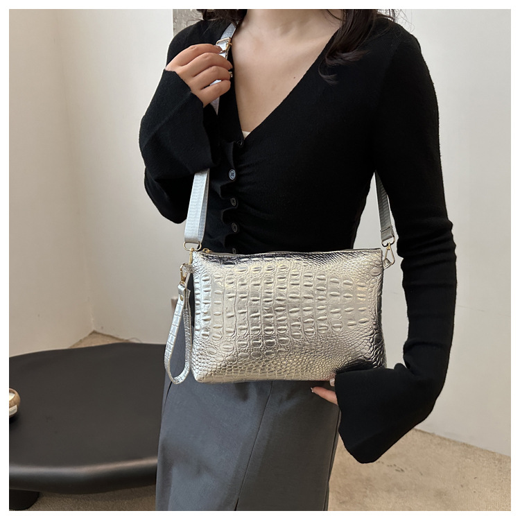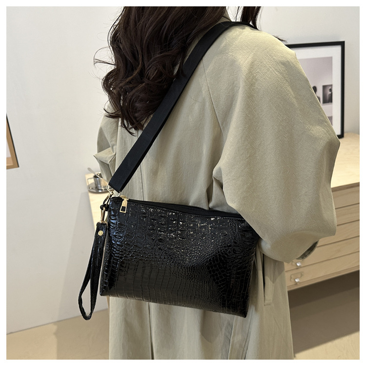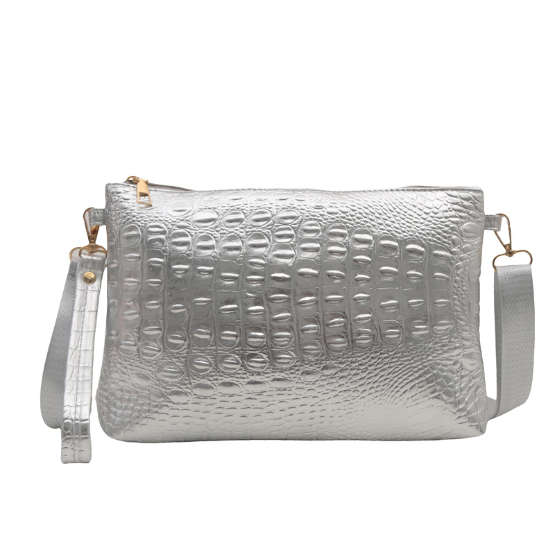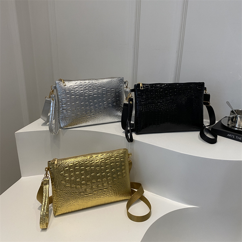 休闲大容量鳄鱼纹信封包2024新款时尚纯色压痕单肩斜挎手拿小方包