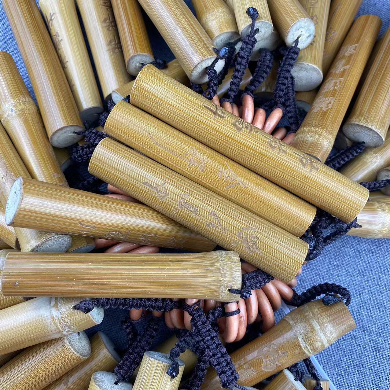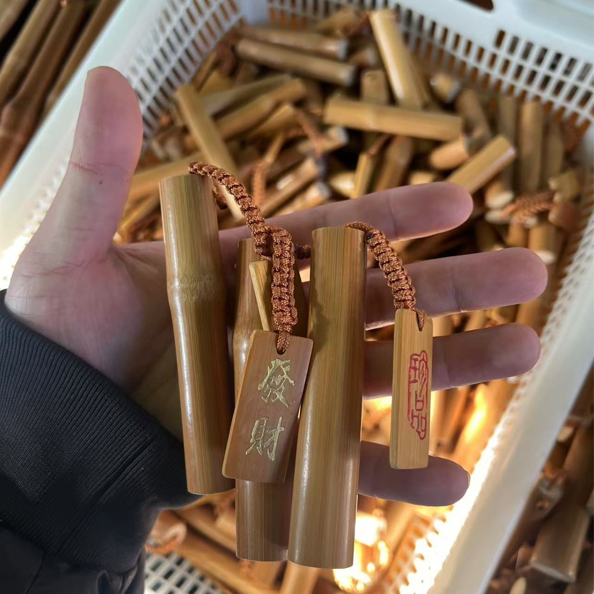 实心竹手把件刻字红皮老料纯文玩老玉竹挂件实心玉竹高密度