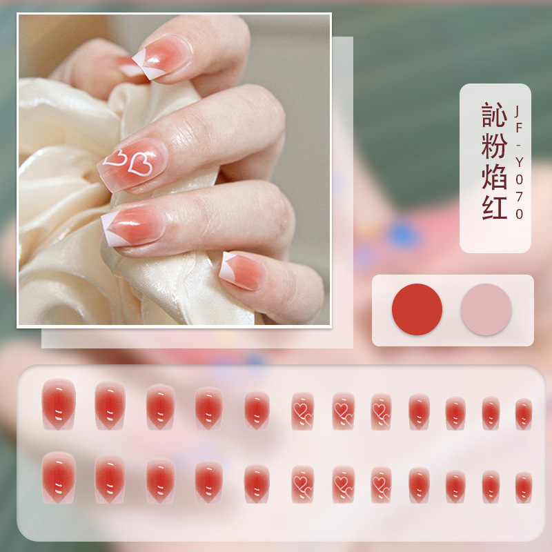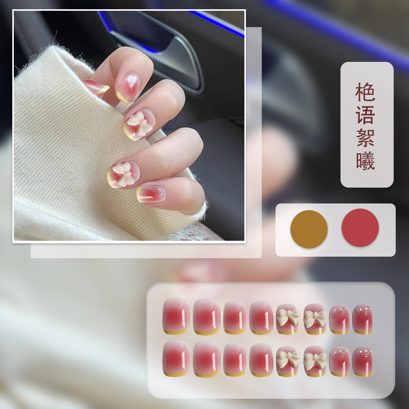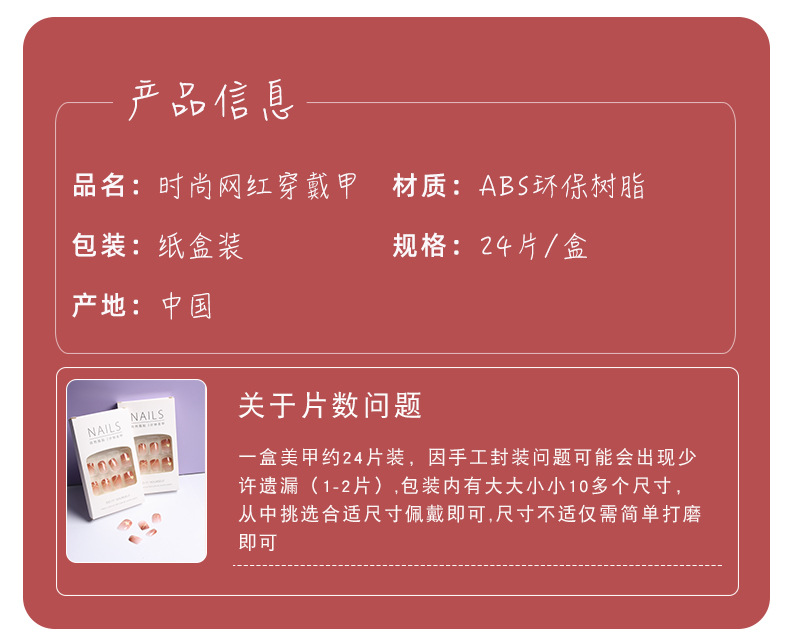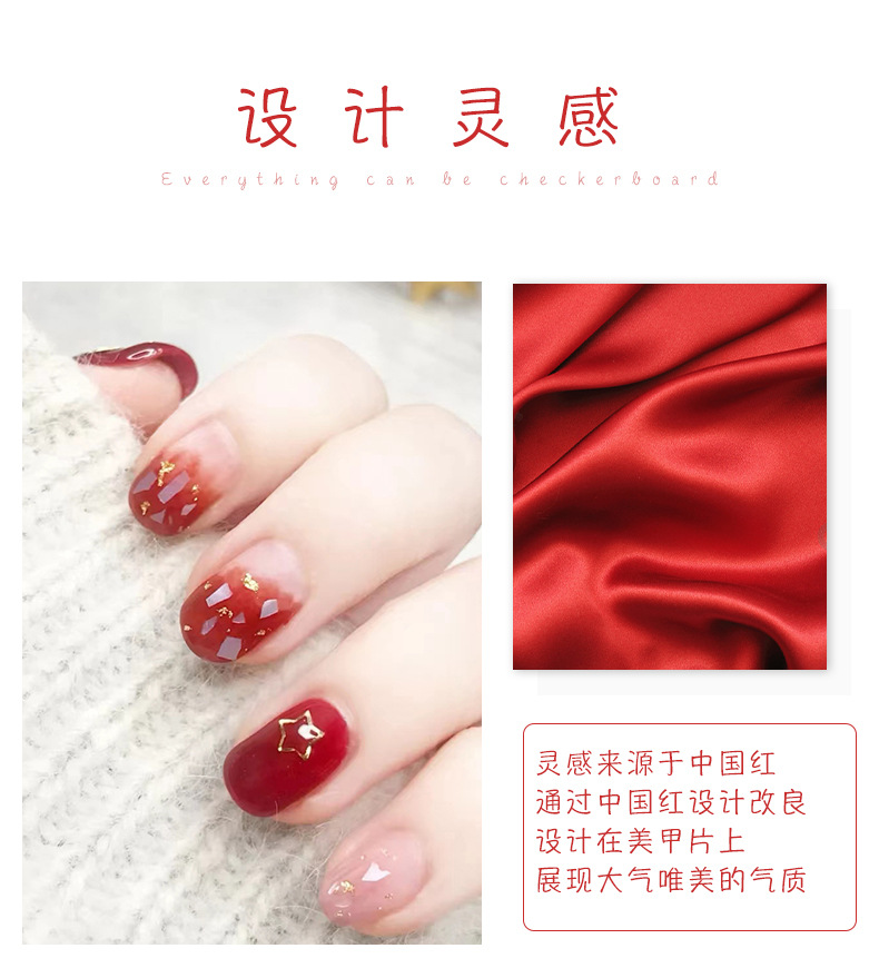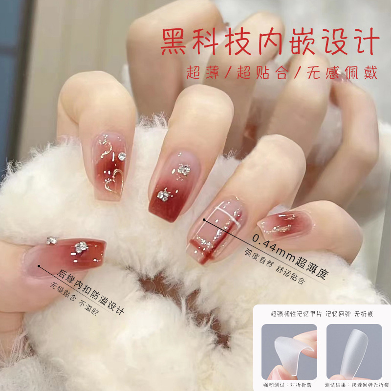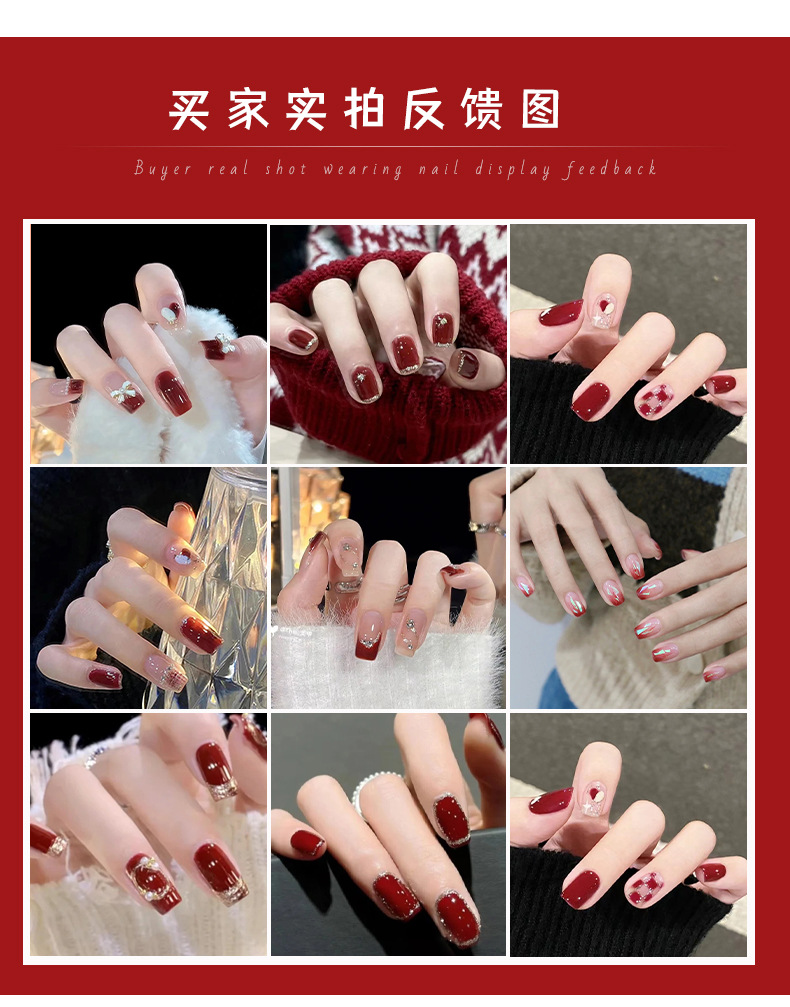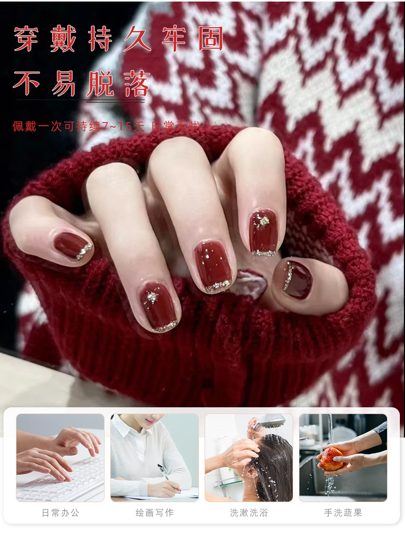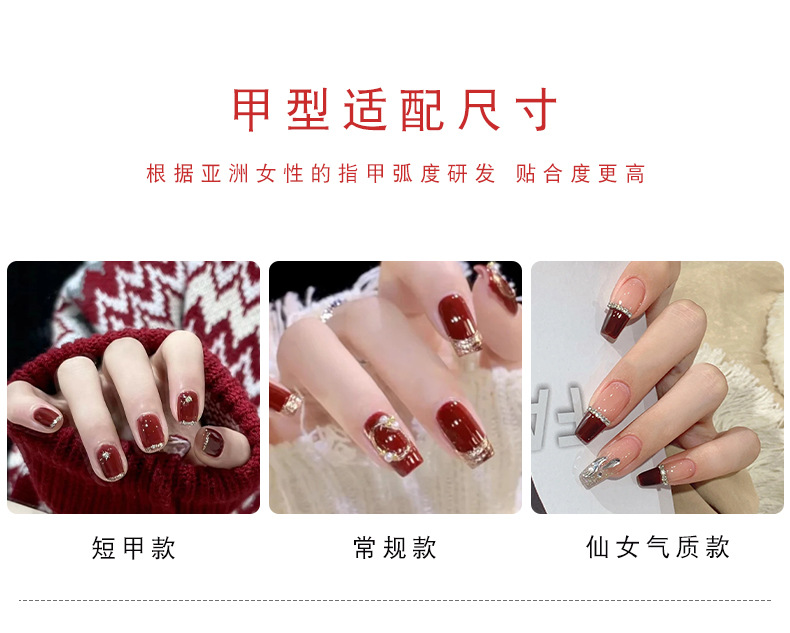 穿戴甲高级感假指甲片红色法式美甲甲片穿戴指甲贴成品批发假指甲
