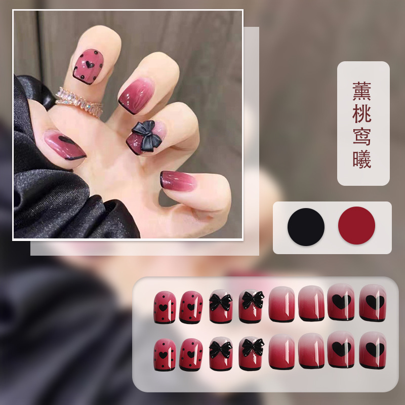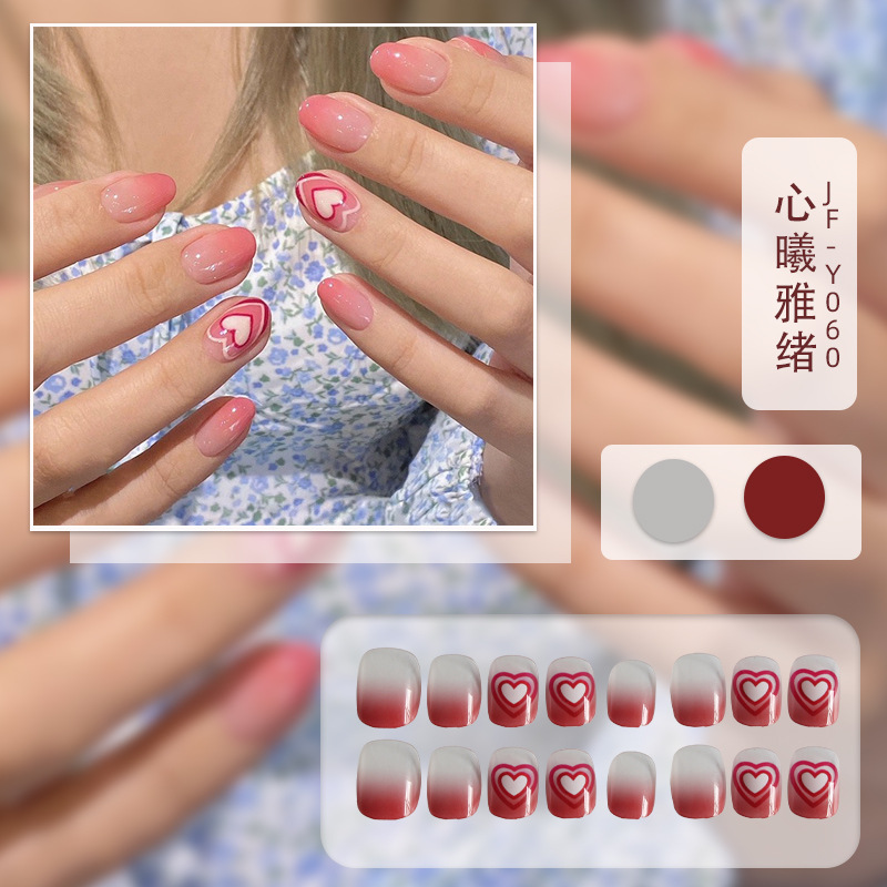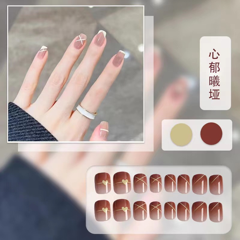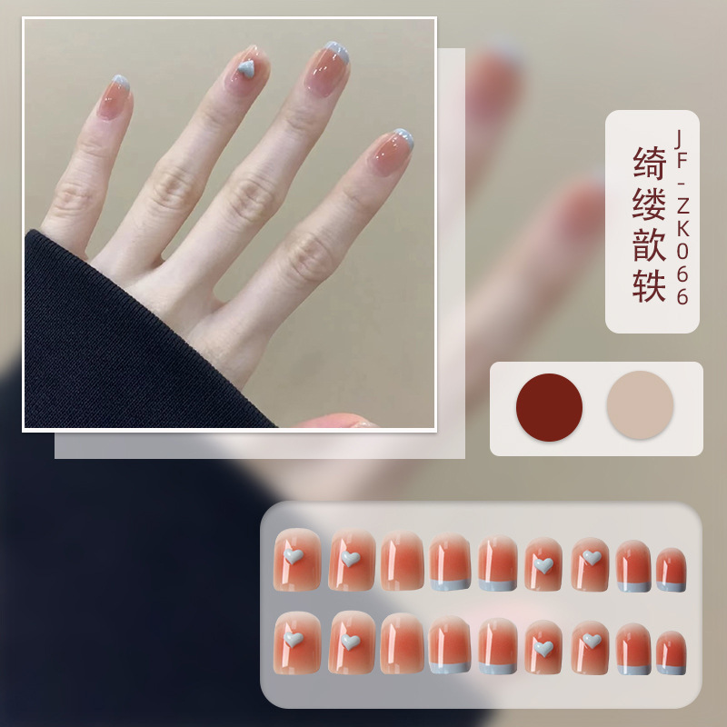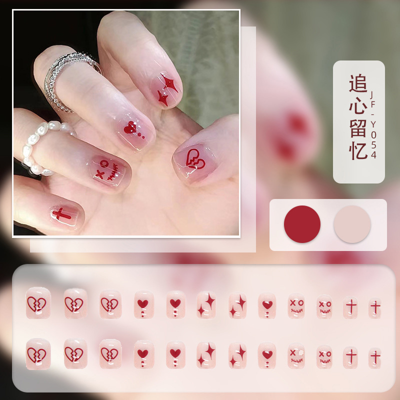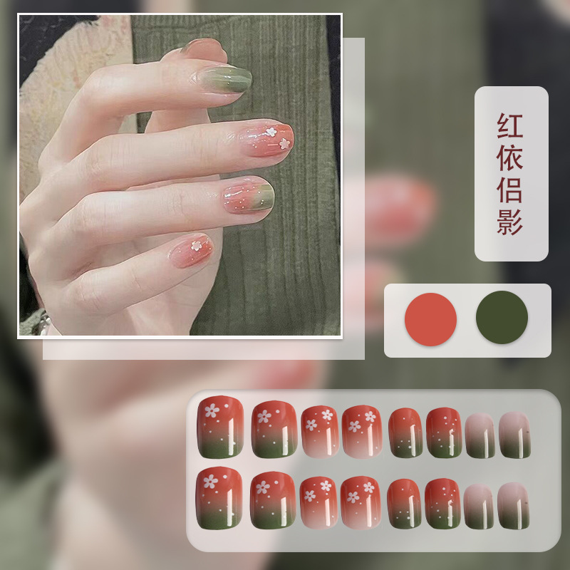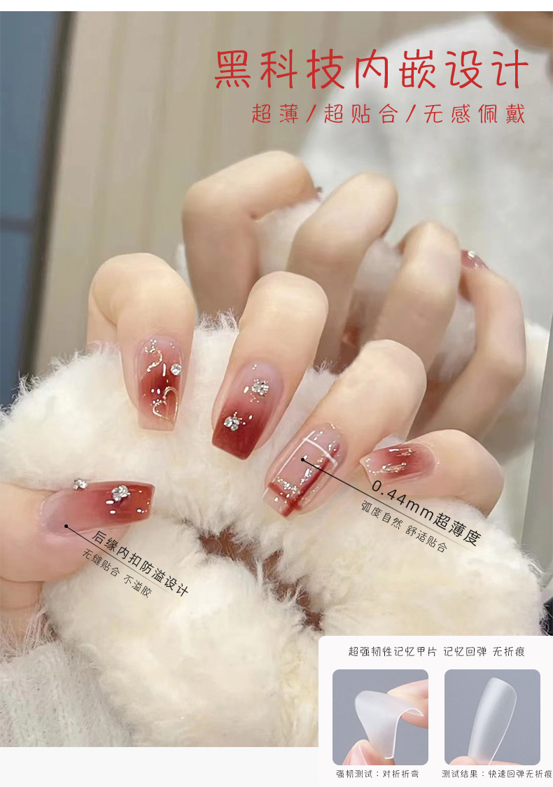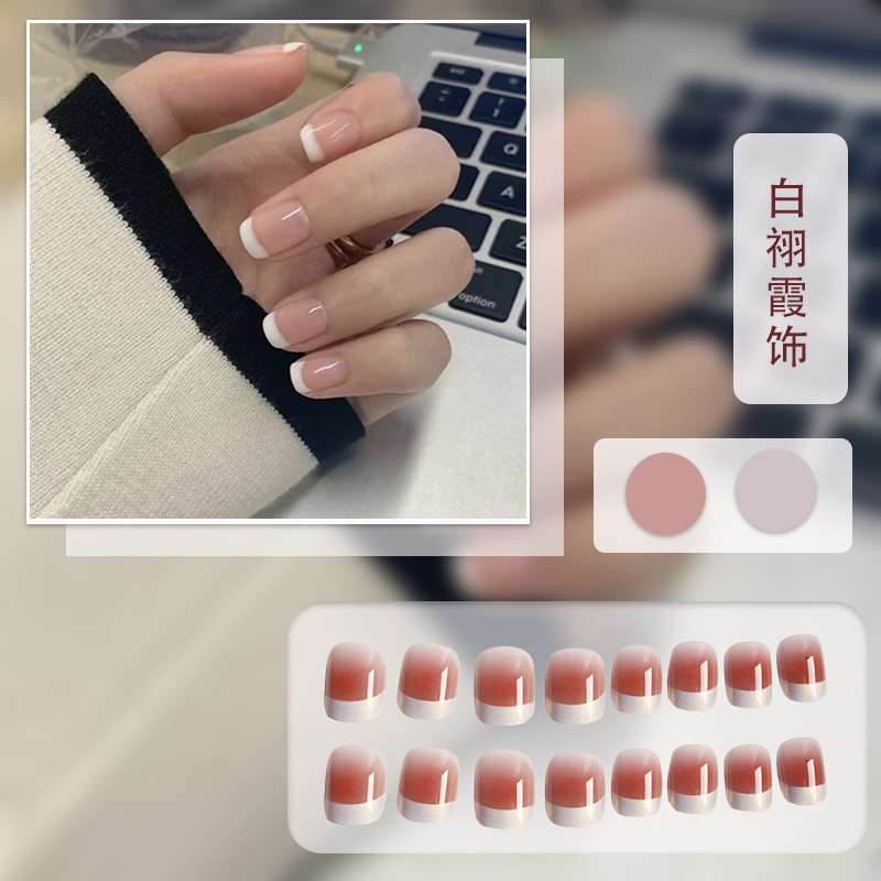 穿戴甲高级感假指甲片红色法式美甲甲片穿戴指甲贴成品批发假指甲