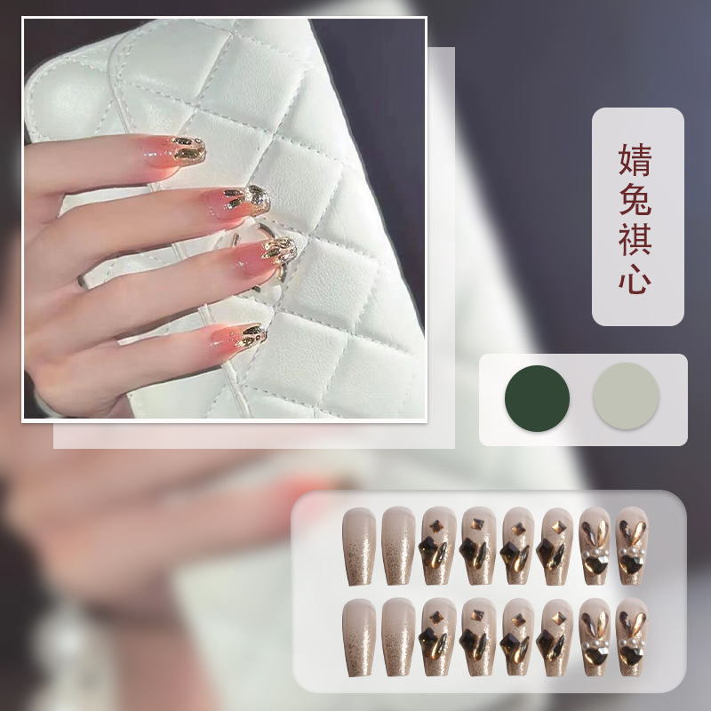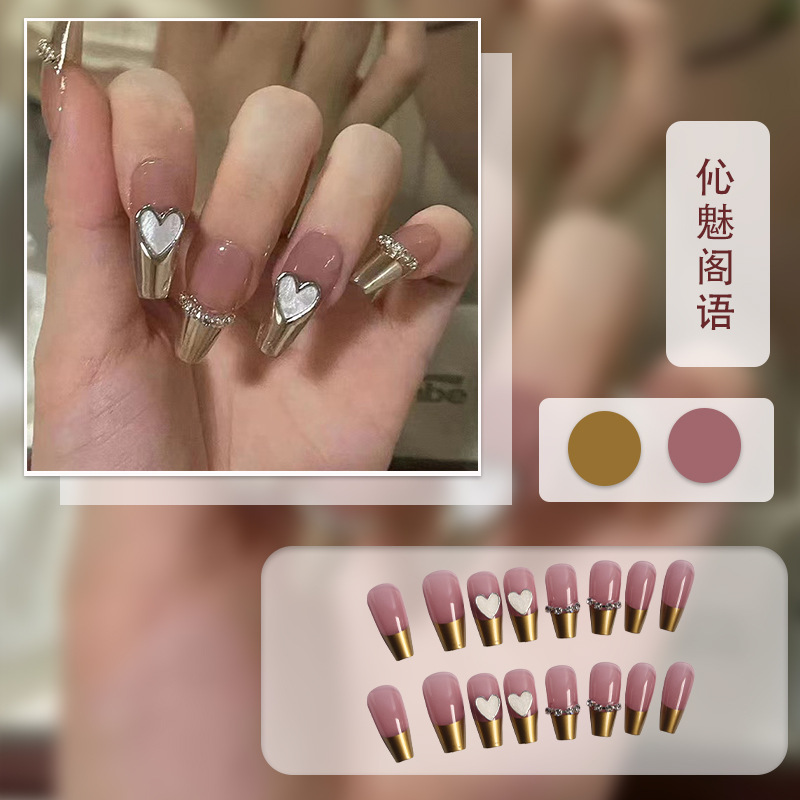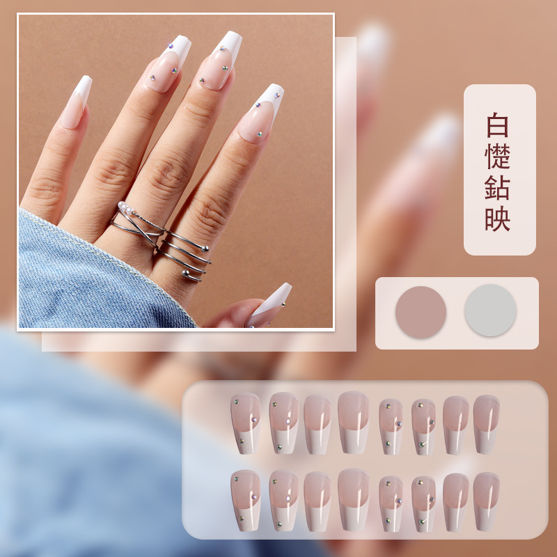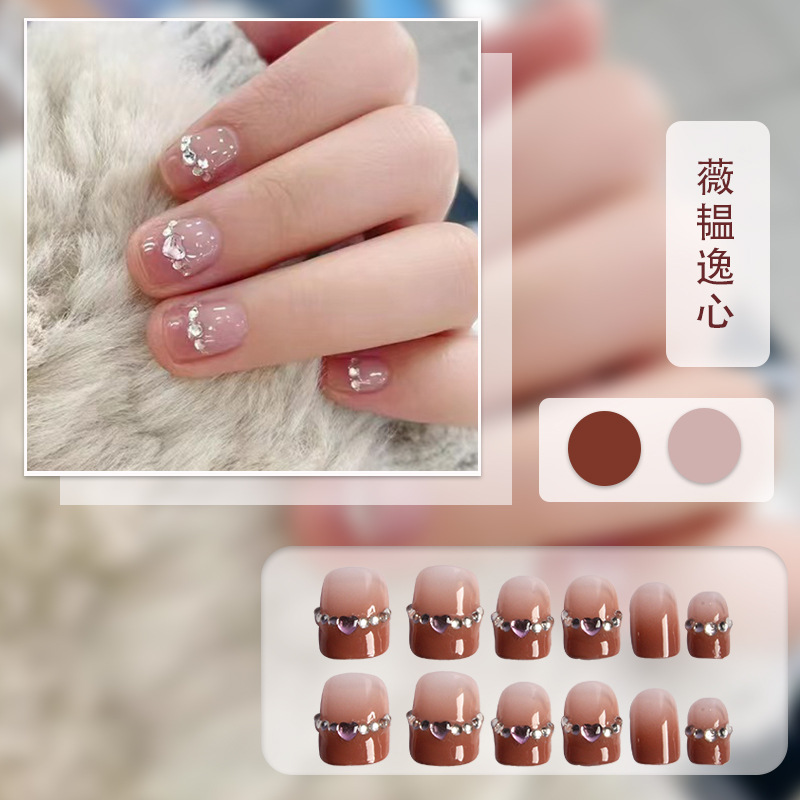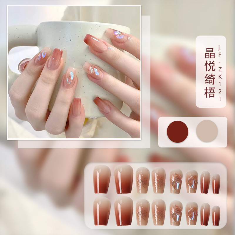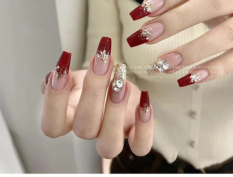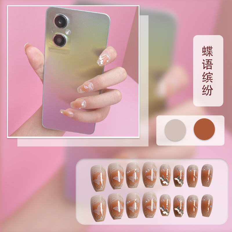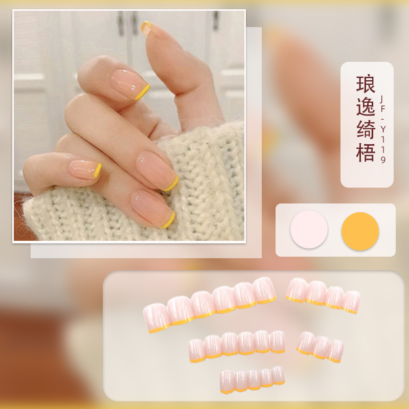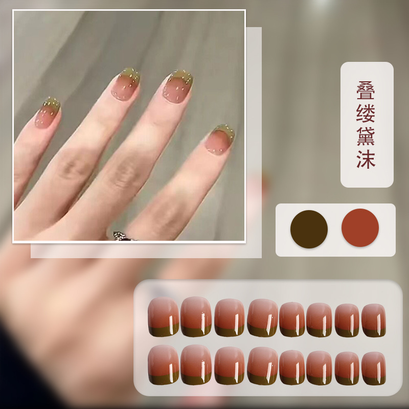 穿戴甲高级感假指甲片红色法式美甲甲片穿戴指甲贴成品批发假指甲