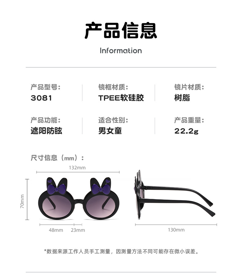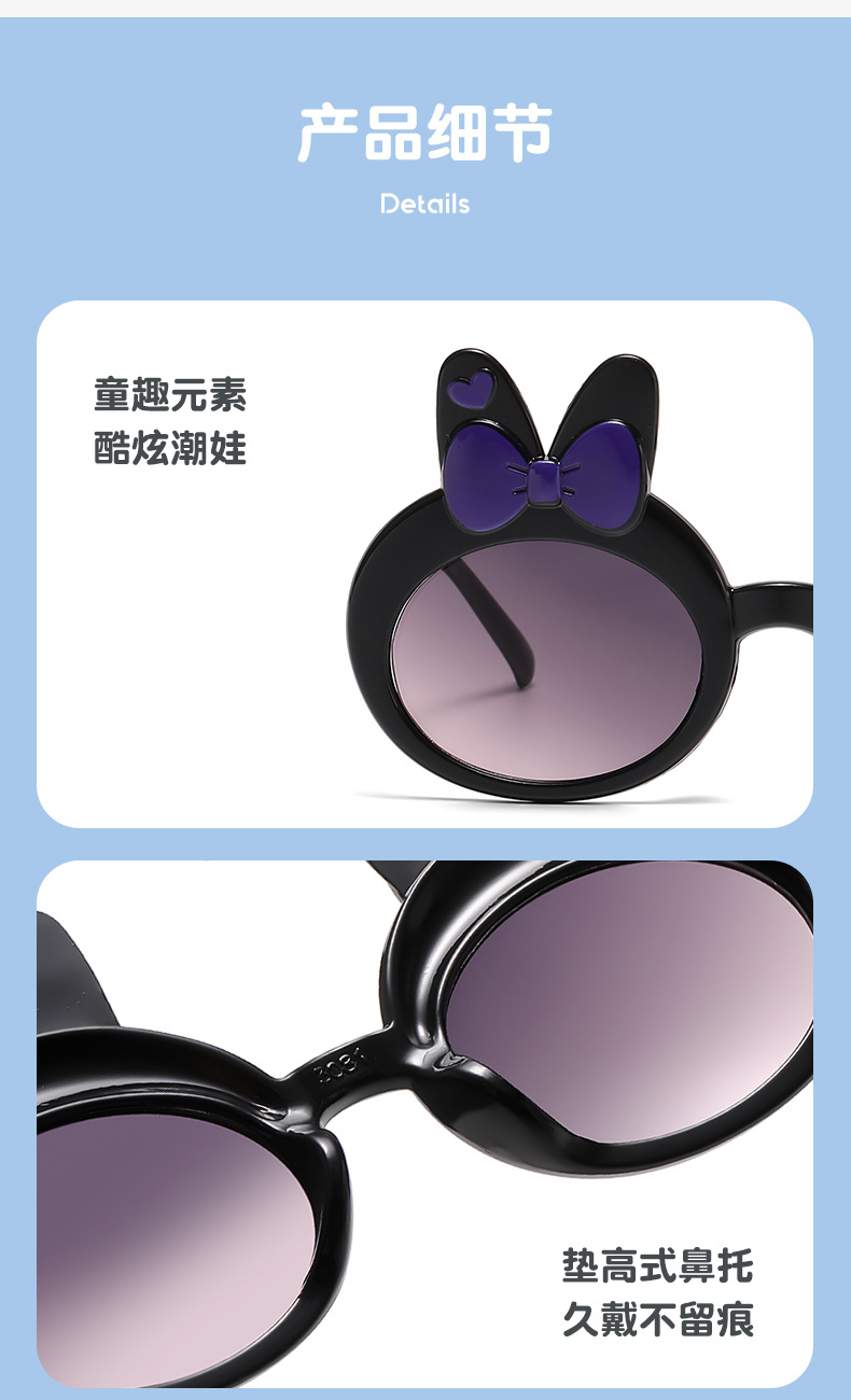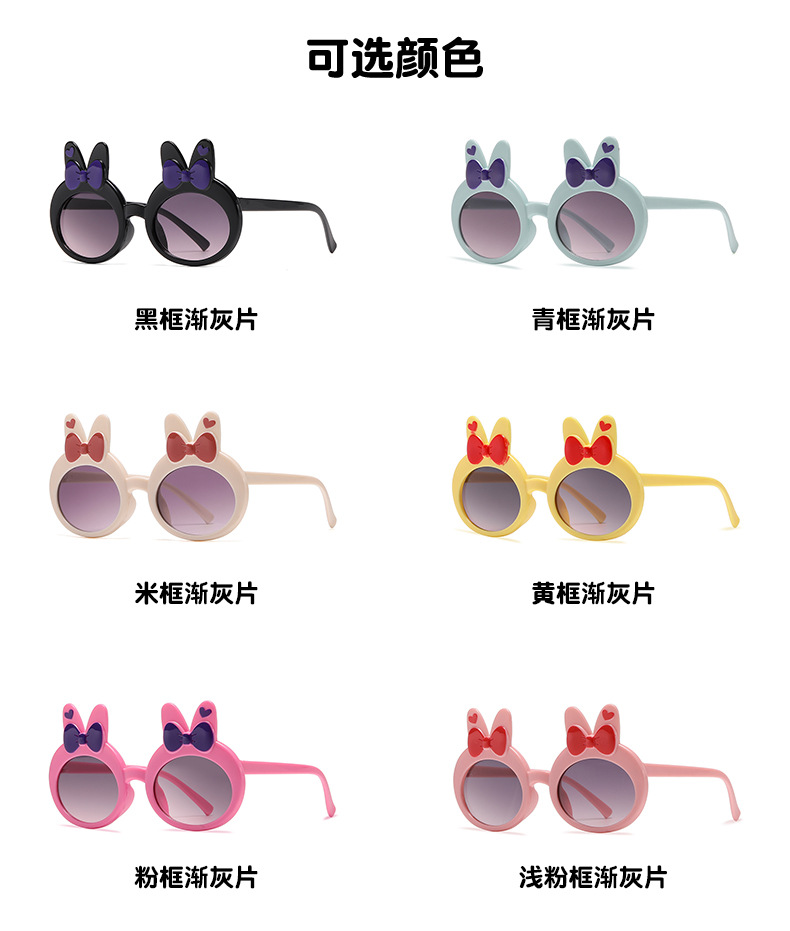 3081儿童兔耳朵蝴蝶结太阳镜女新款韩版宝宝可爱墨镜时尚拍照眼镜
