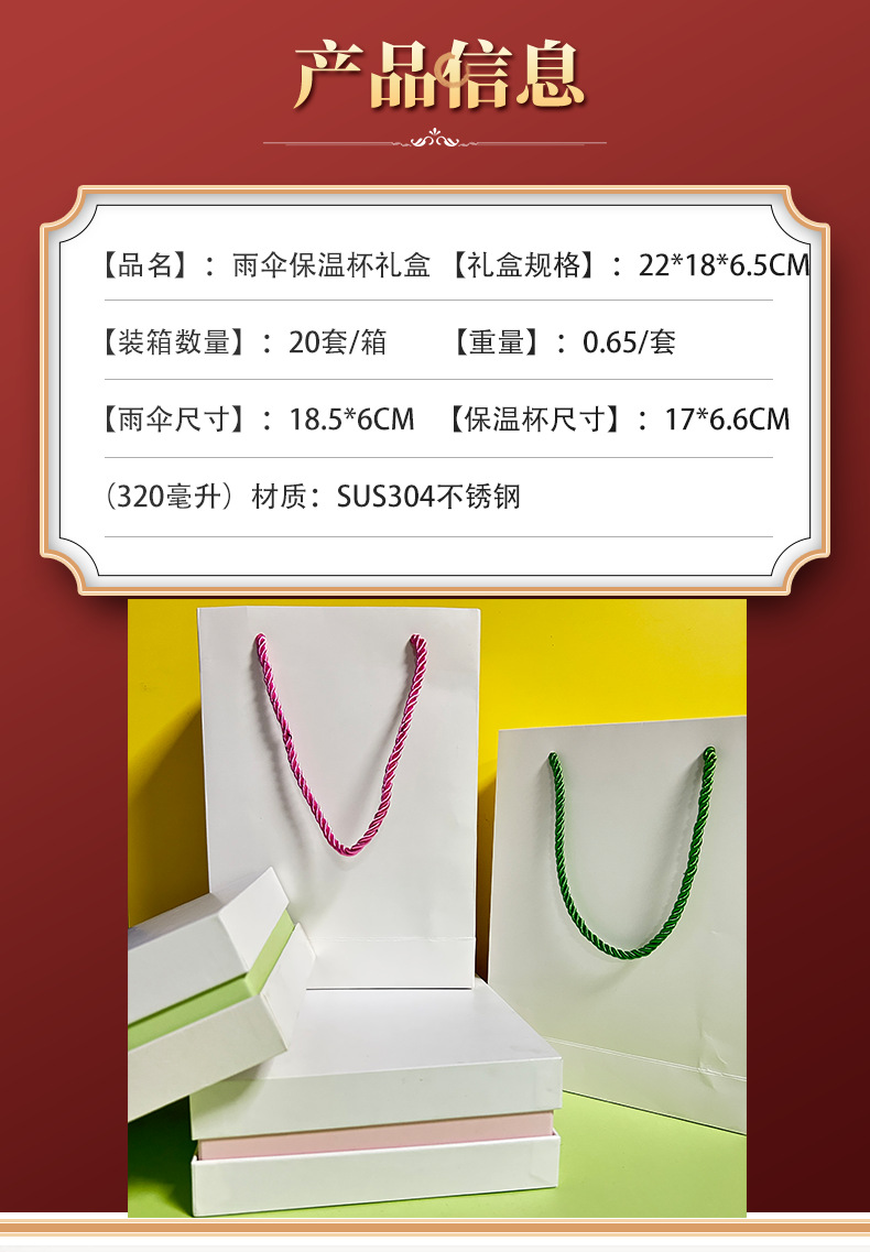 | thick umbrella +304 thermos cup + gift box + gift bag(加厚雨伞+304保温杯+礼盒+礼袋) | USD $0.0 | 965 set available |