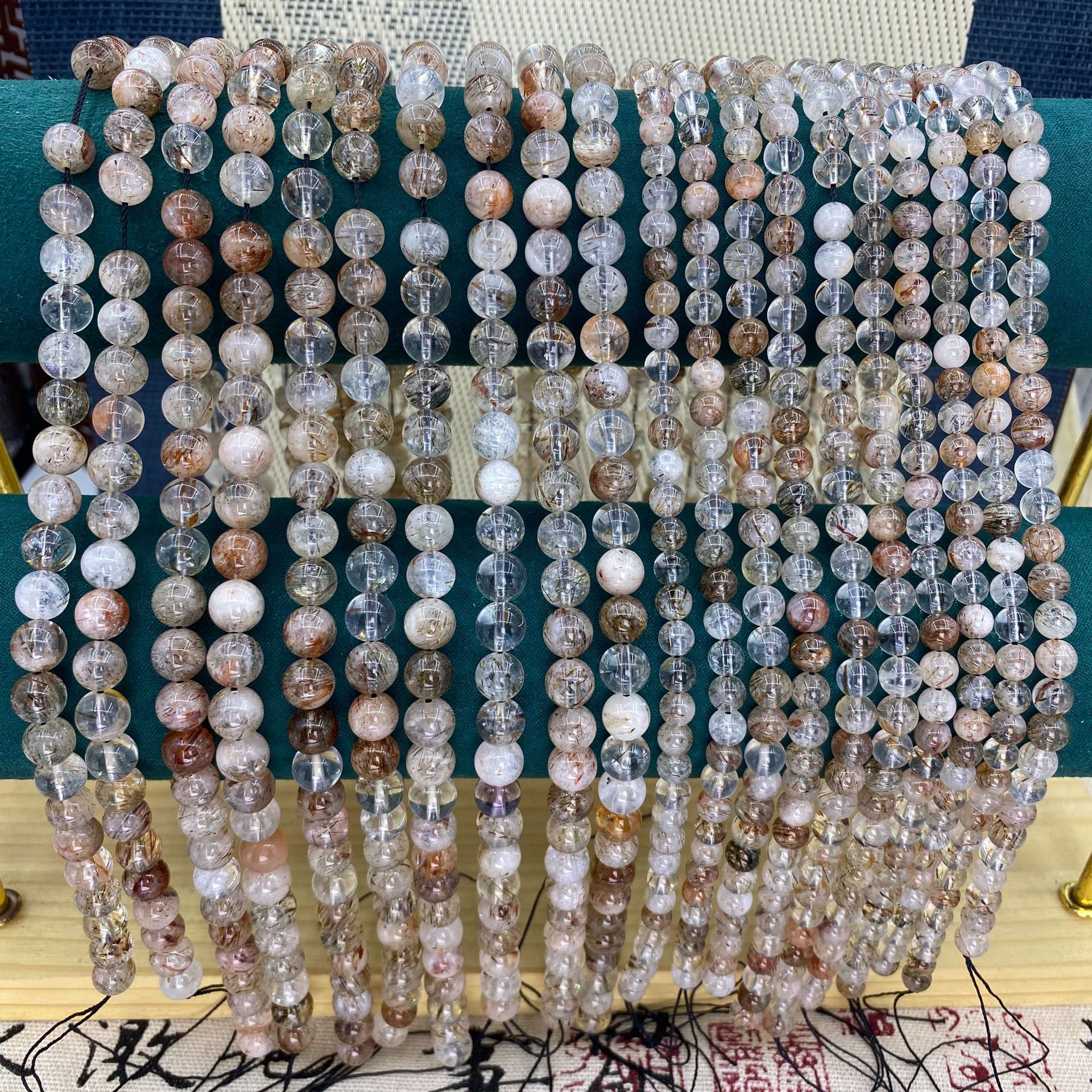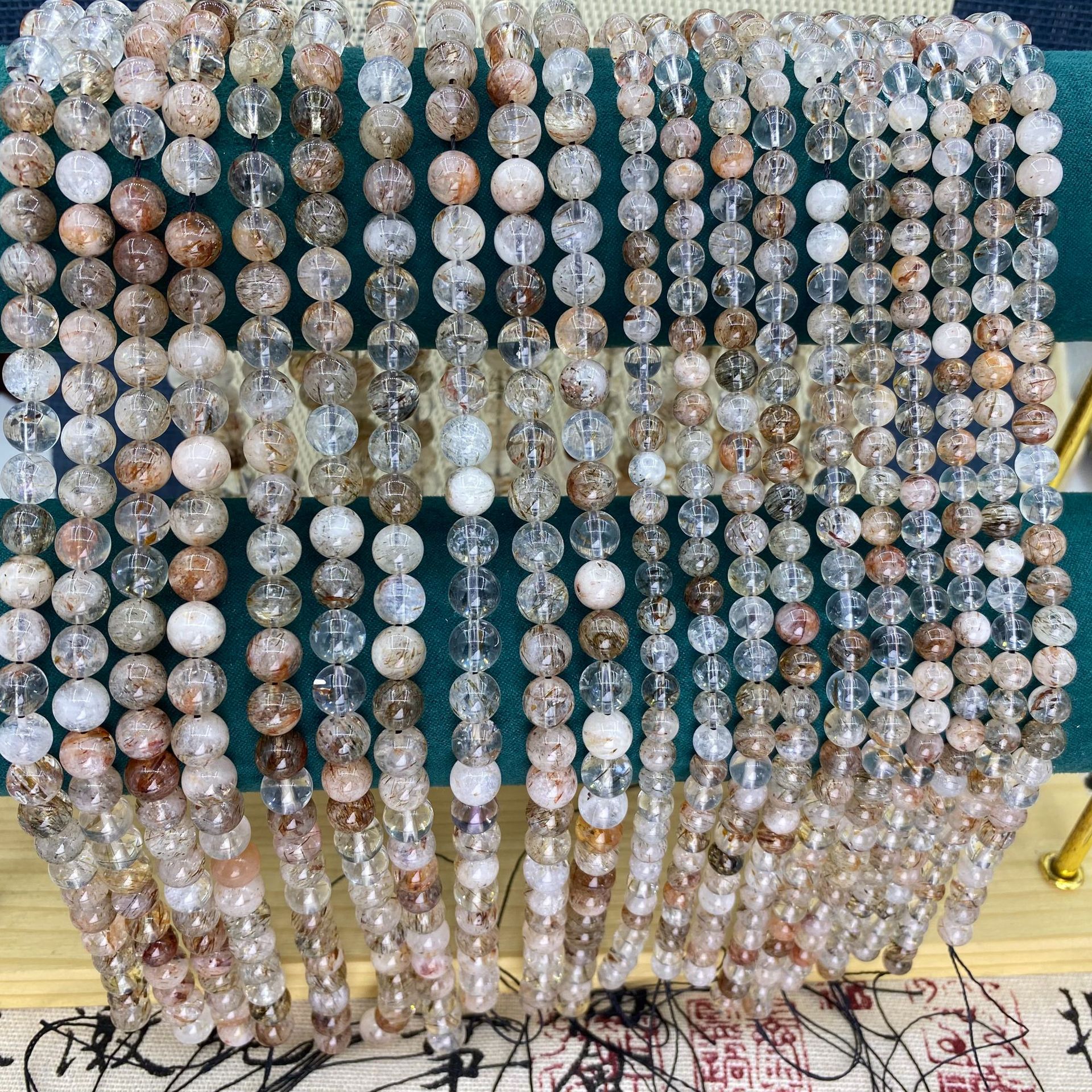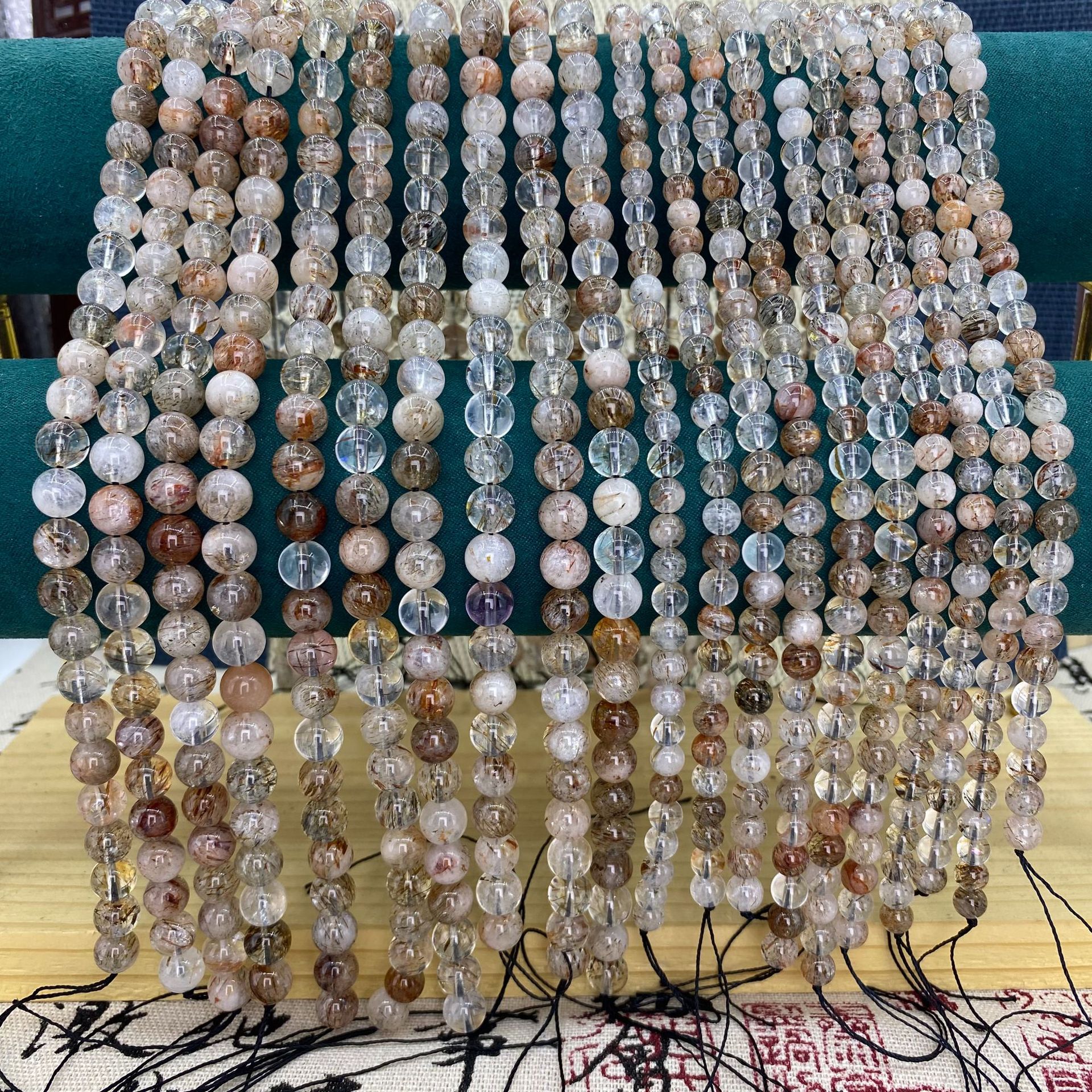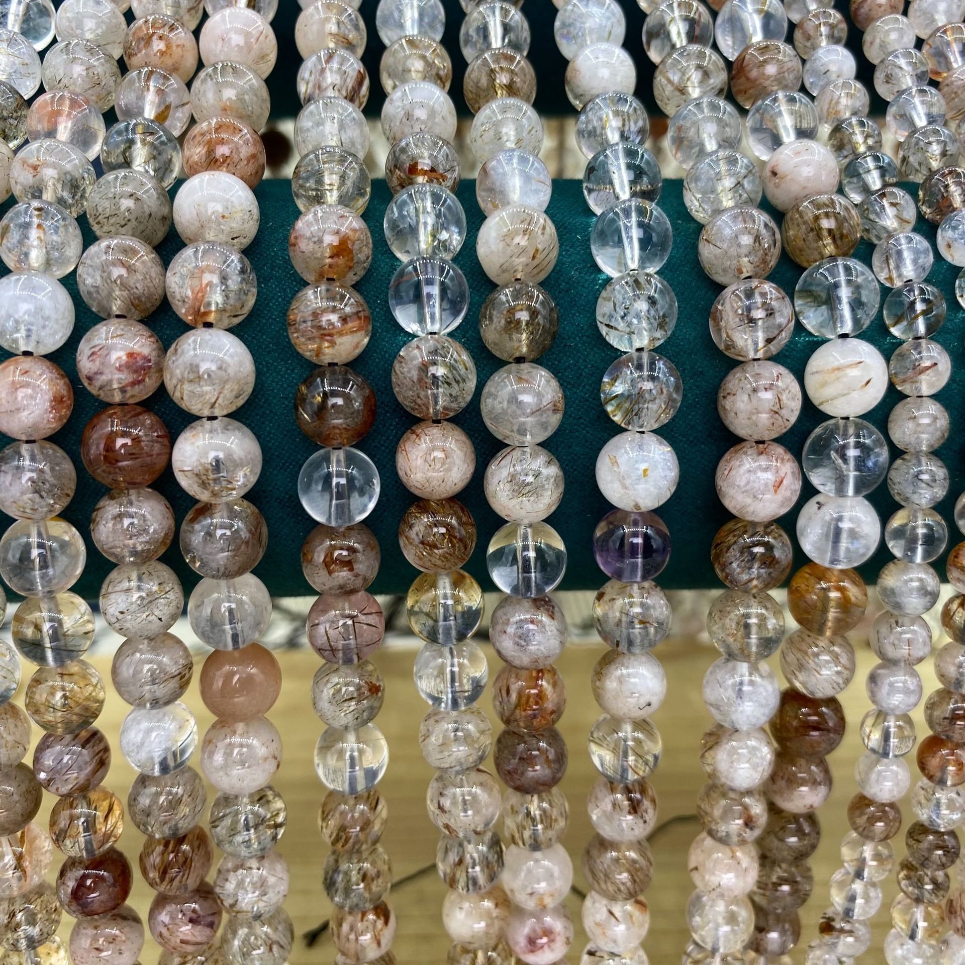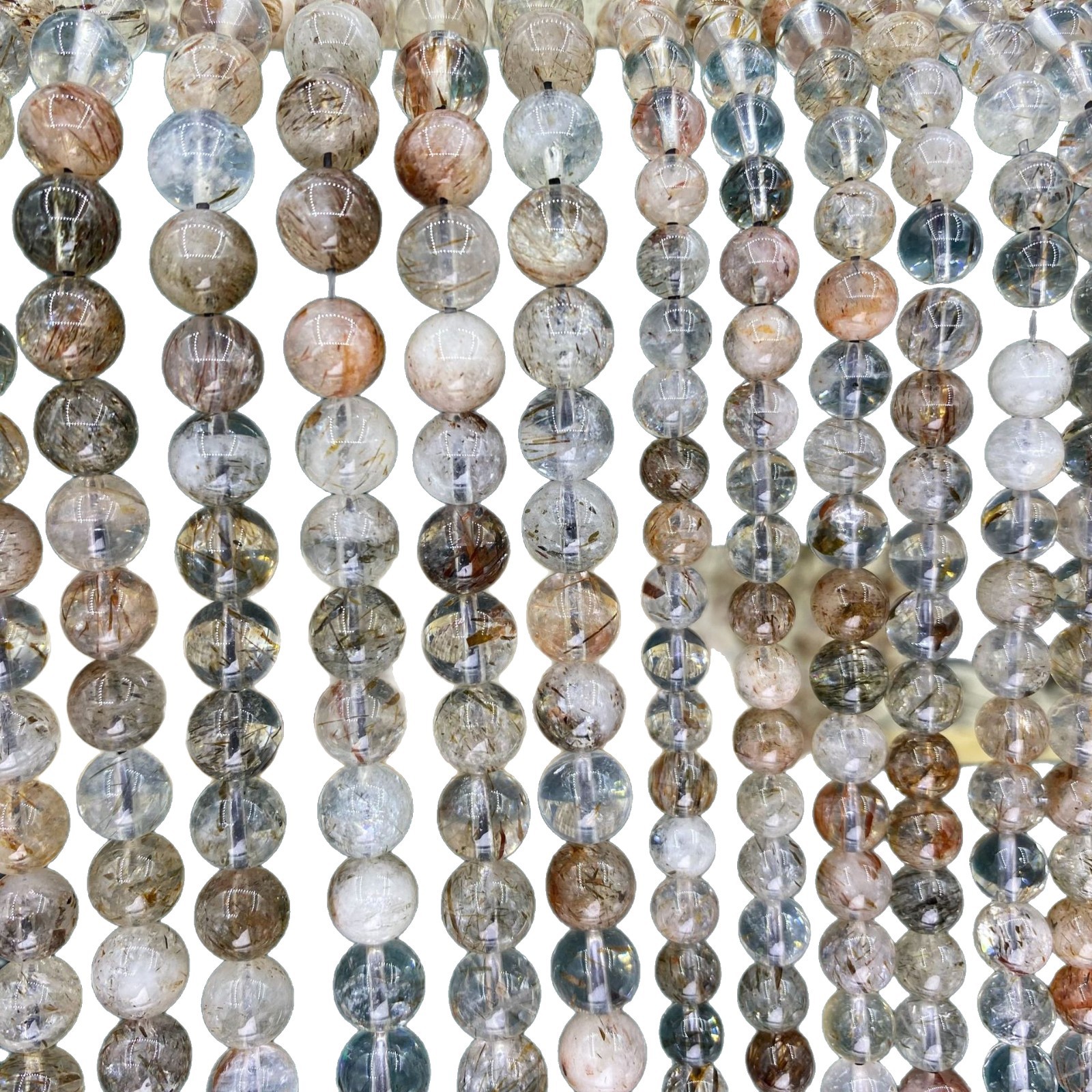 黑金超七天然水晶原石圆珠手工DIY饰品配件超7手串串珠散珠