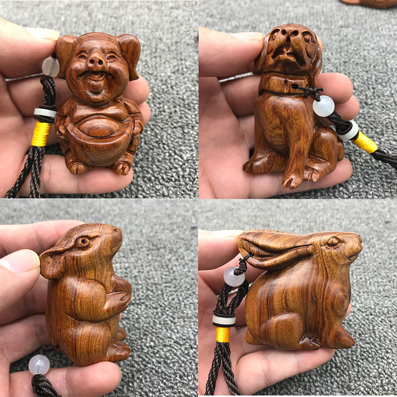 成品文玩手把件花梨木雕刻件木雕小把件财神木摆件十二生肖