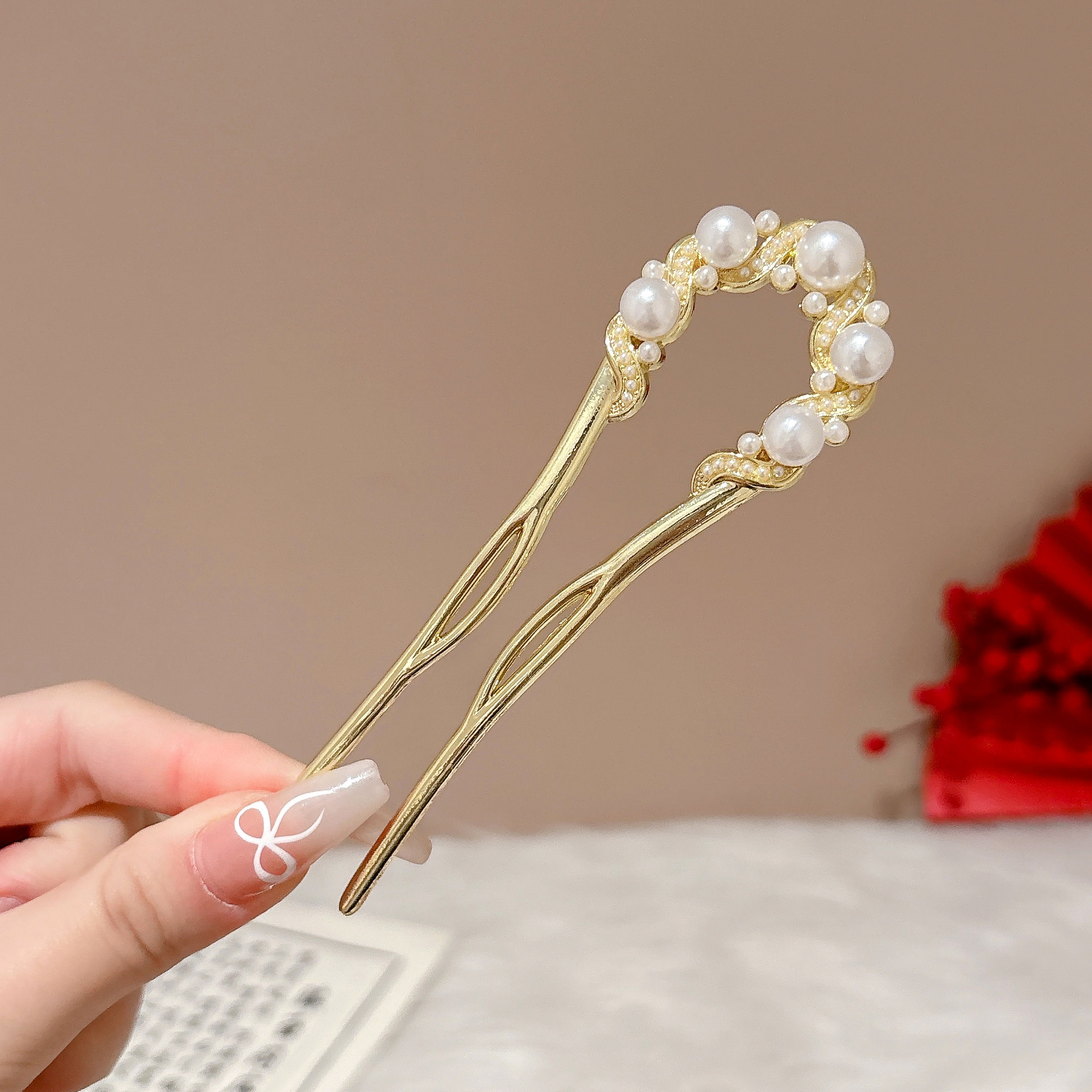 贝母发簪女2025新款U型发夹后脑勺盘发神器发钗高端簪子气质头饰