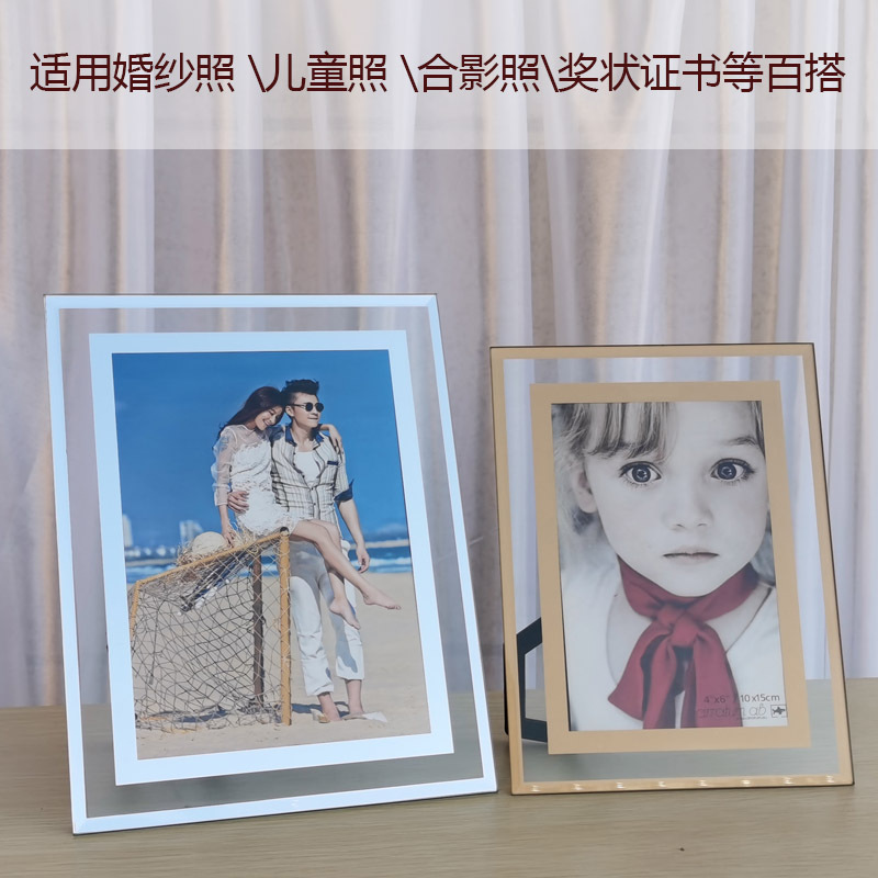 透明水晶玻璃相框A4A5证书展示框架6寸相框7寸85照片摆台礼品批发