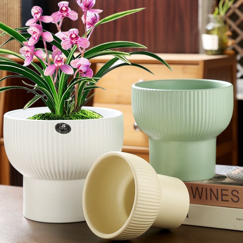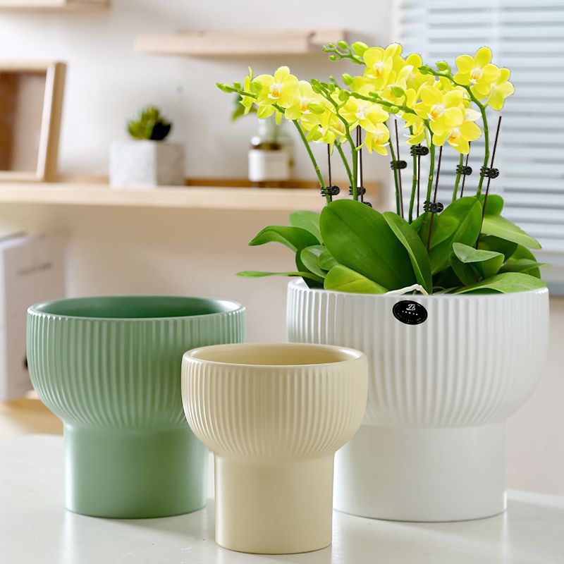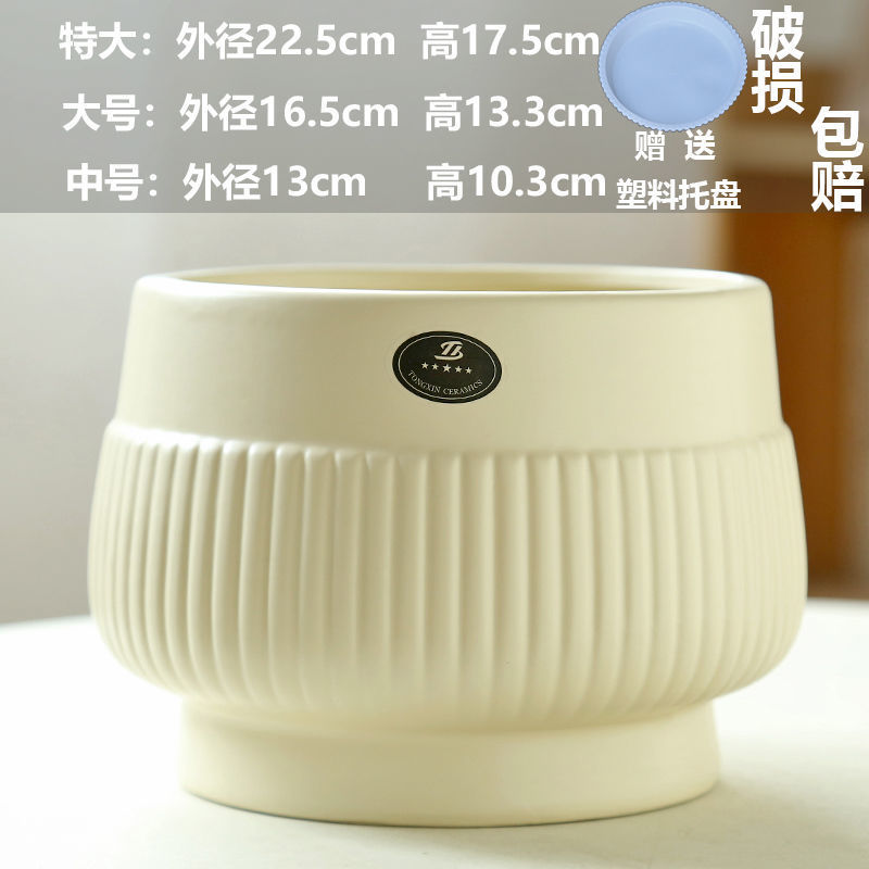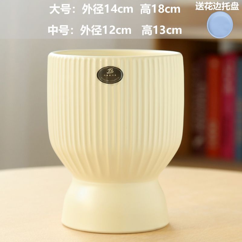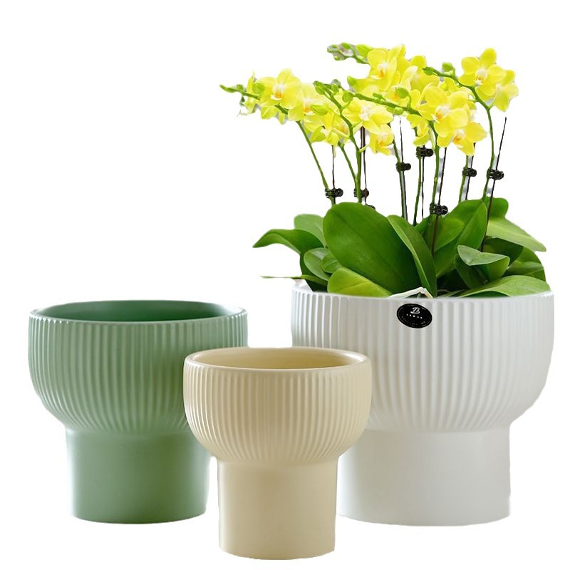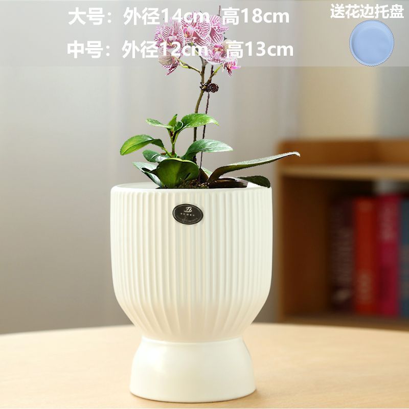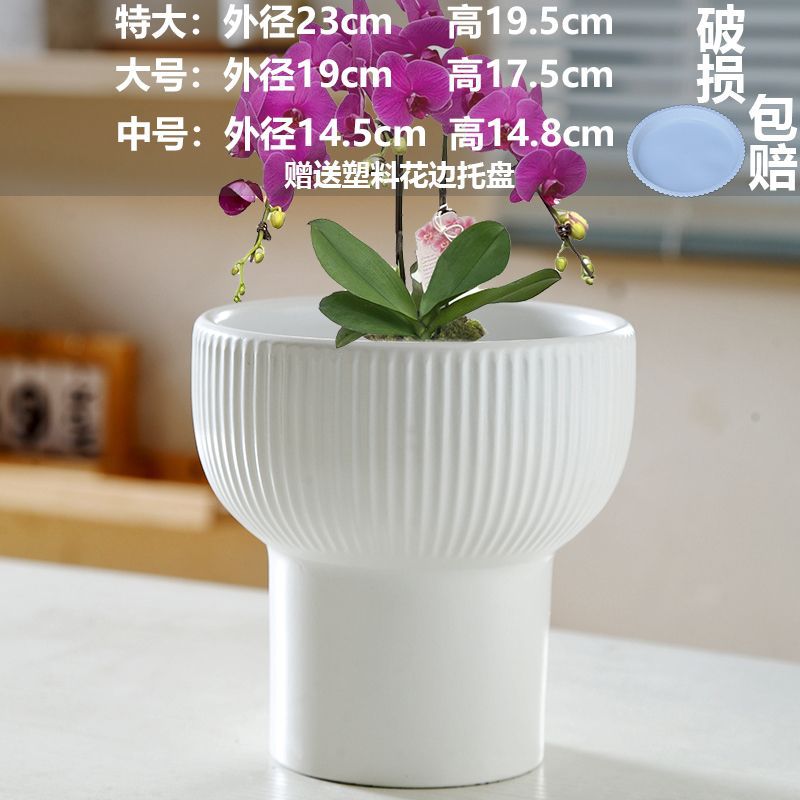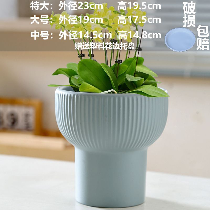 花盆陶瓷北欧简约大号带托ins风高颜值吊兰多肉蝴蝶兰绿植塑料盆