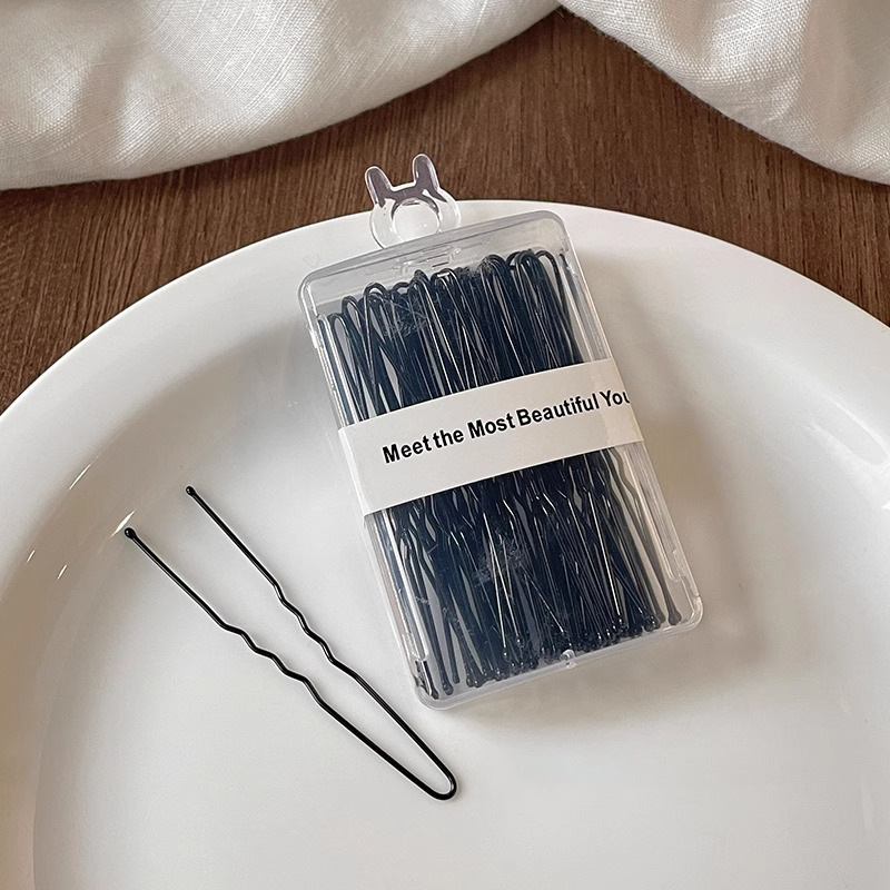 黑色一字夹发夹女侧边刘海发卡丸子头固定头发夹子小卡子u型钢夹