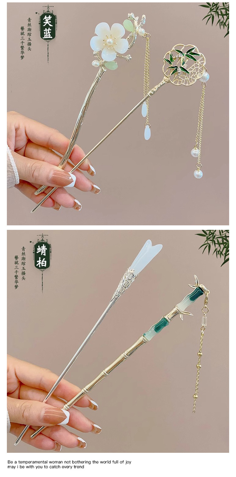 2024古风流苏花朵u型发簪女中式汉服头饰发钗高级感步摇盘发簪子