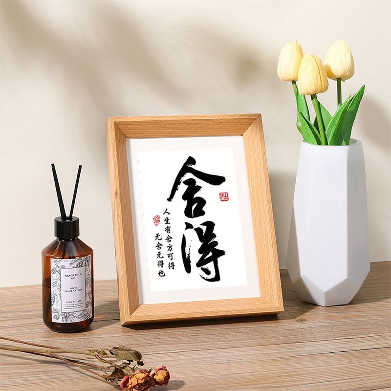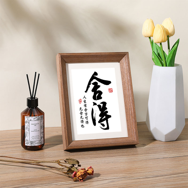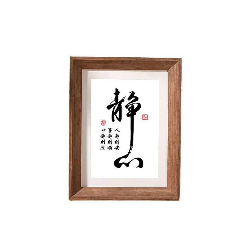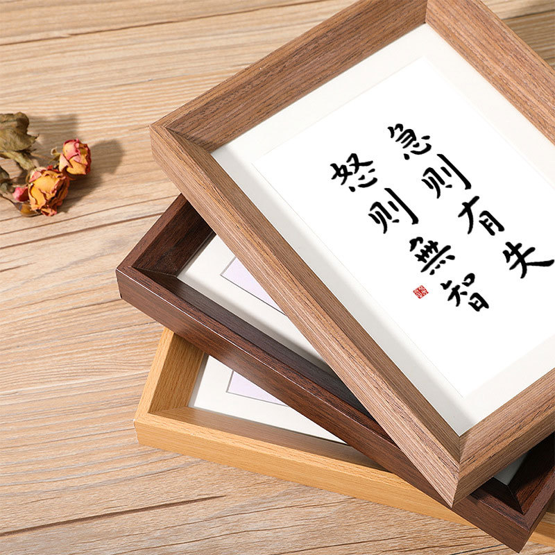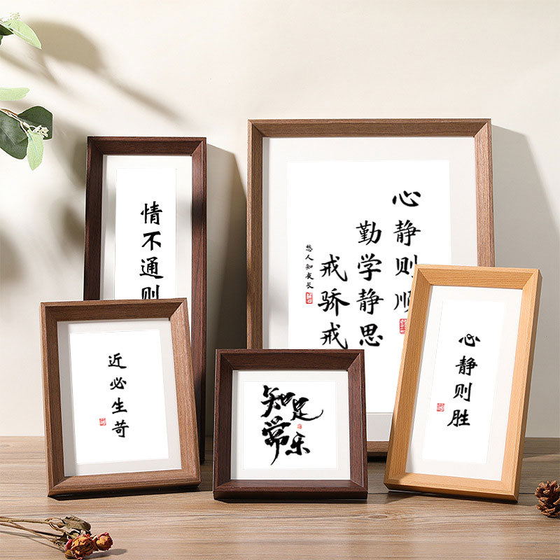 复古木纹书法装裱相框古风斜边摆台高级书法字画框创意办公桌摆件