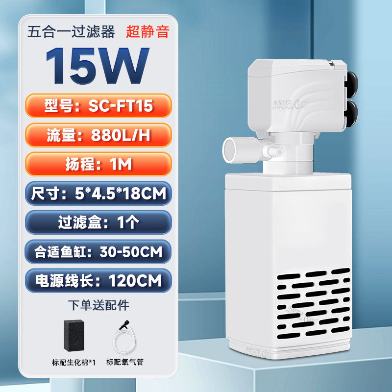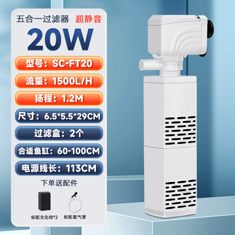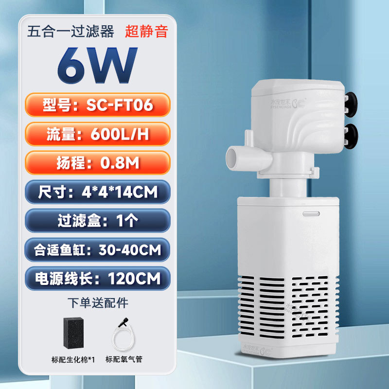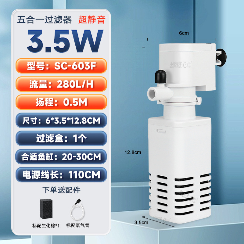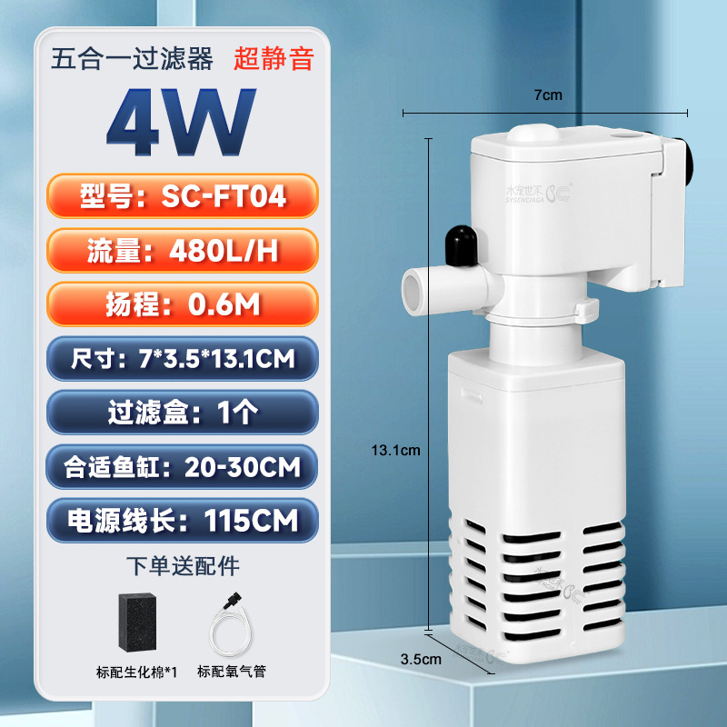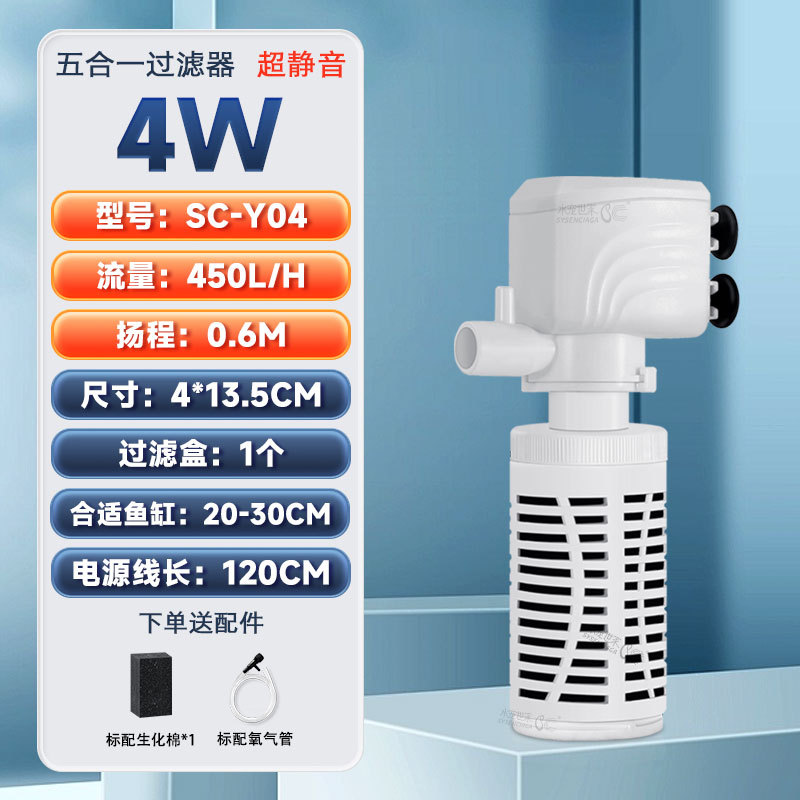 鱼缸过滤器潜水泵过滤增氧活水三合一鱼缸内置过滤小型净水循环泵