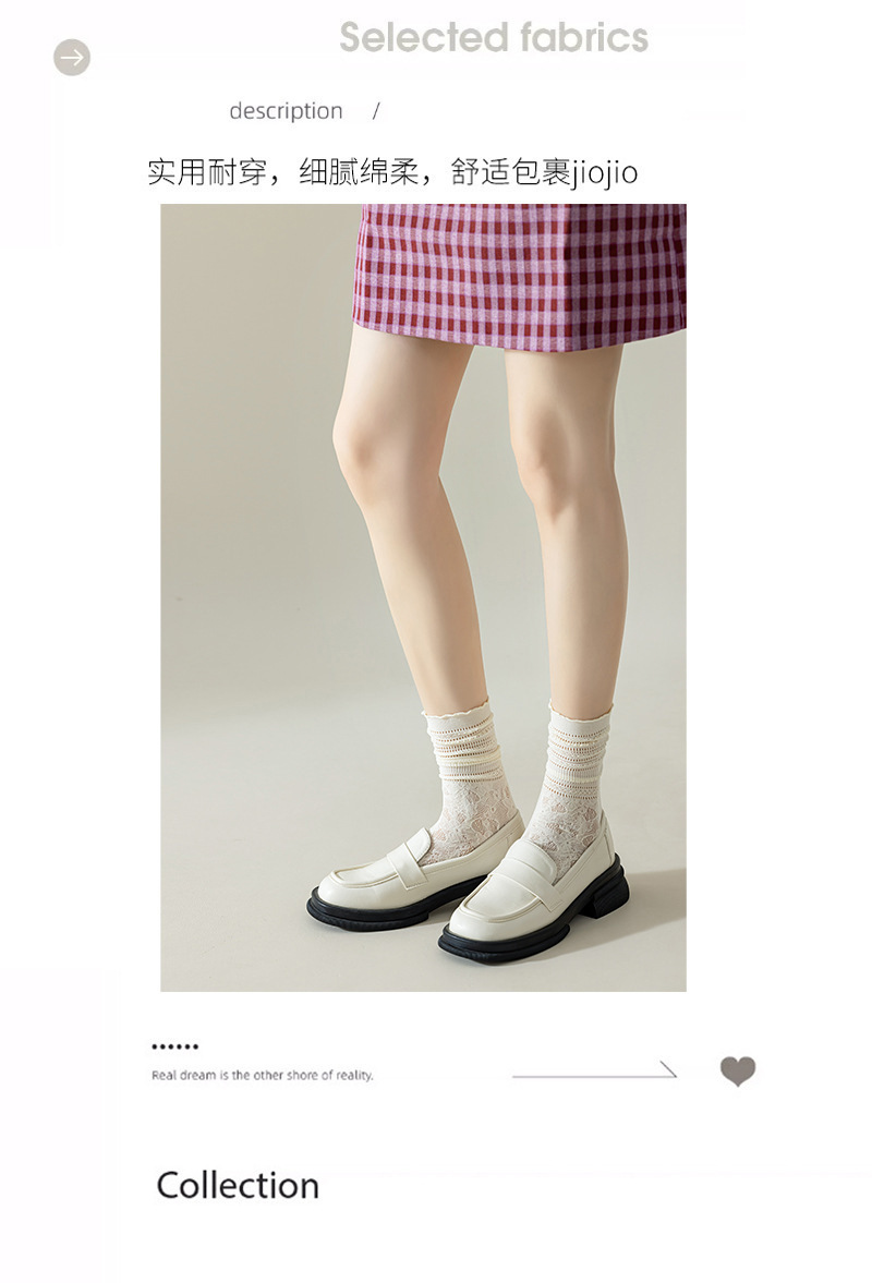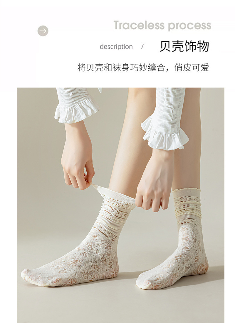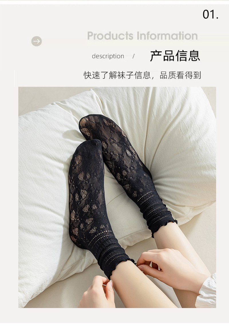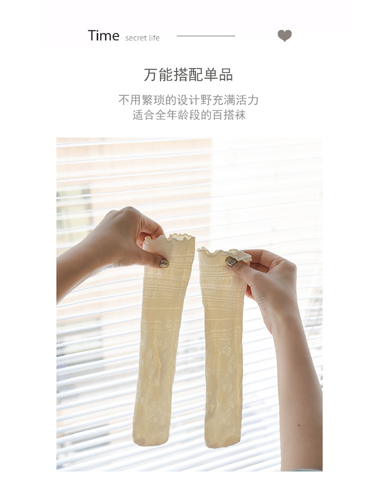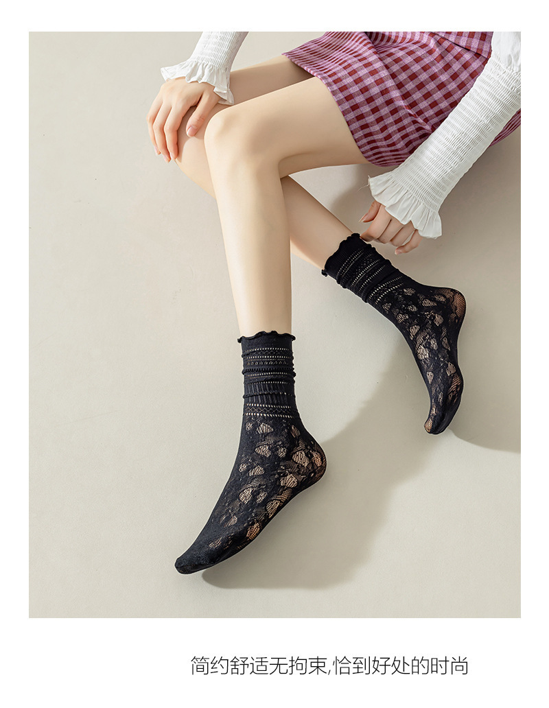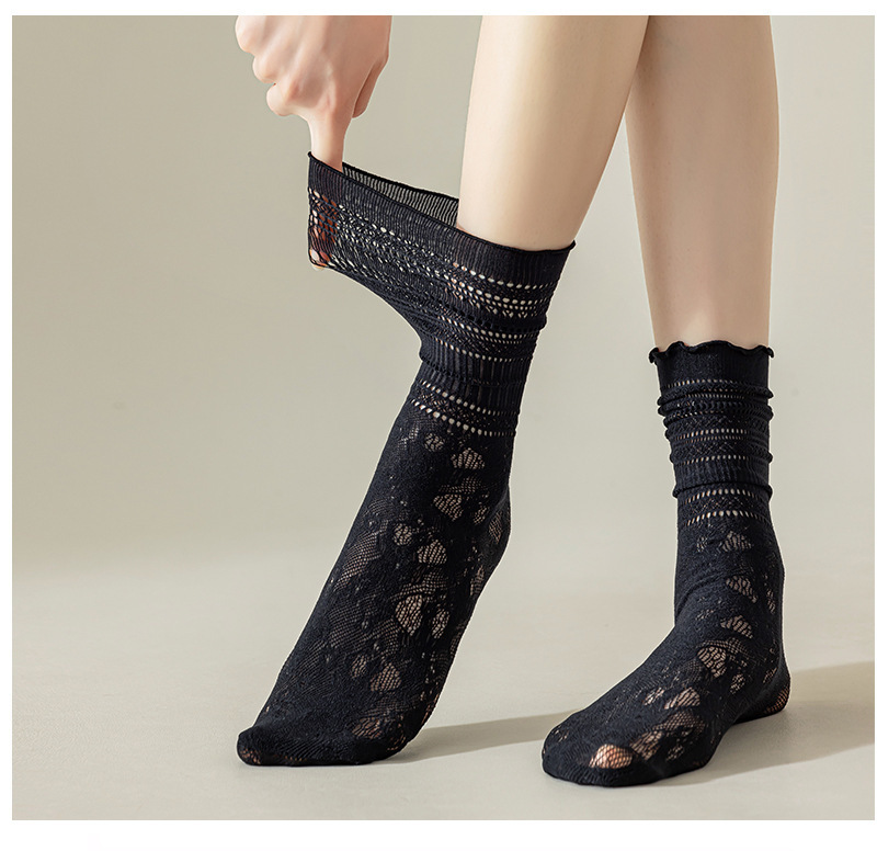 花边袜子女堆堆袜夏季薄款蕾丝镂空网眼夏天透气女士木耳边中筒袜
