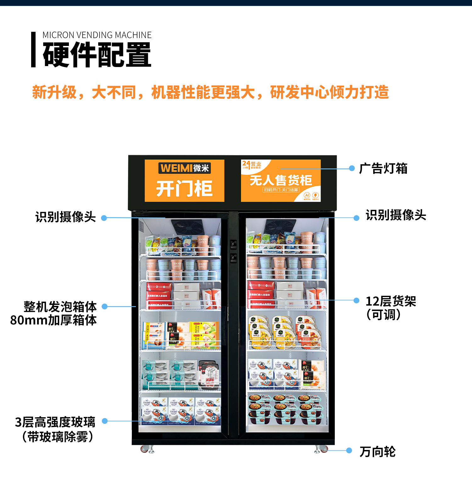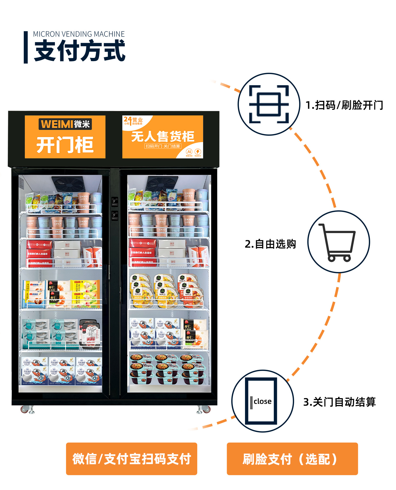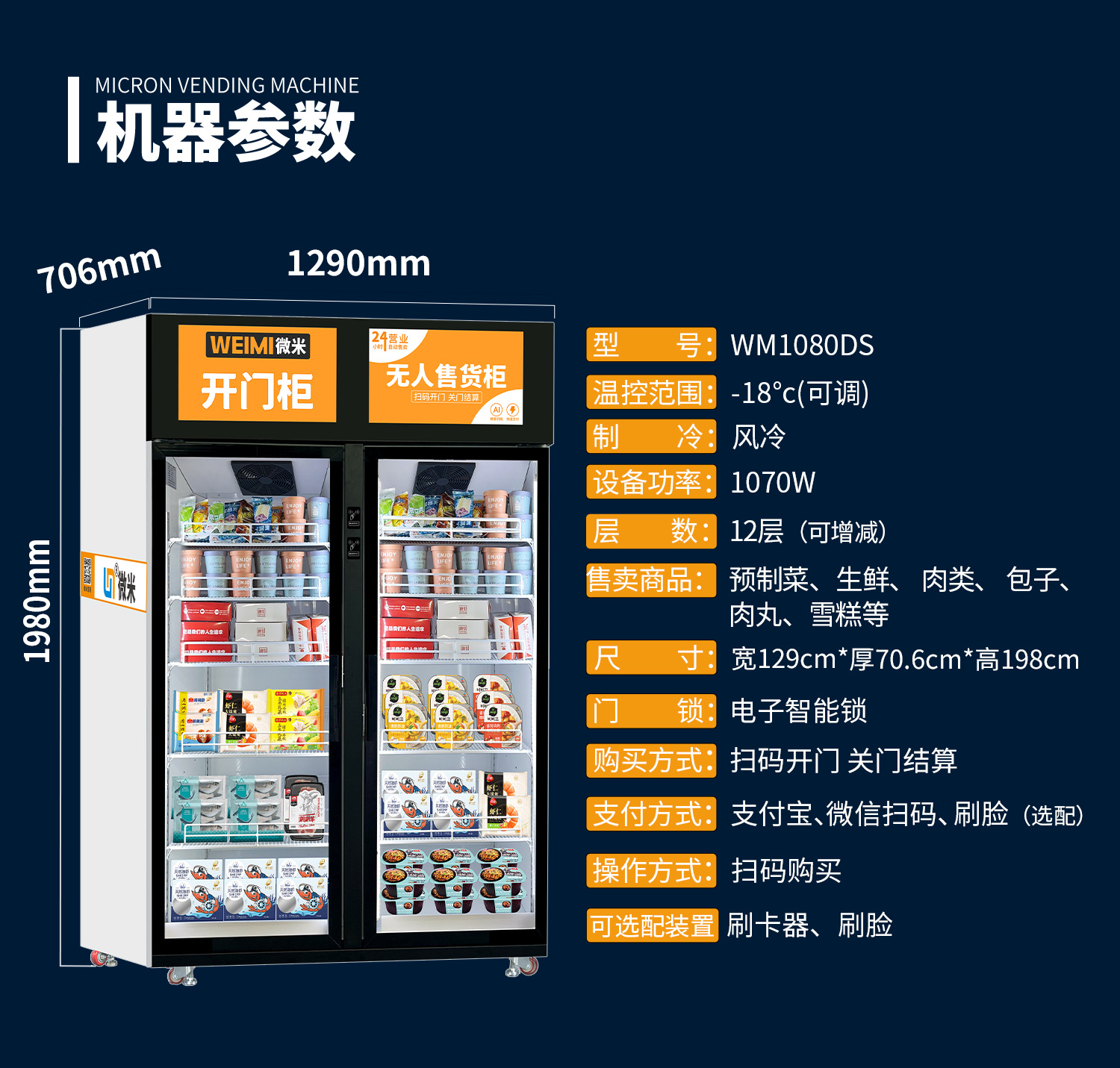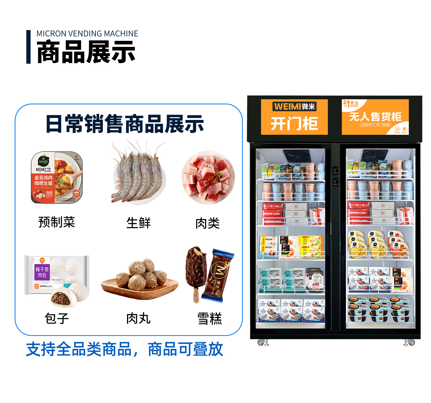 微米冰淇淋自动售卖机AI视觉柜冷冻品冰柜售货机预制菜双门柜厂家