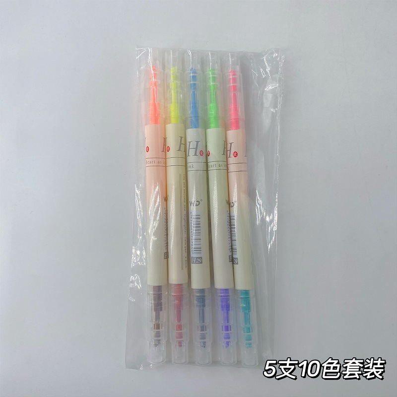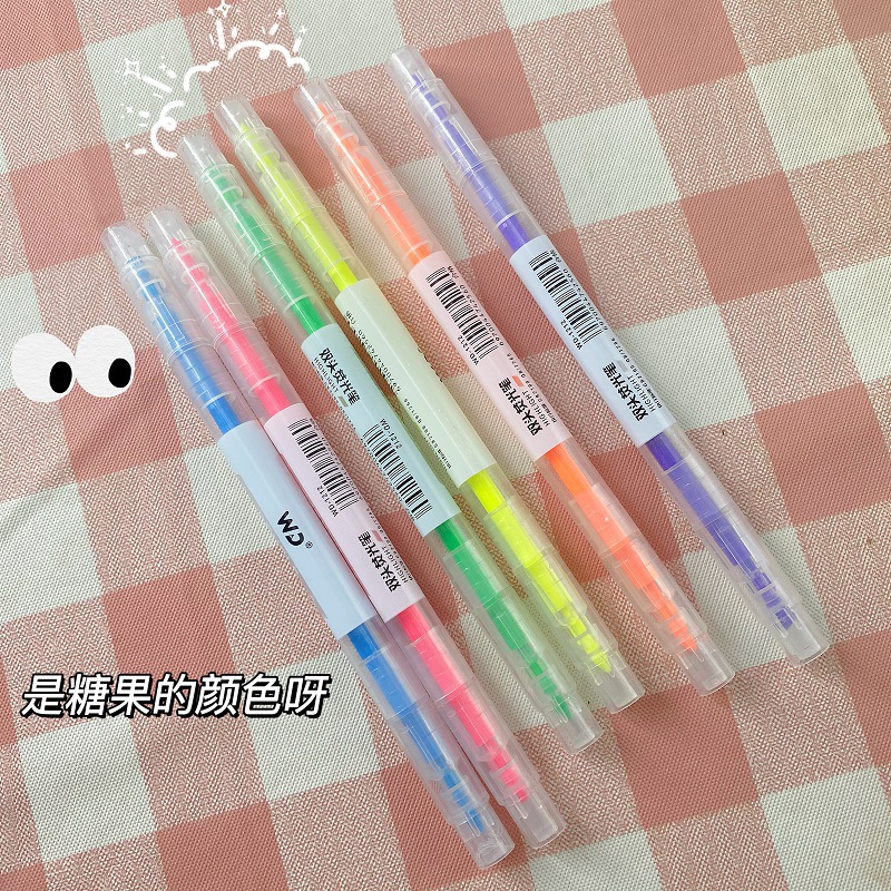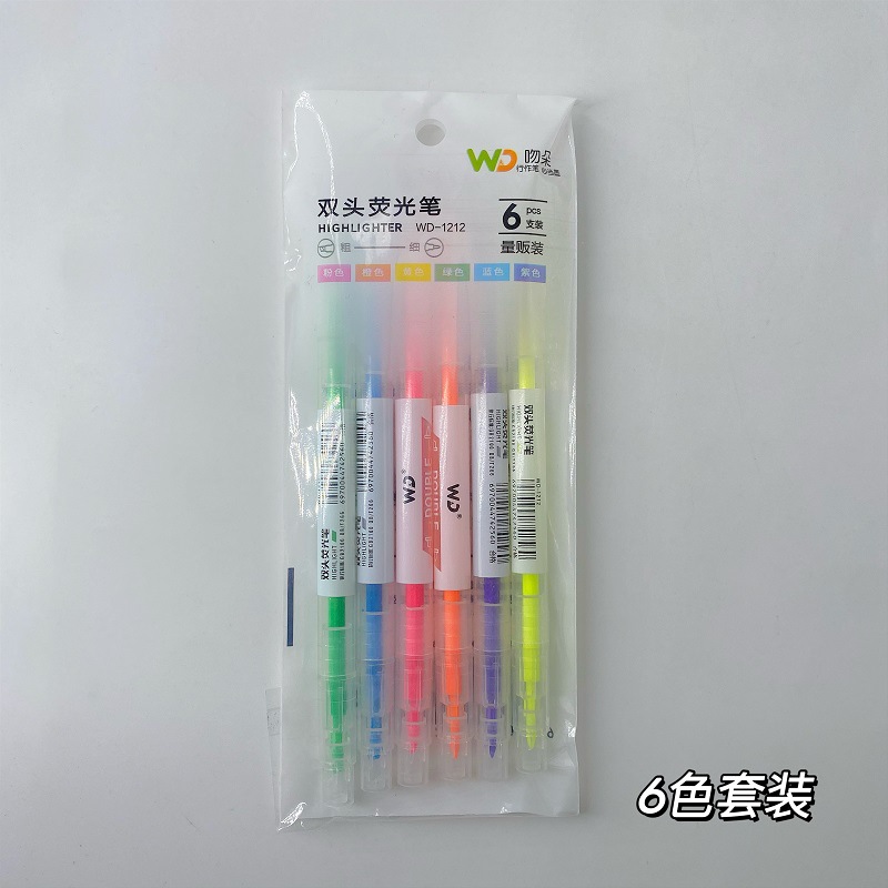 套装6色双头荧光笔 学生用笔记粗划重点标记莹光彩色记号笔糖果色