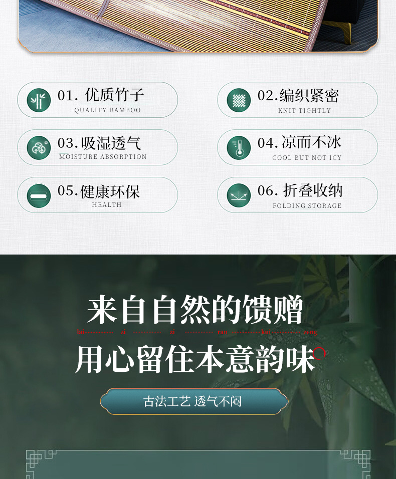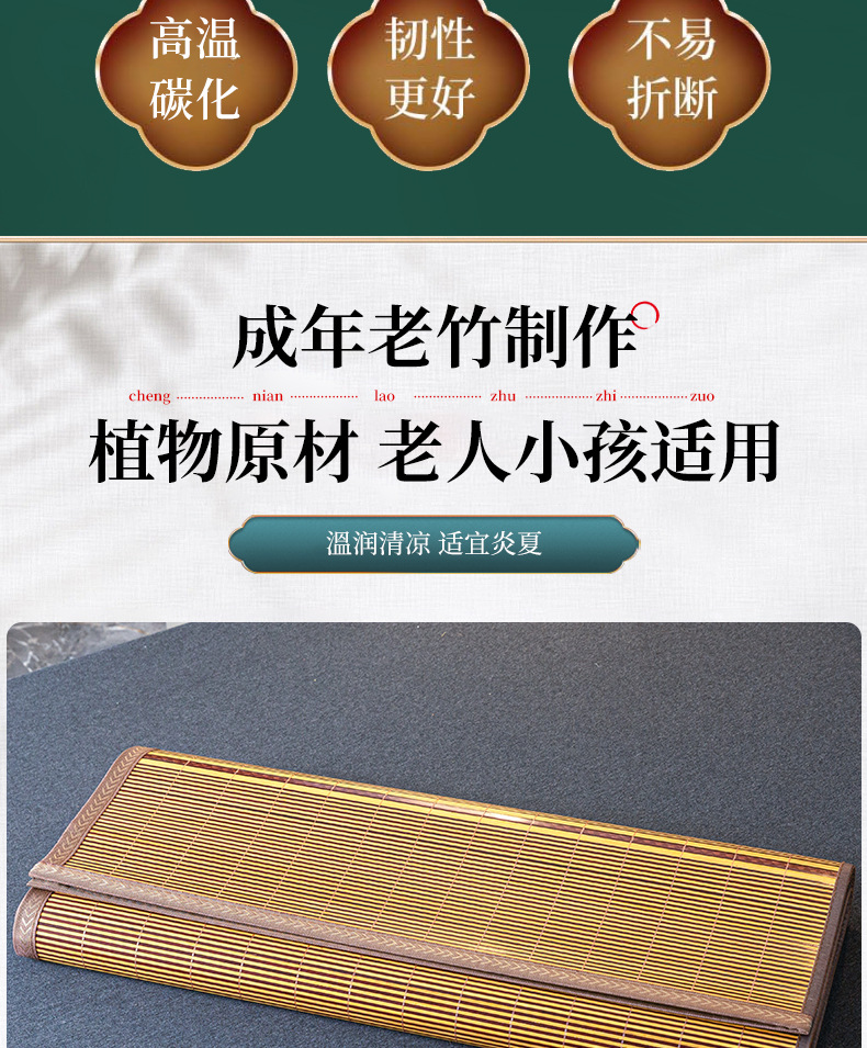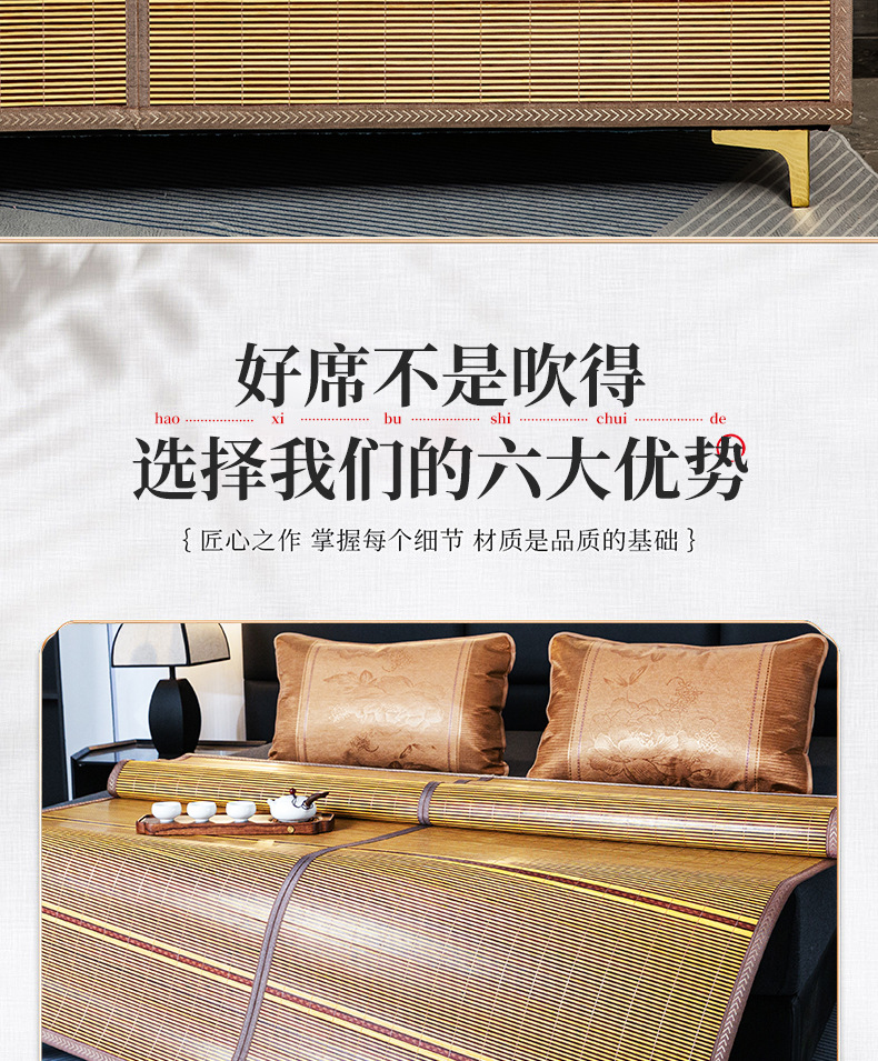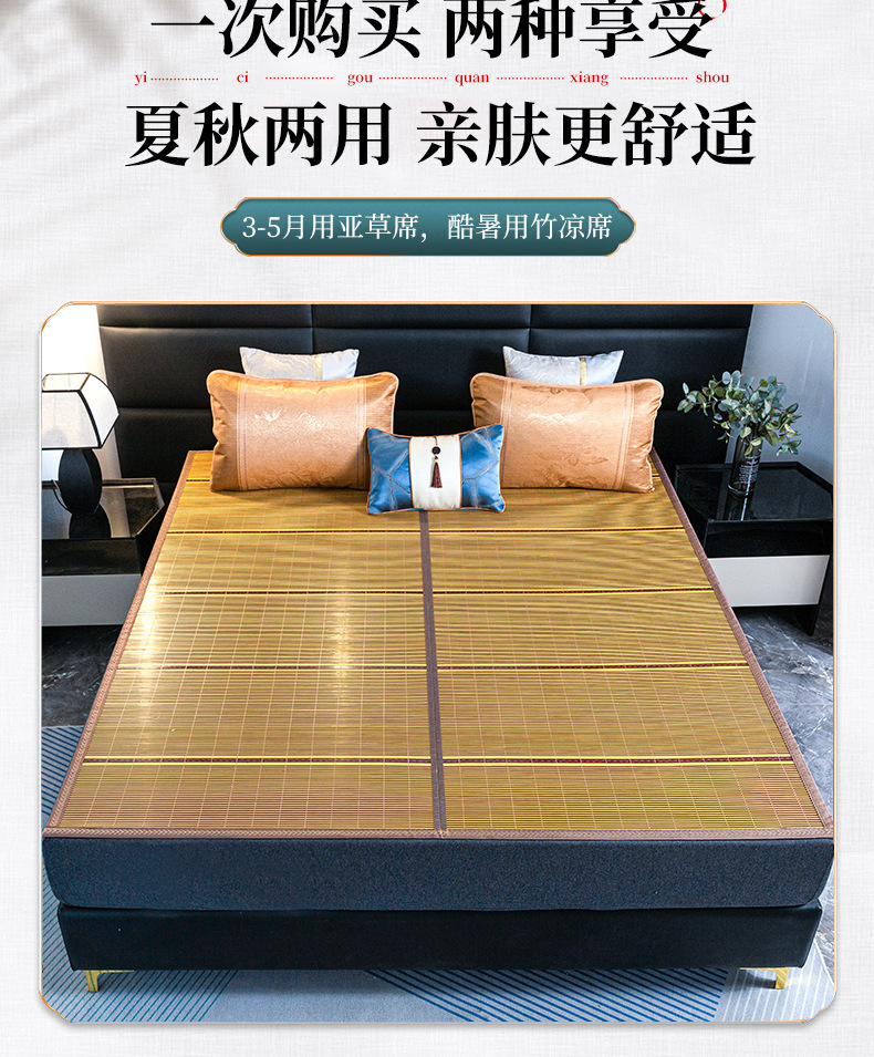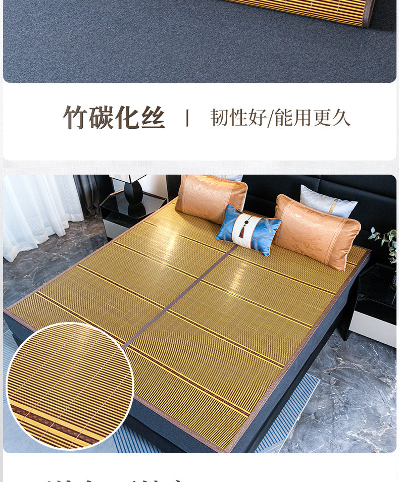 跑量凉席竹席凉感冰丝席子双面藤席竹青席学生席子直筒折叠席凉席