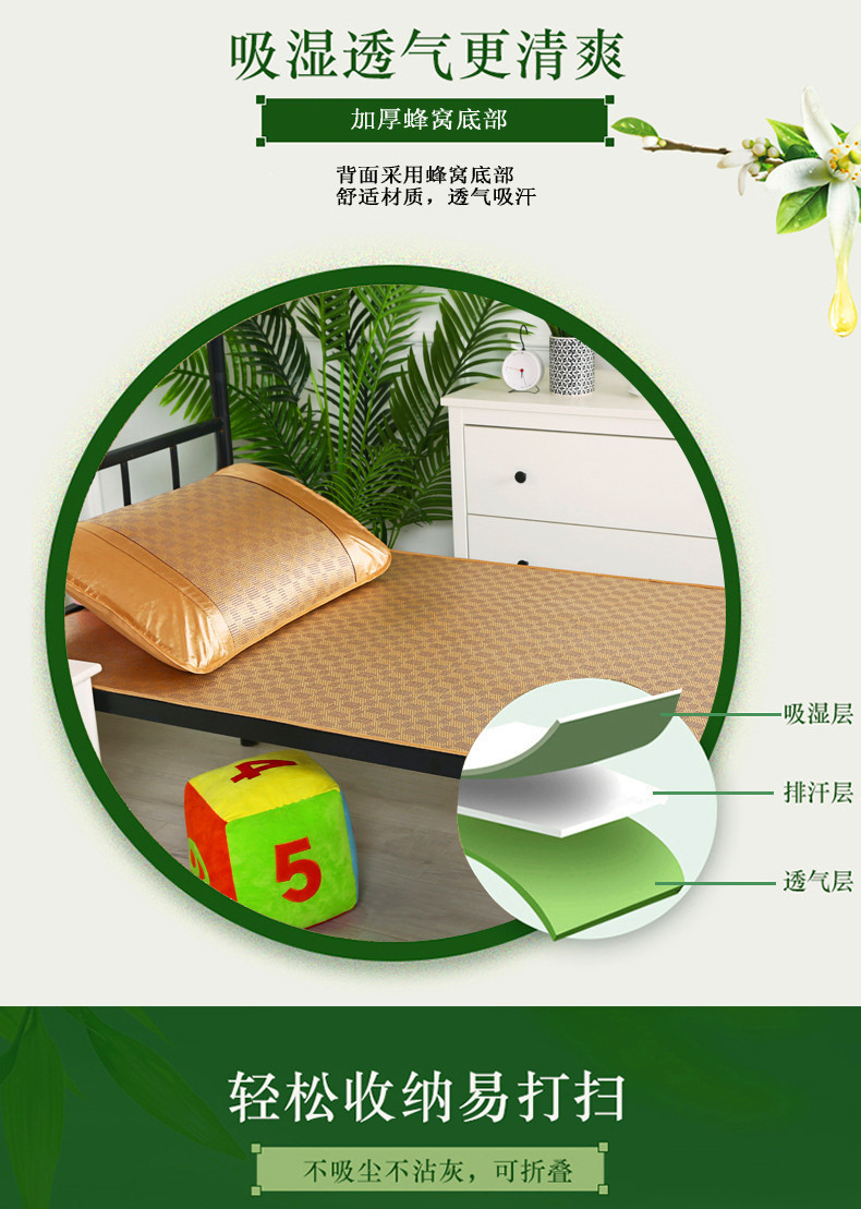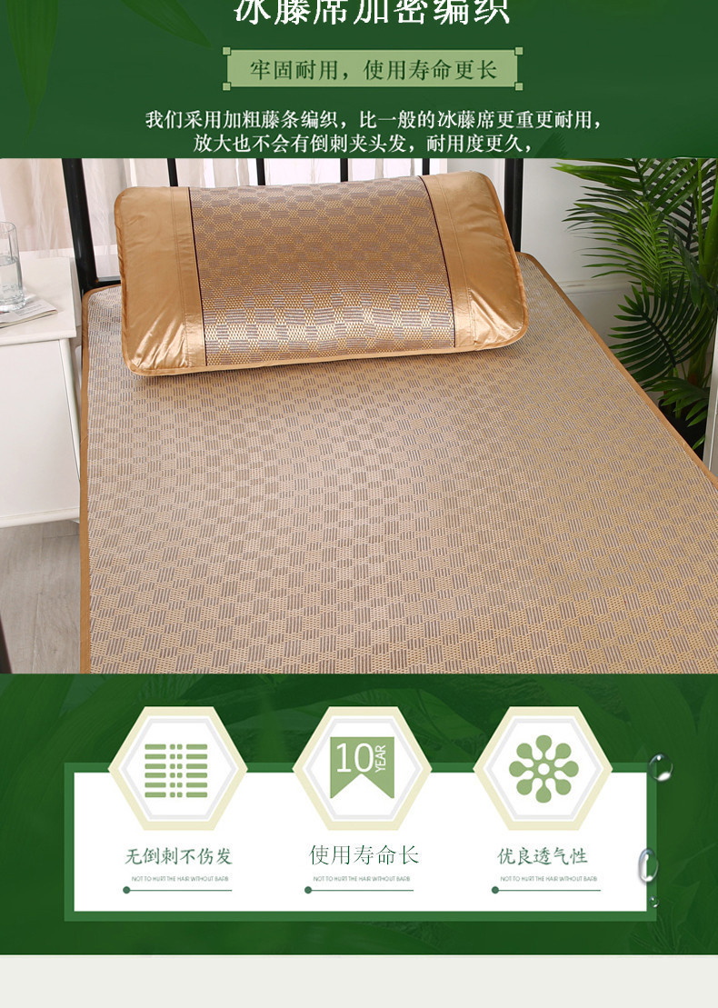 2025新款草席凉席学生宿舍单人床上下铺可折叠藤席夏季冰丝凉感
