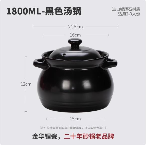 金华锂瓷中式汤煲砂炖锅陶瓷耐高温煮粥汤陶土砂锅家用