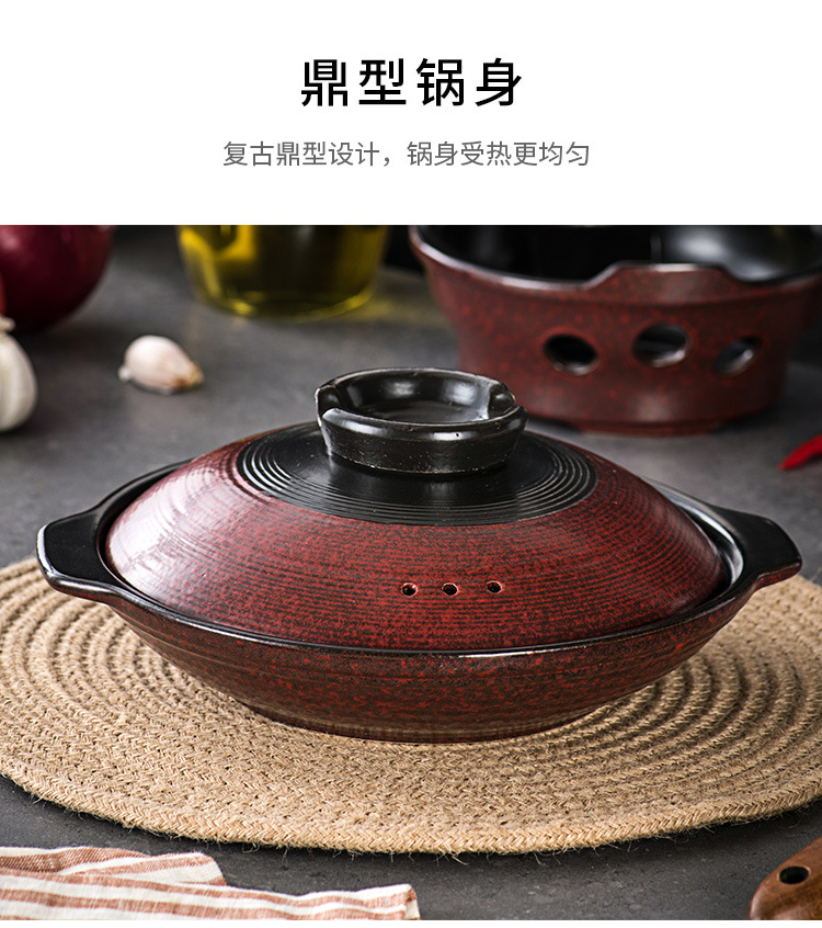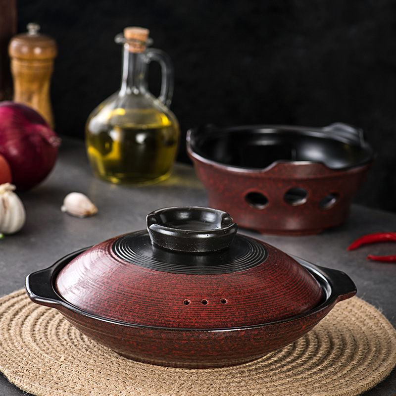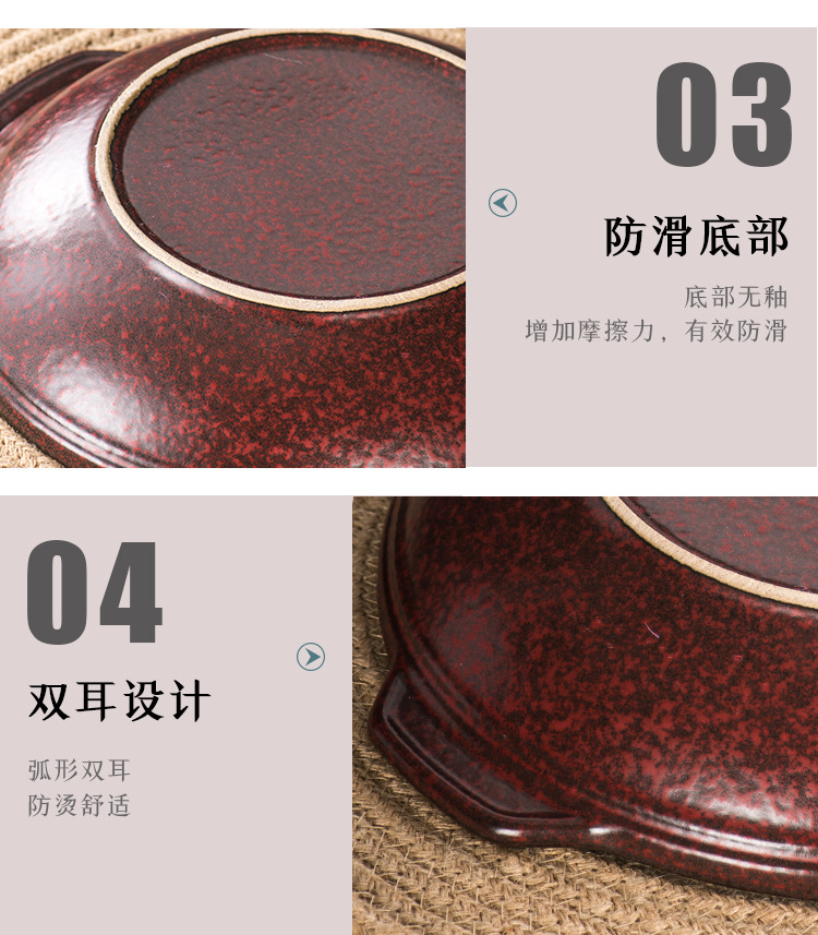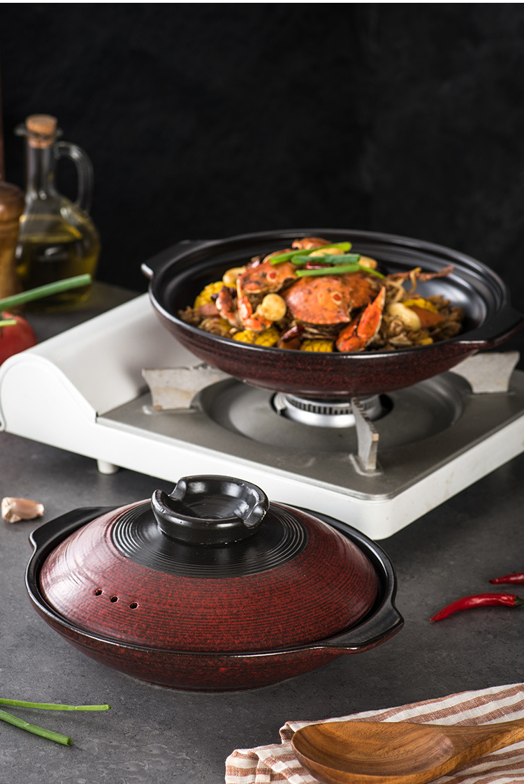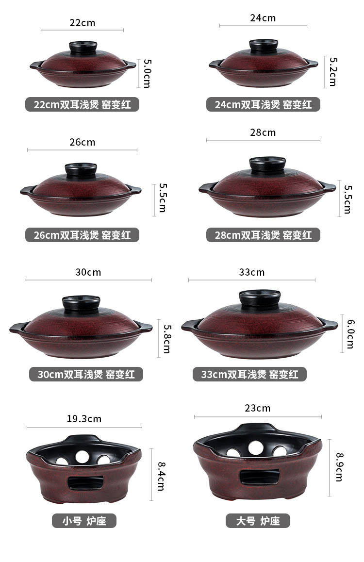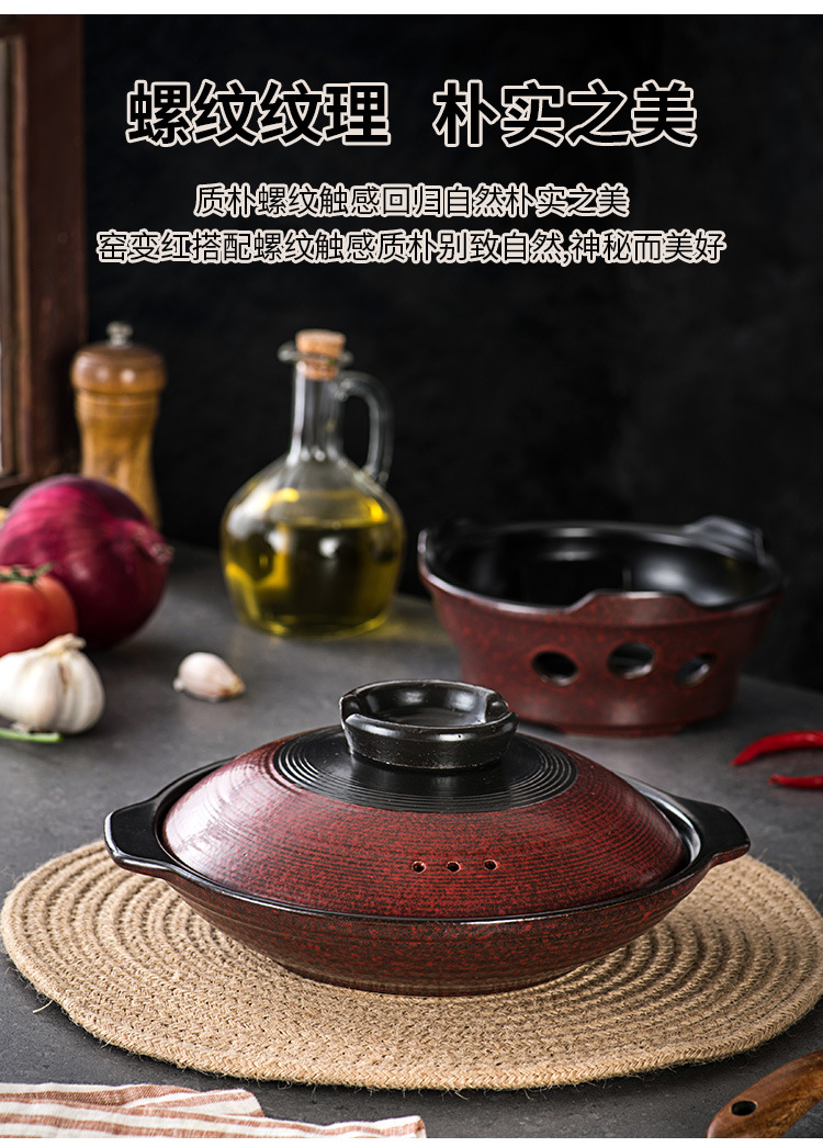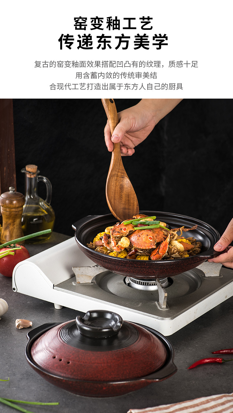窑变红耐高温浅口砂锅家用干烧不裂煲汤燃气灶专用陶瓷干锅商用